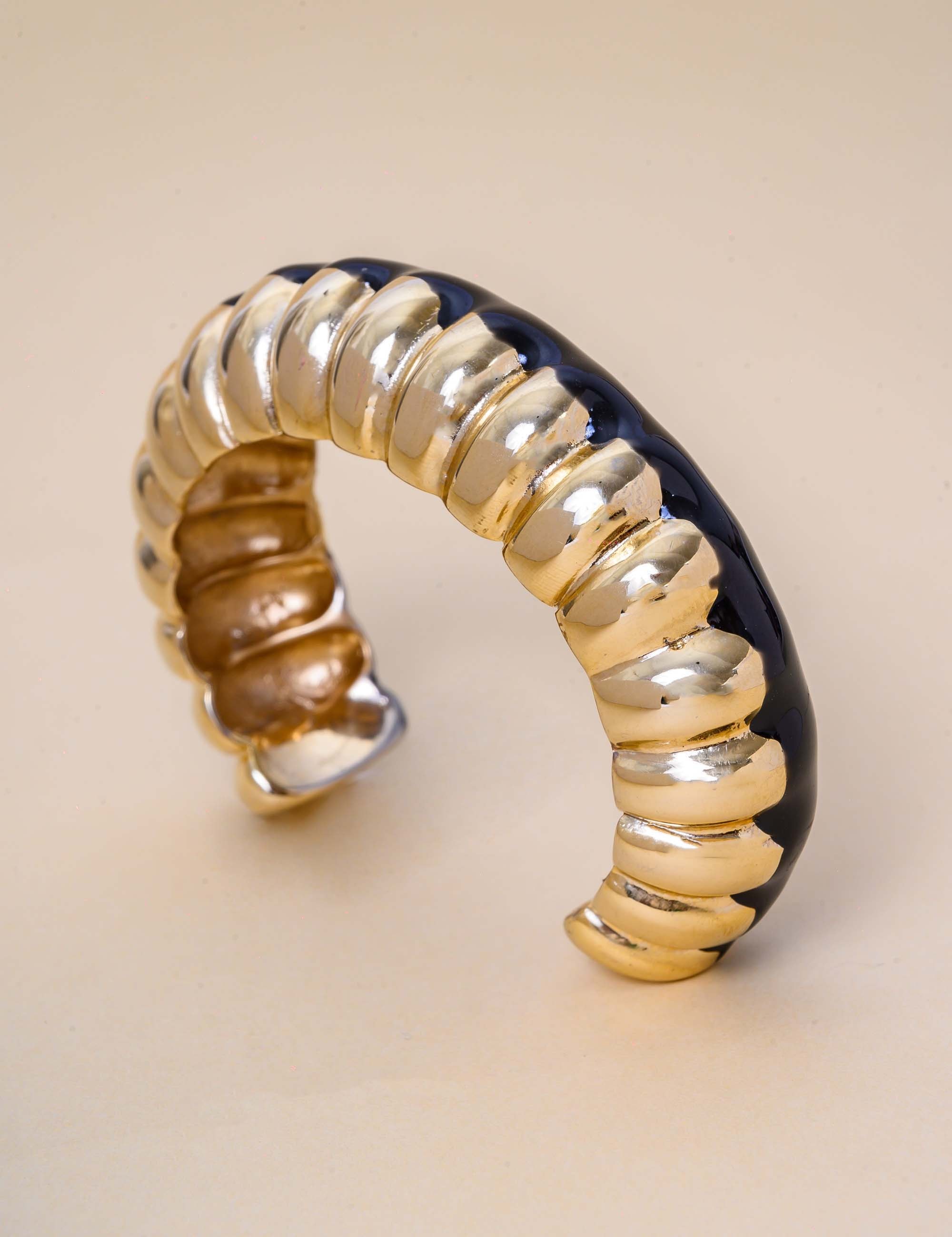 BRACELETE RESINA PRETO E OURO - PU29068VO04
