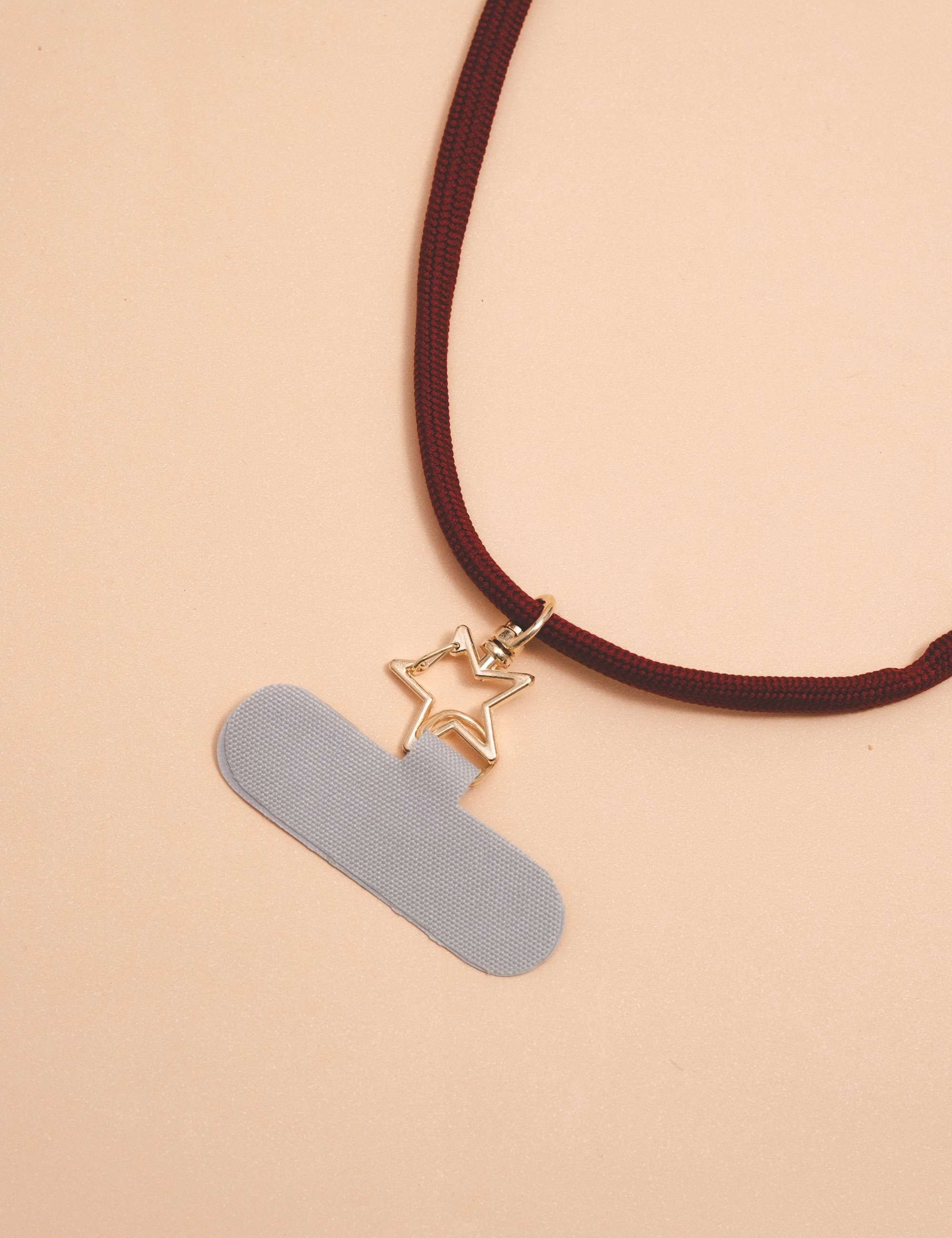 Peça: Corda de celular em fio de poliéster ajustável, equipada com adaptador e mosquetão. Ideal para aqueles que buscam uma combinação impecável de estilo e conveniência.