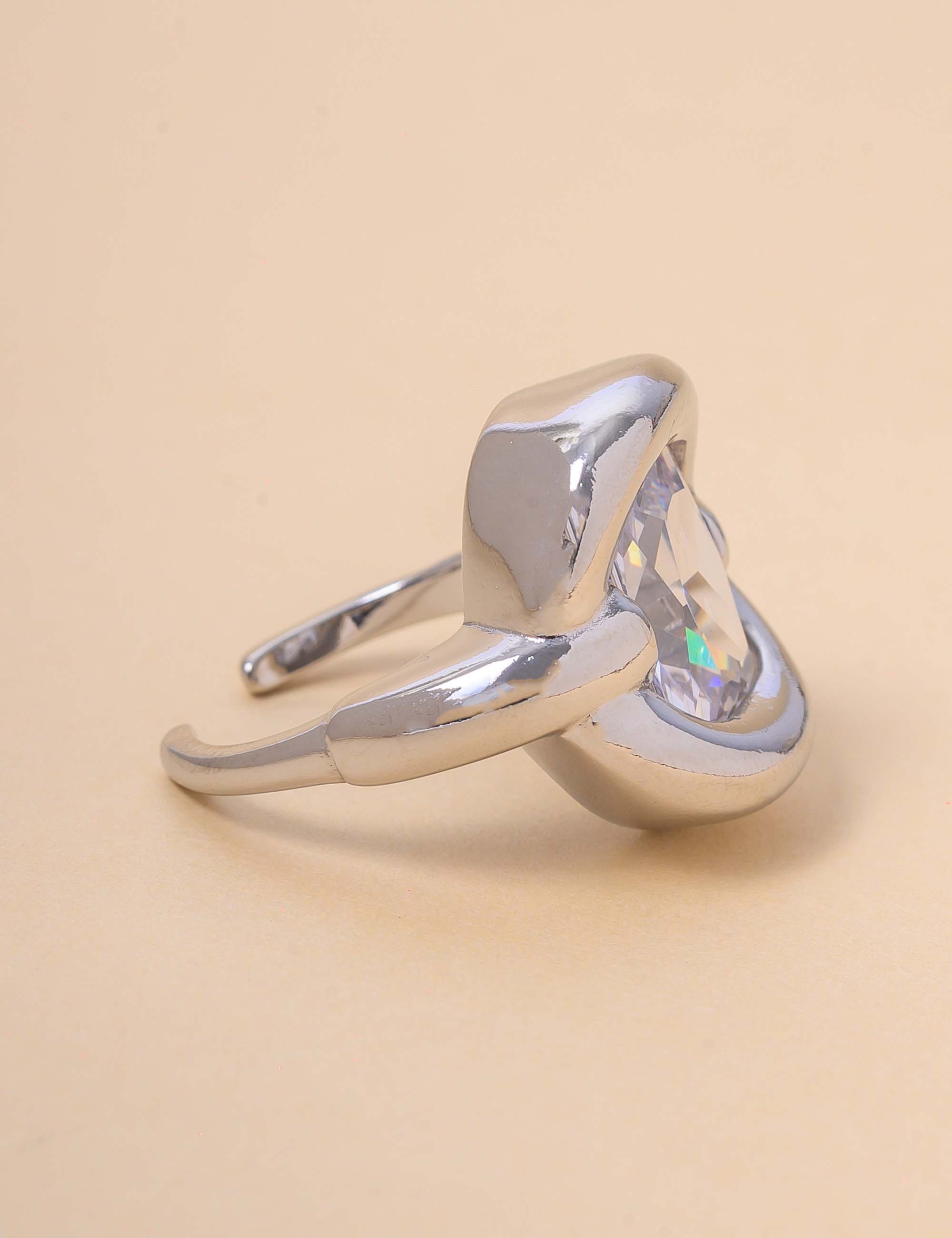 Anel bianco com cristal retangular, elegante e sofisticado. Uma peça que adiciona brilho e estilo ao seu visual, perfeita para usar em qualquer ocasião.