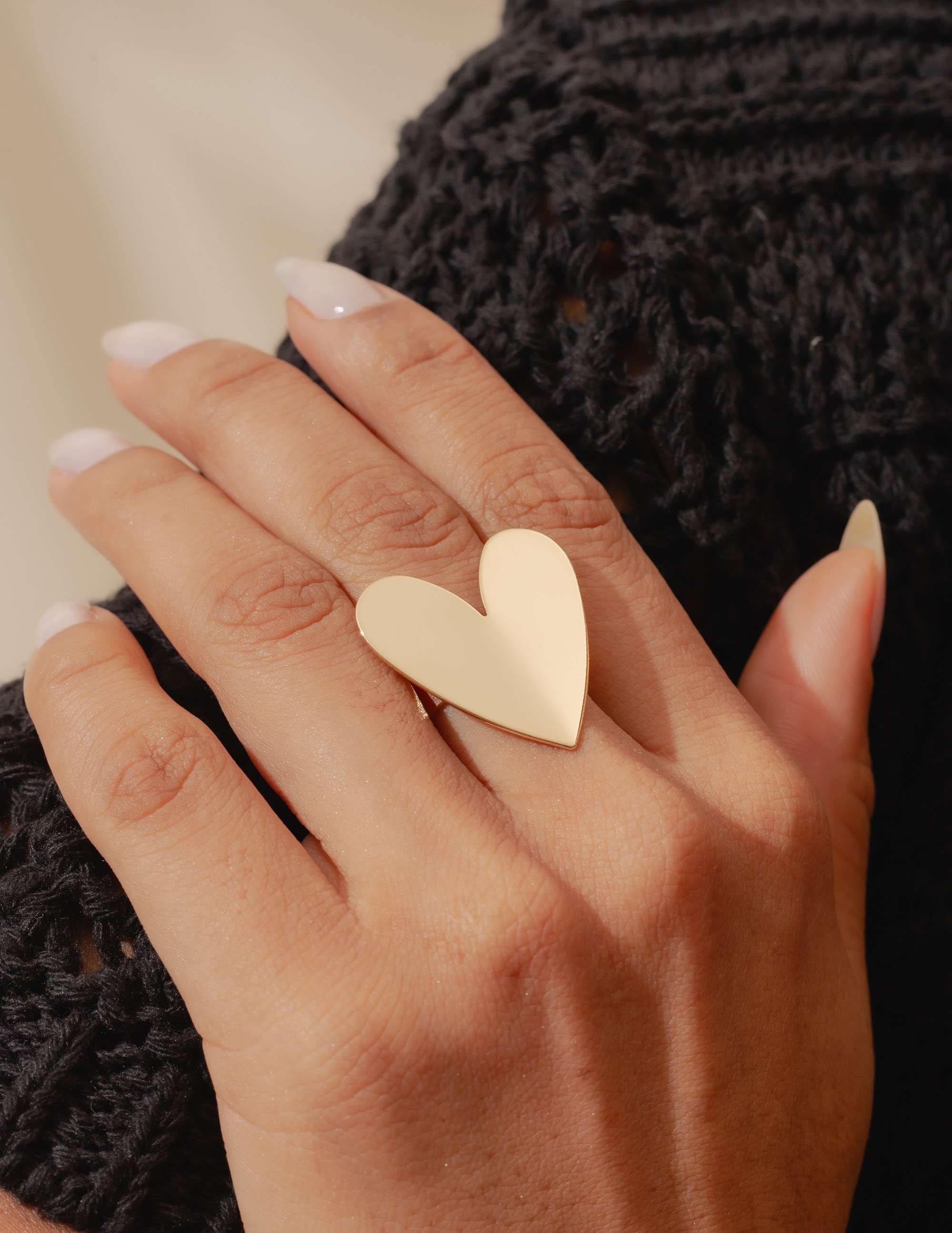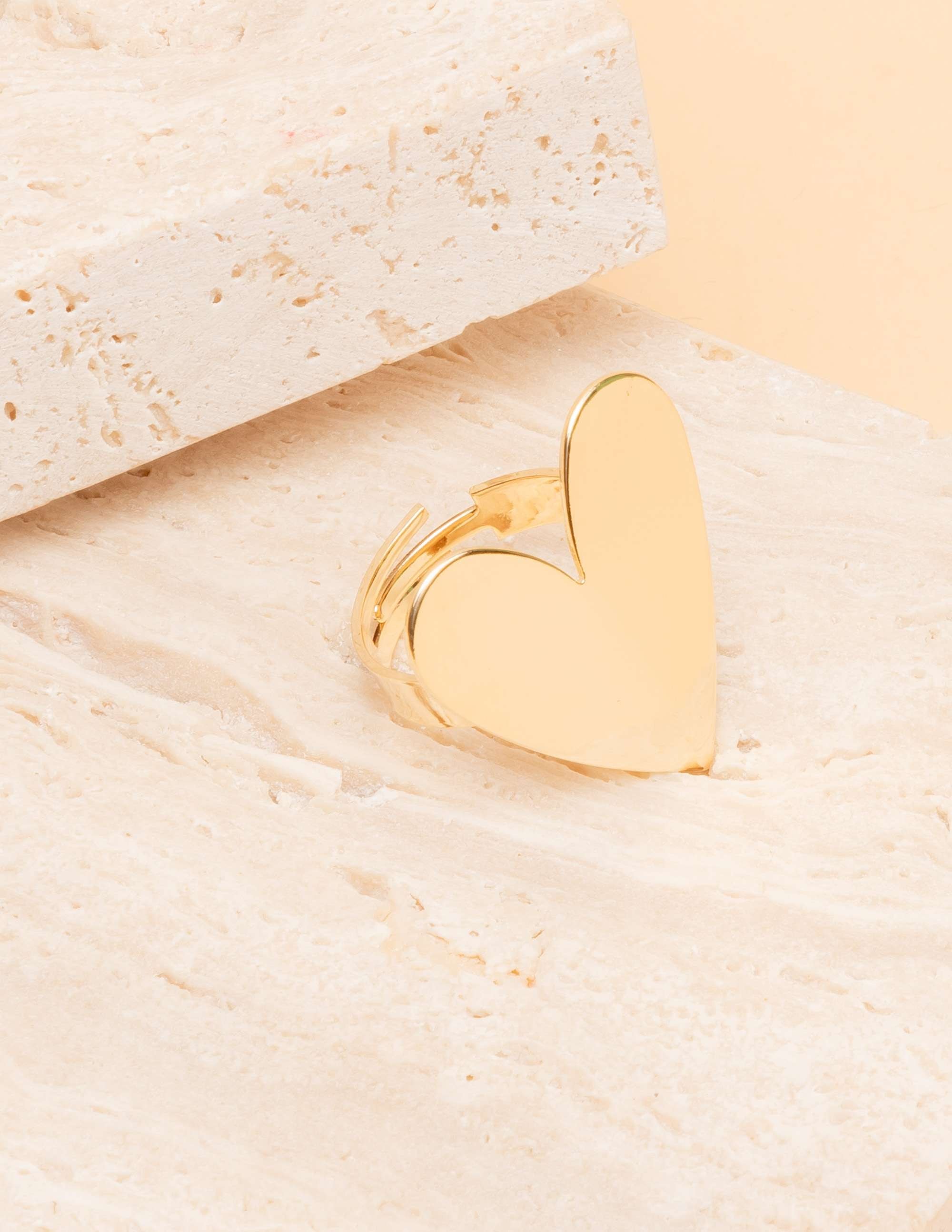 Anel regulável maxi, pingente de coração chapa liso. Banhado a ouro. Anel de coração além de ser um clássico, cada vez mais vemos modelos e roupagens novas para trazer ainda mais diversidade no clássico.