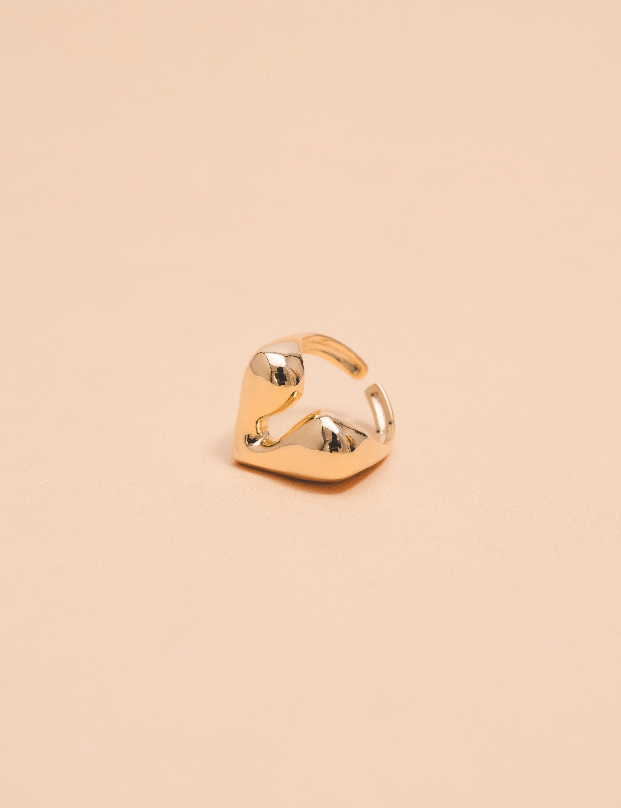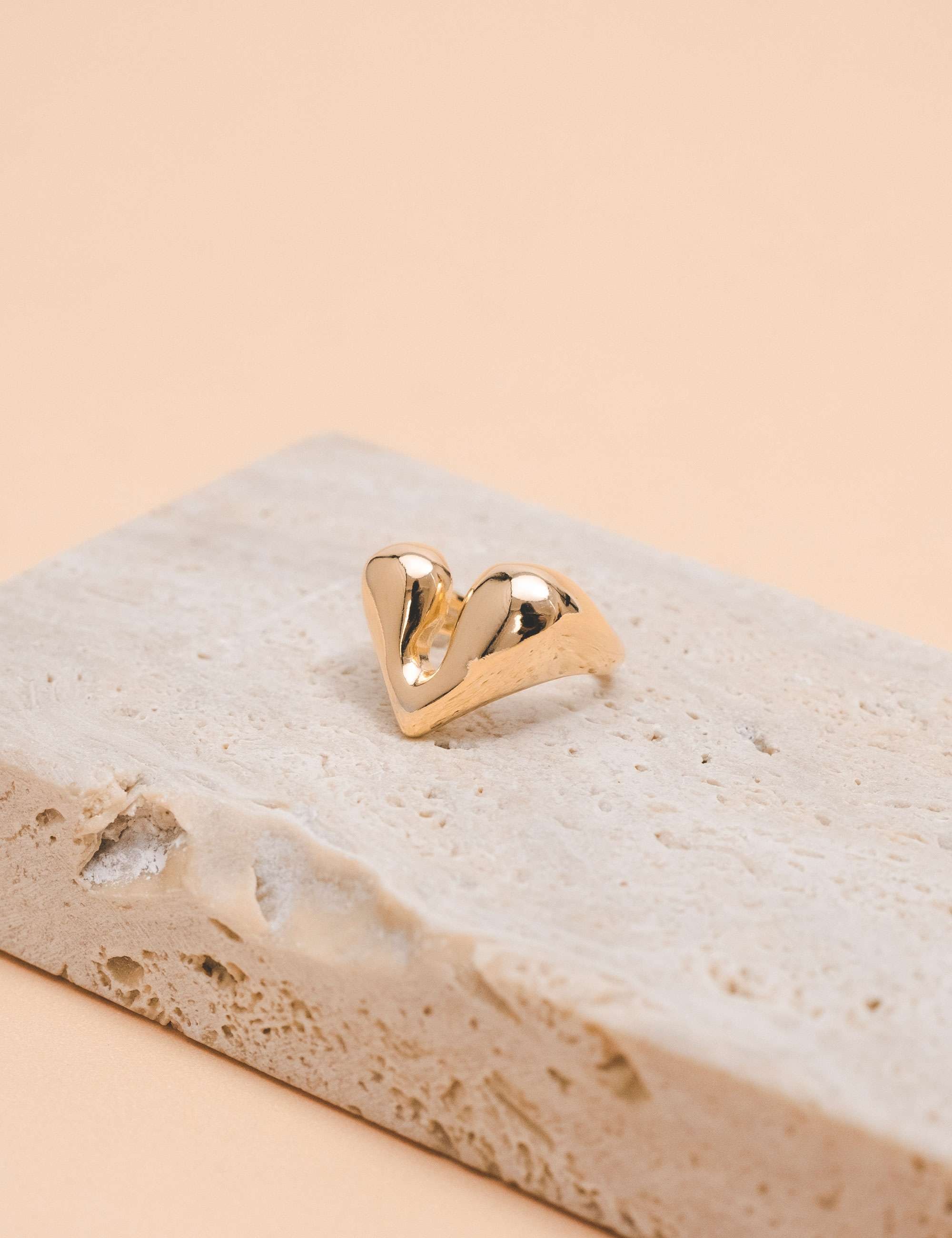 Peça: Um anel em formato de coração moderno, com seu design minimalista e elegante, é uma escolha versátil que complementa qualquer estilo com sofisticação atemporal.