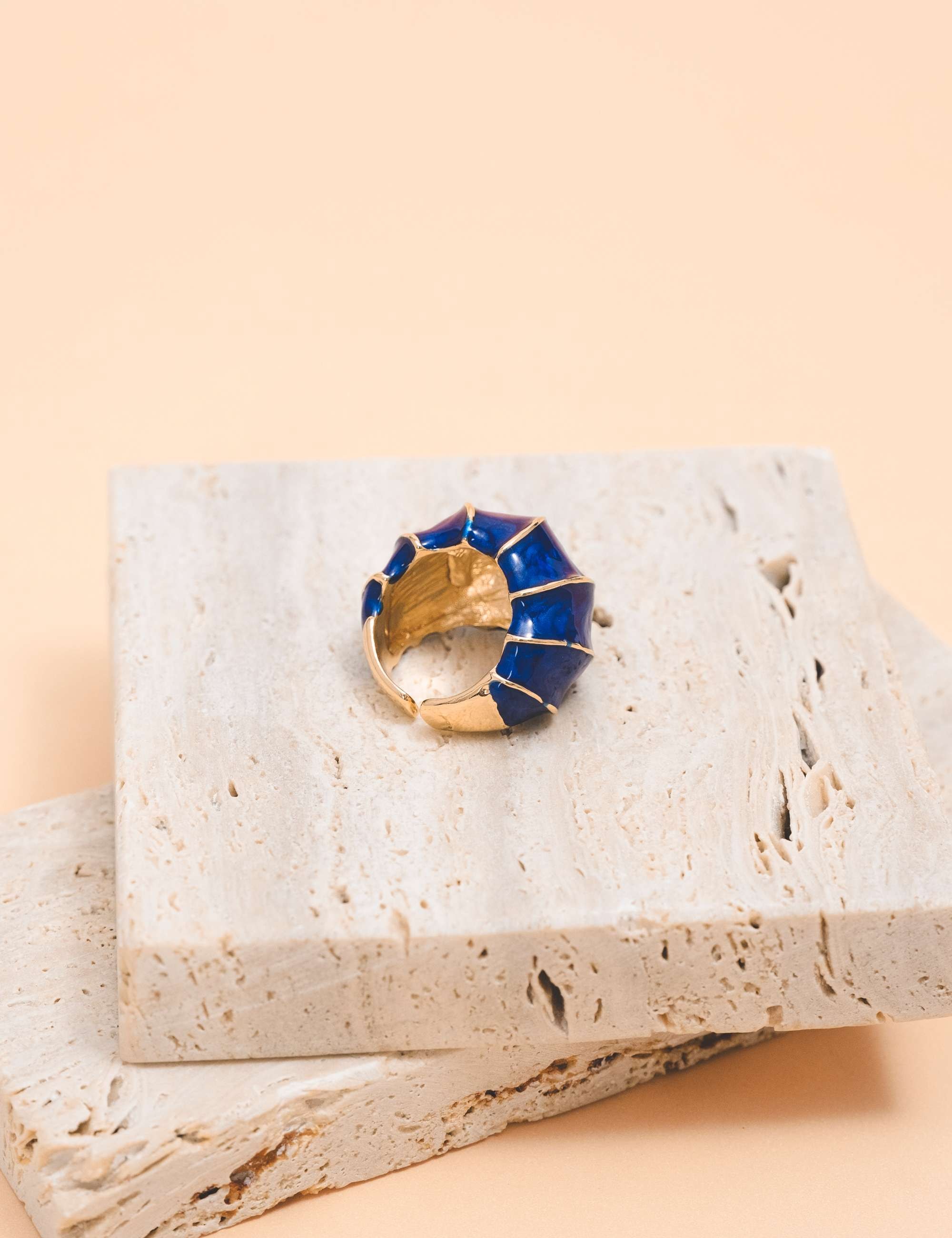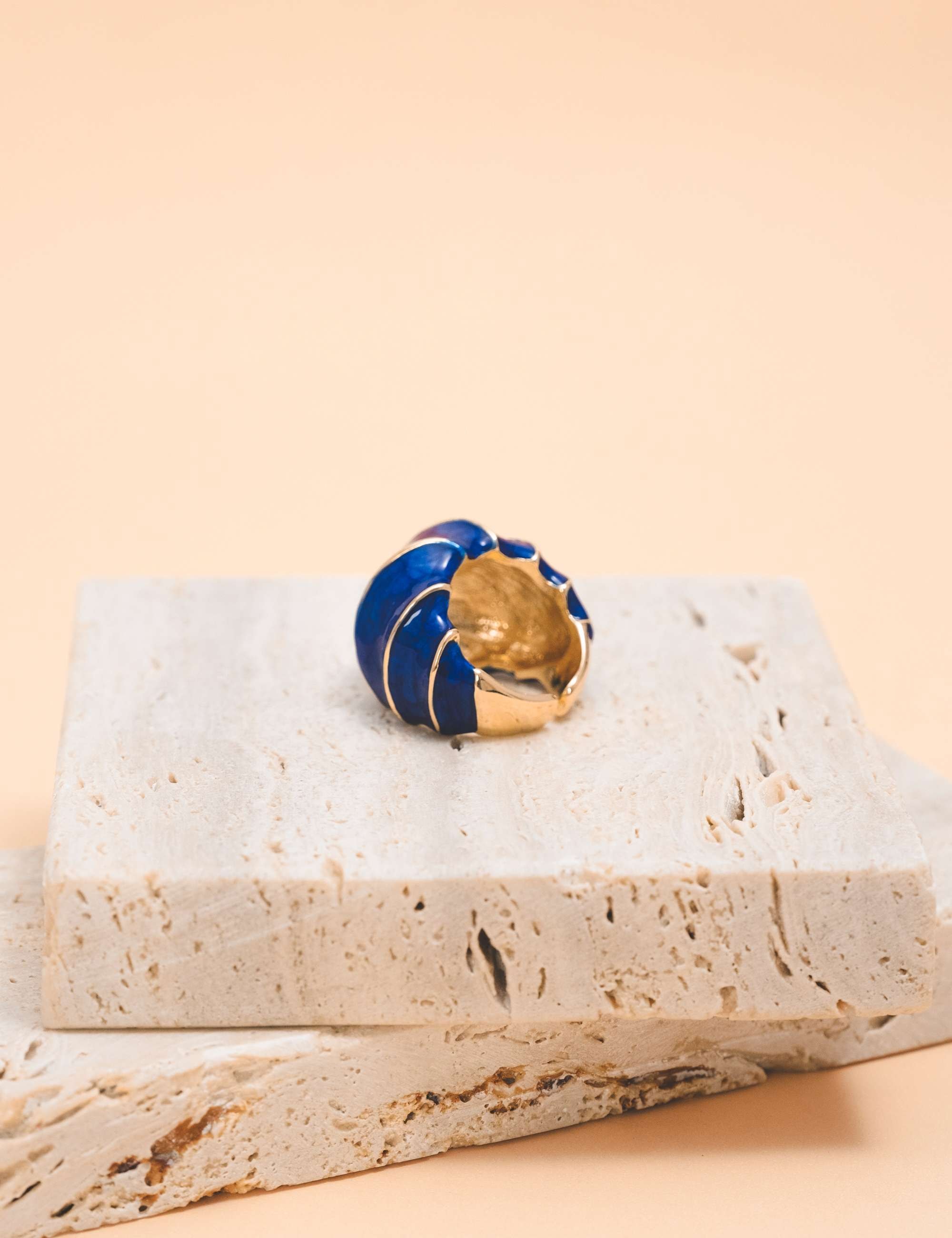 Peça: Anel regulável esmaltado metalizado em formato de croissant abaulado. Ideal para dar aquele toque no look.