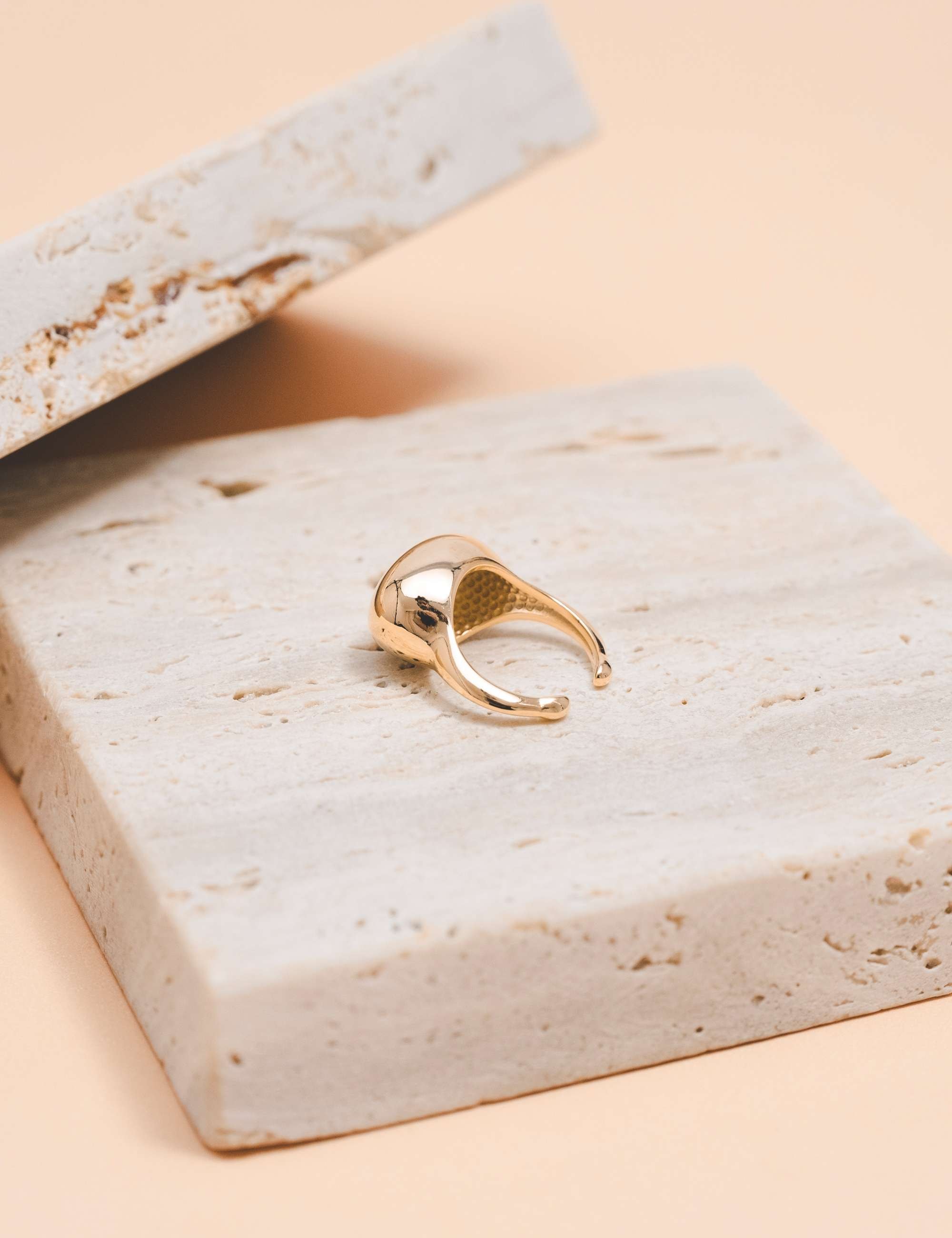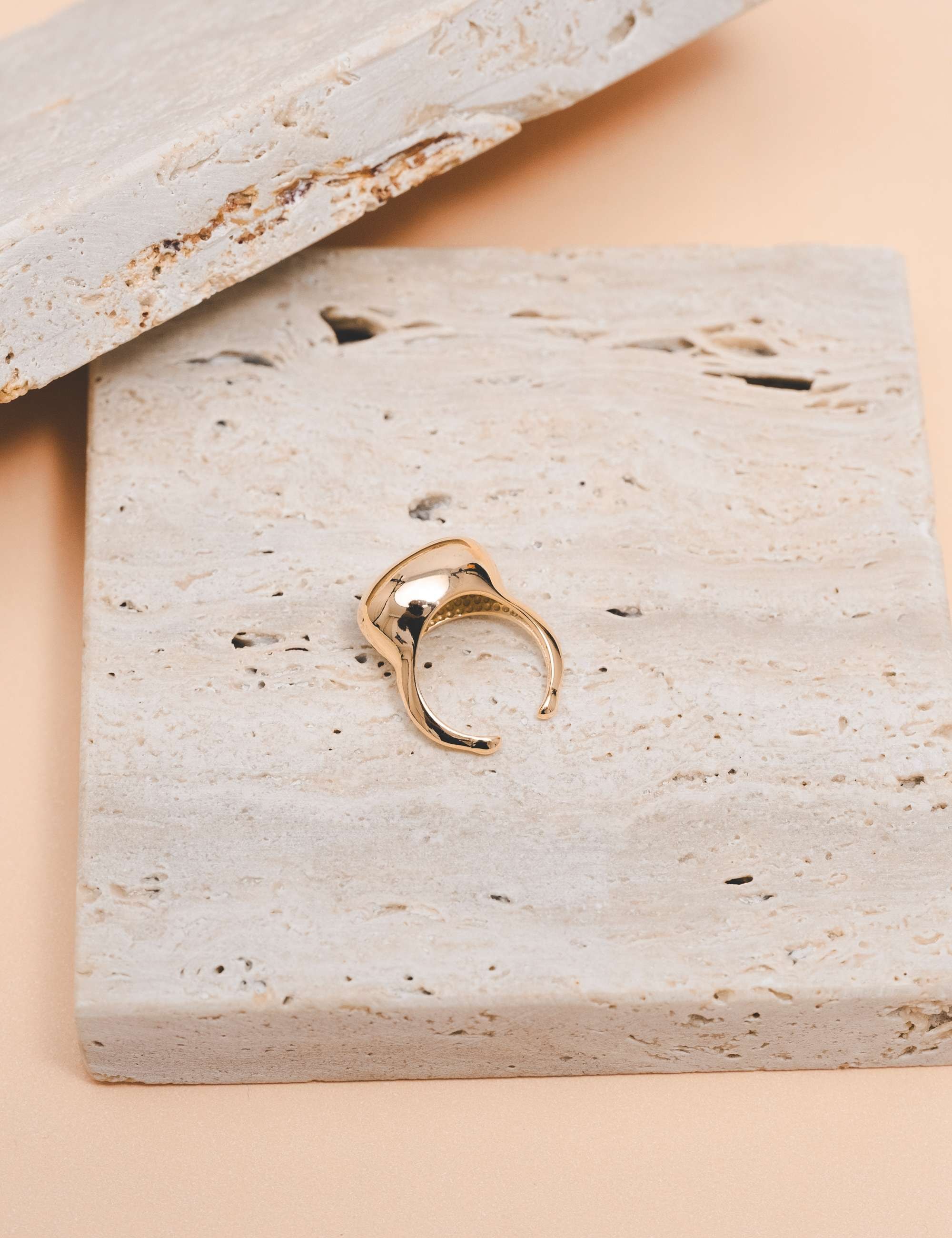 Peça: Anel ajustável com design orgânico polido. Além de complementar seu estilo, este acessório traz uma dose extra de singularidade e elegância à sua aparência.