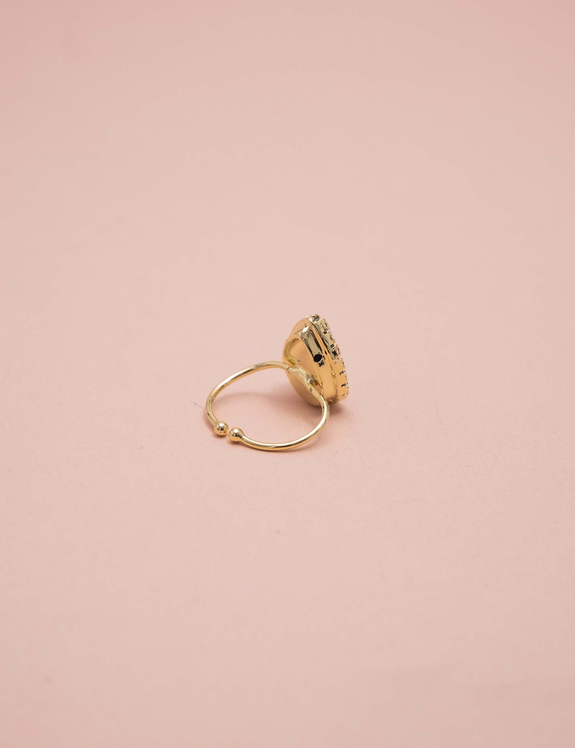 Anel em metal com acabamento delicado e detalhes em pedra cristal. Design moderno, brilho sutil e aro regulável para se ajustar perfeitamente ao seu dedo.