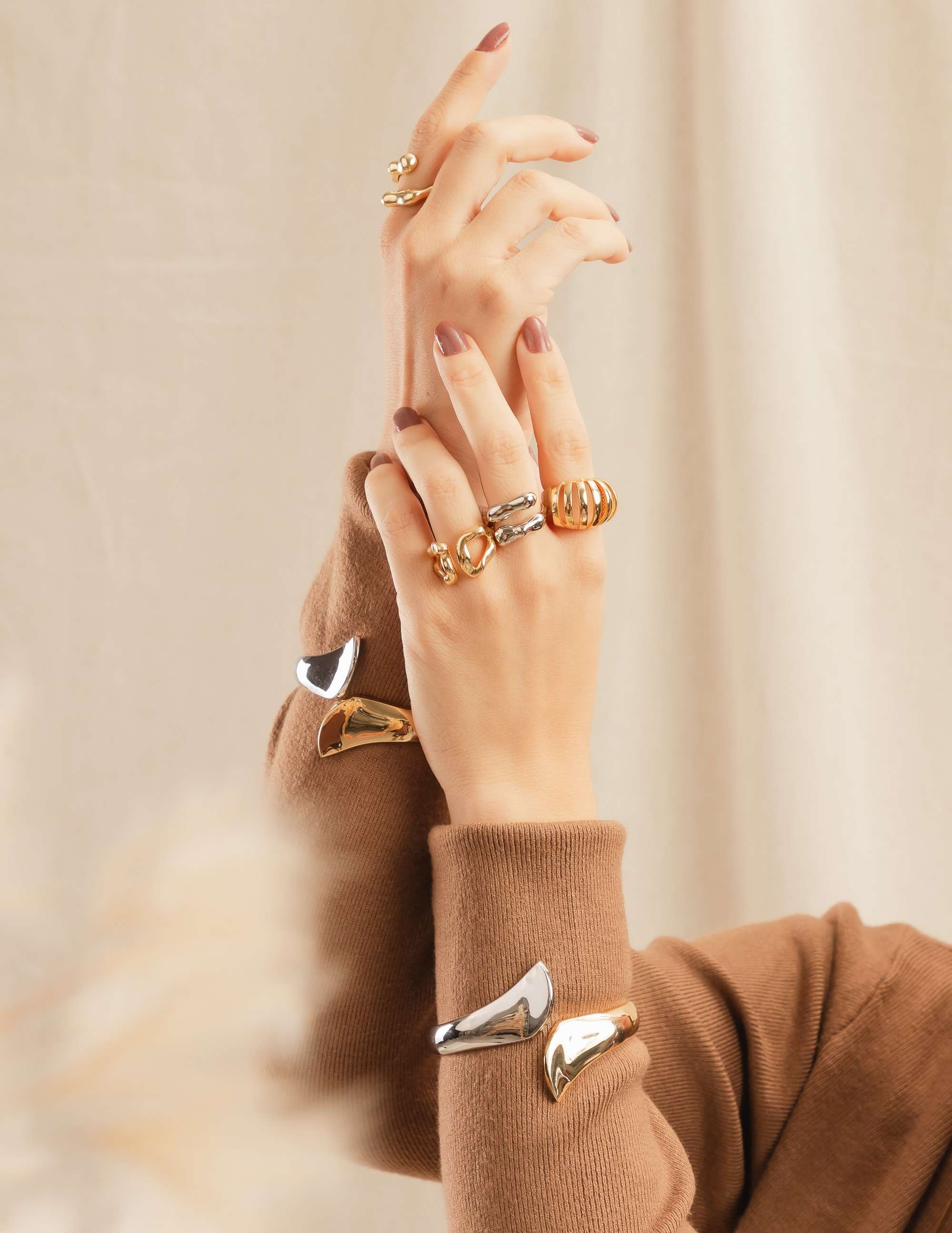 Peça: Anel regulavel prata com design abstrato. Além de complementar seu estilo, este acessório adiciona um toque de originalidade e sofisticação ao seu look.