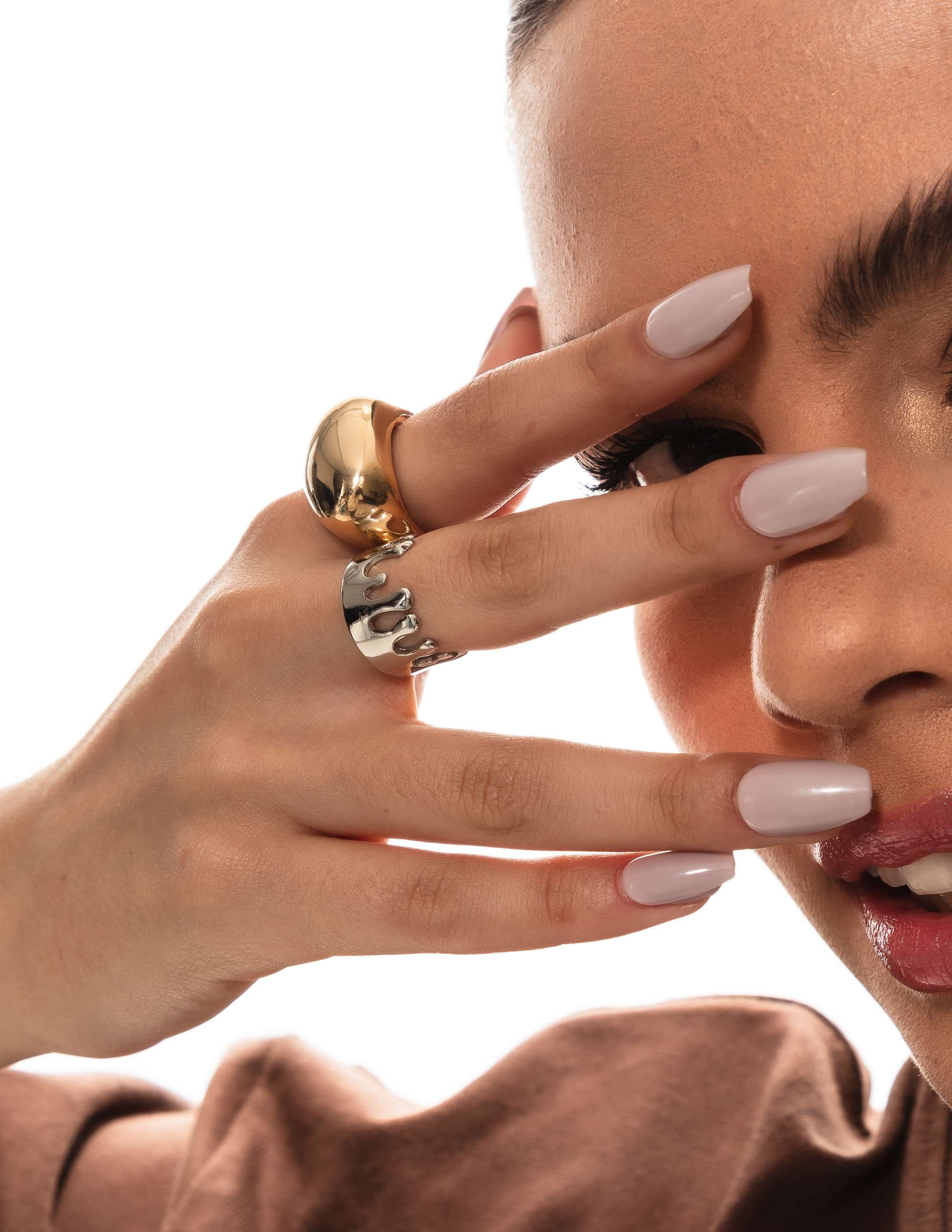 Peça: Anel com formato orgânico, uma harmonia entre o design inspirado pela natureza e a sofisticação contemporânea.