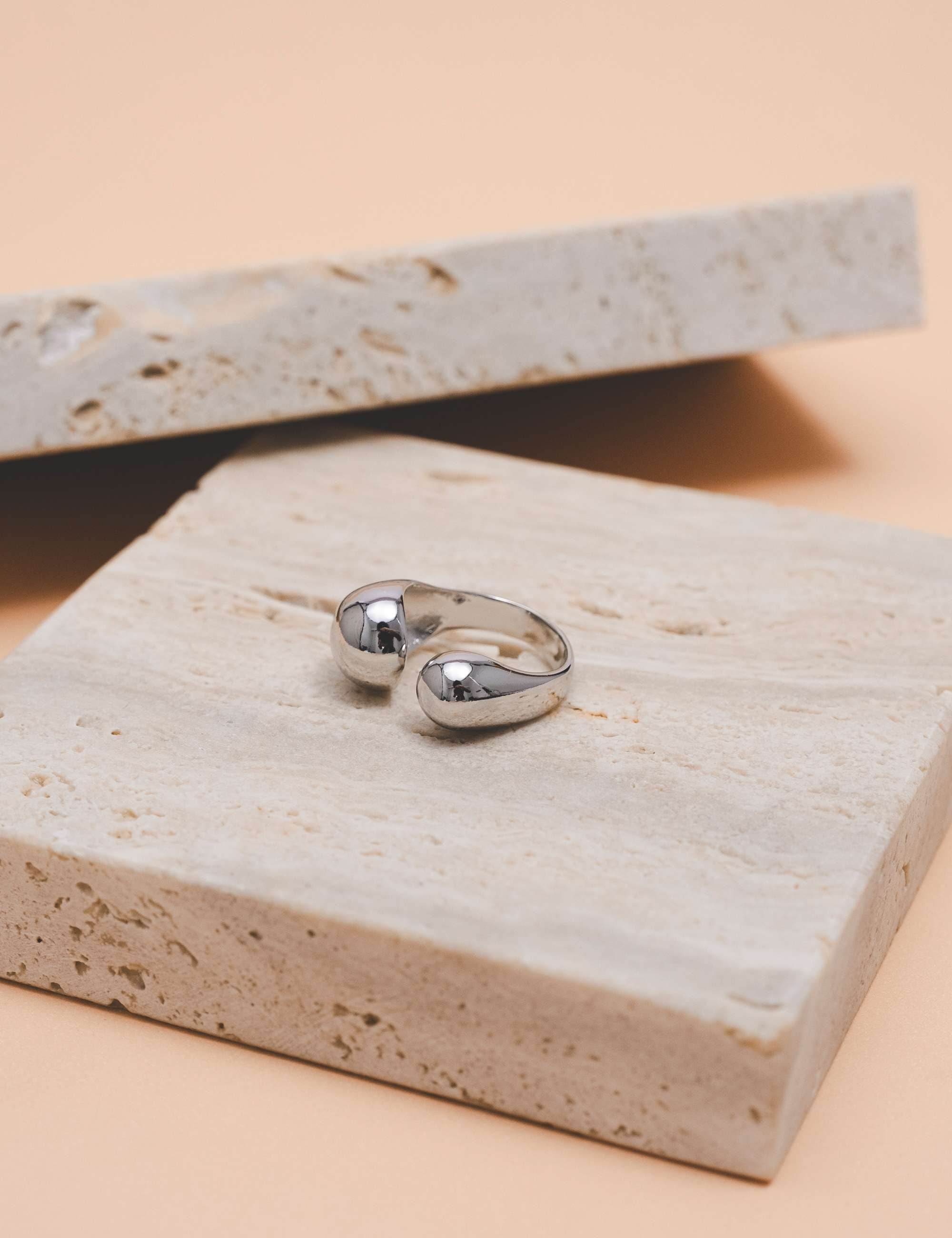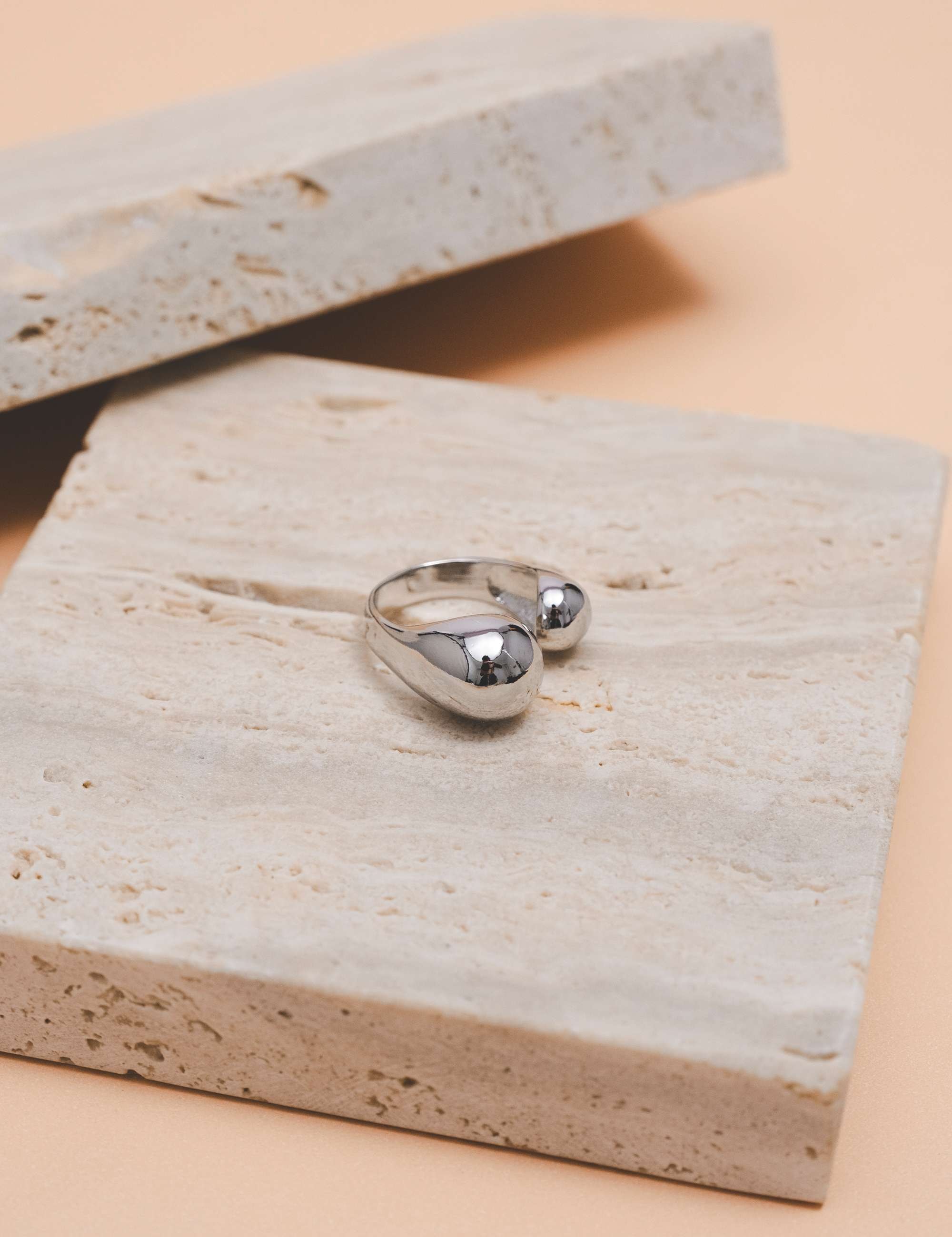 Anel regulável com formato de 2 esferas em tamanho diferente. Peça de alta fusão, banhado no bianco , verniz e antialérgico. Os anéis cada vez mais bem ganhando espaço e destaque no mundo dos acessórios, cada vez mais estilosos e imponentes para traduzir o lado imponente que a mulher traz em sua feminilidade.
