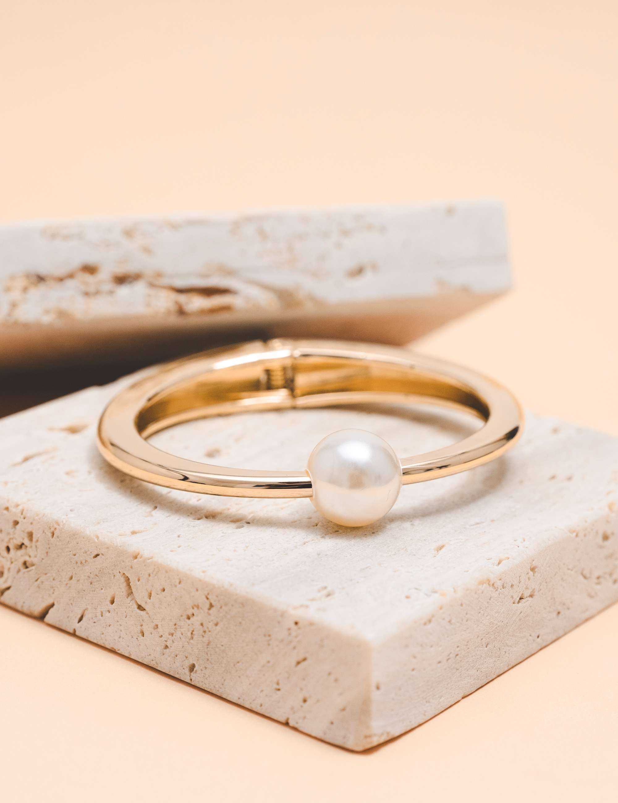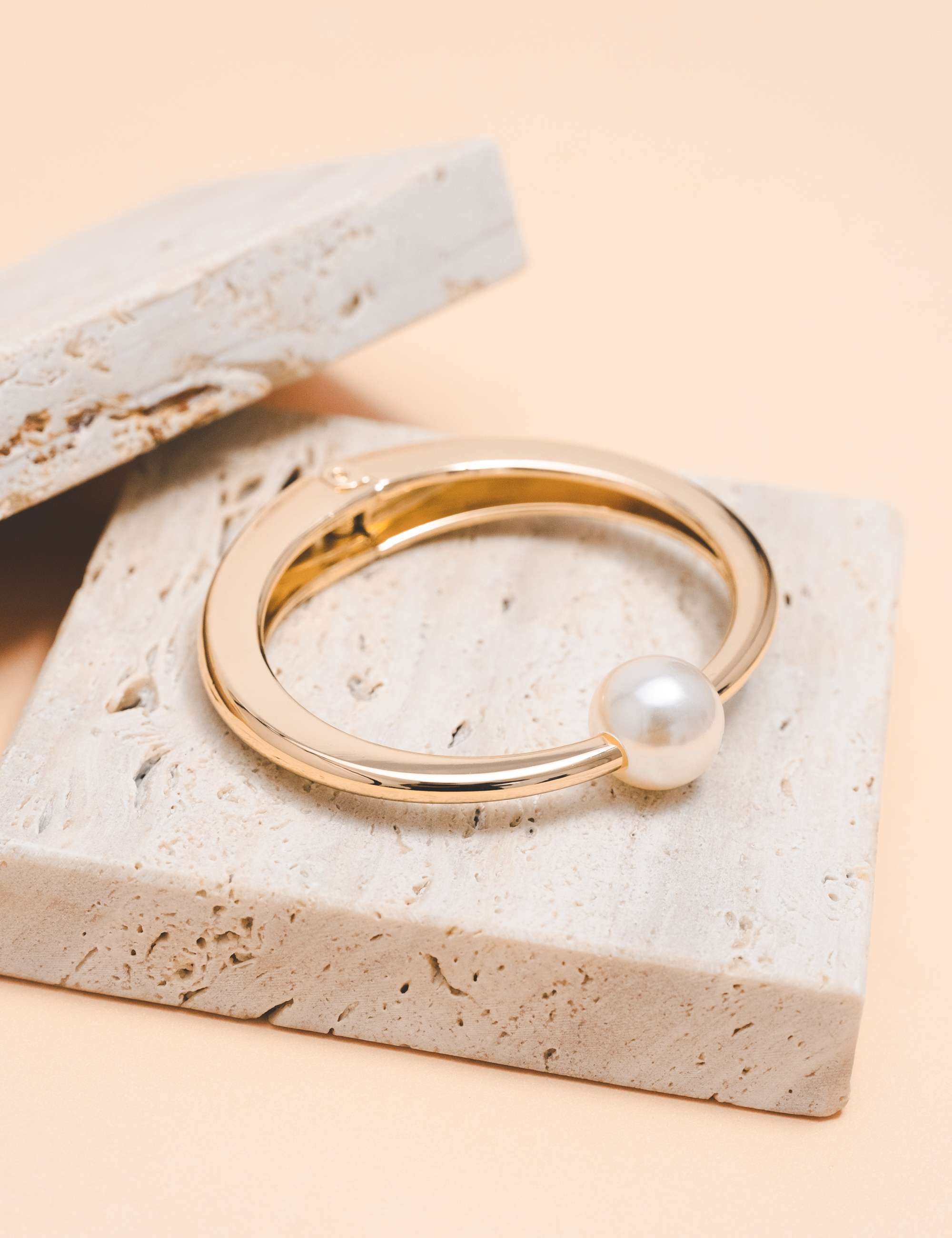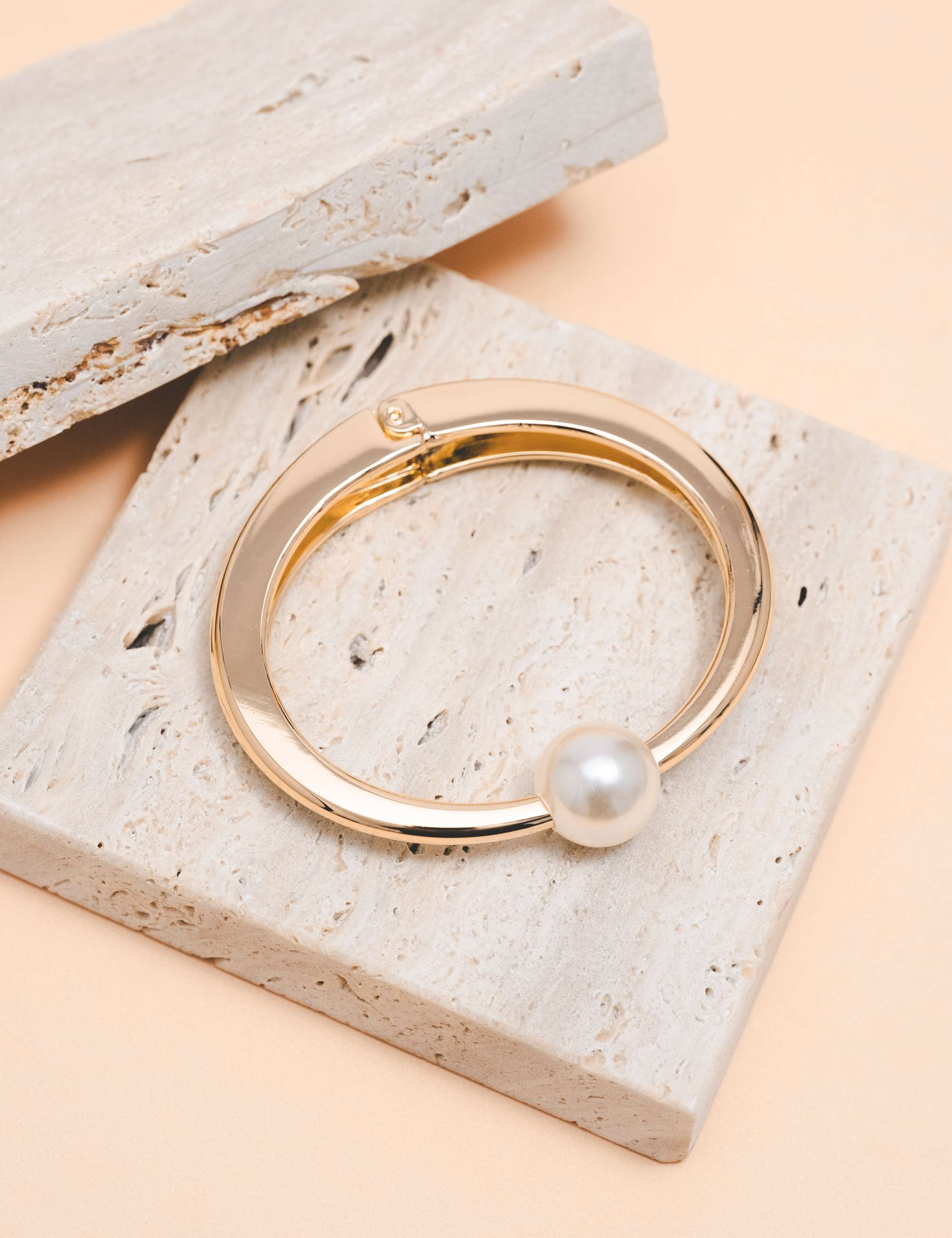 Peça: Bracelete mola achatado, com detalhe de pérola resinada, ideal para dar aquele toque no look.