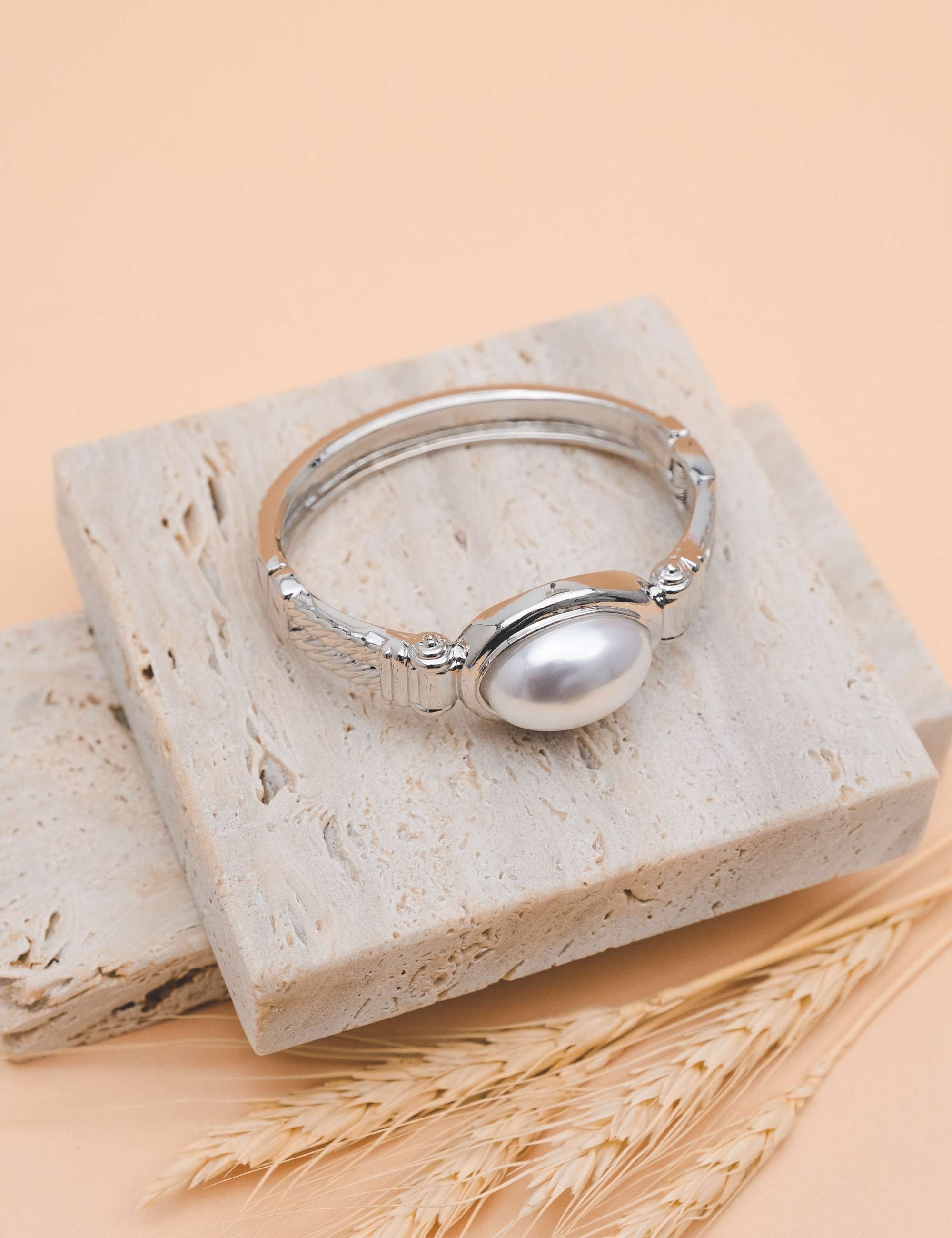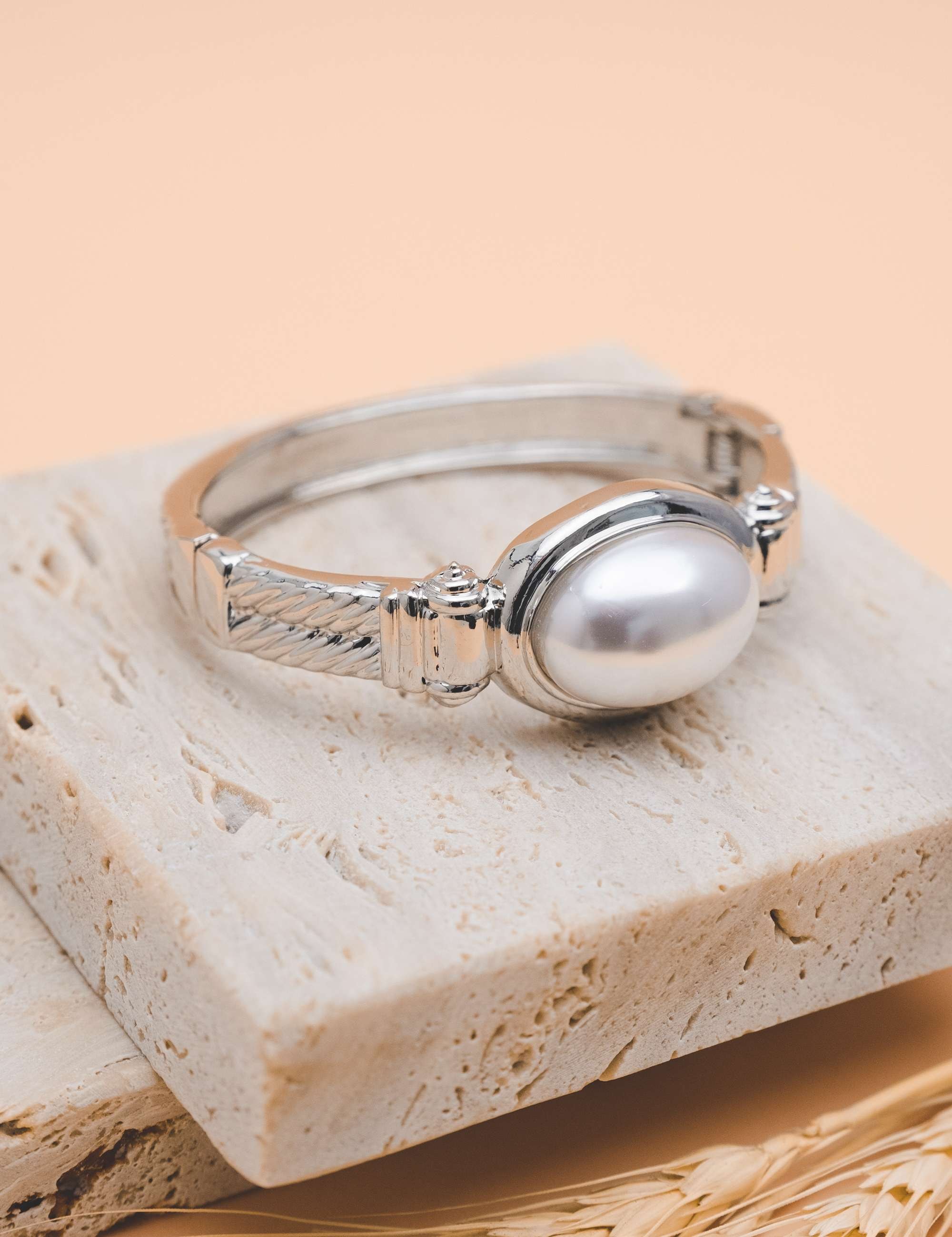 Bracelete de mola em formato vintage com detalhe no meio de pérola oval . Peça alta fusão com sistema mola, banhado no diamante, pérola resinada, verniz e antialérgico. Bracelete de mola além de ser fácil o manuseio, traz jovialidade, estilo e faz efeito no look de forma transformadora. Ideal para vc usar nos 2 antebraços ou misturar com outros modelos.