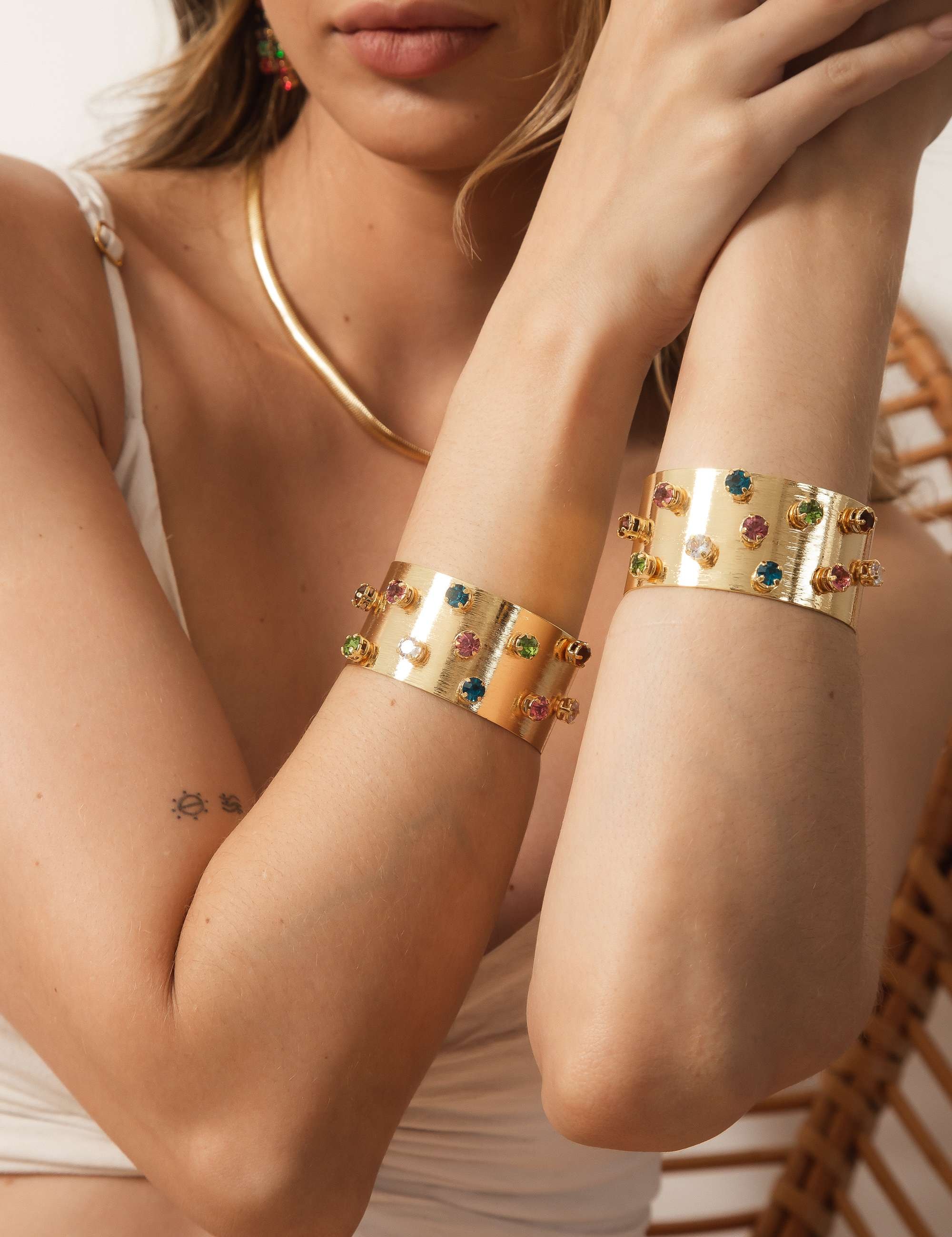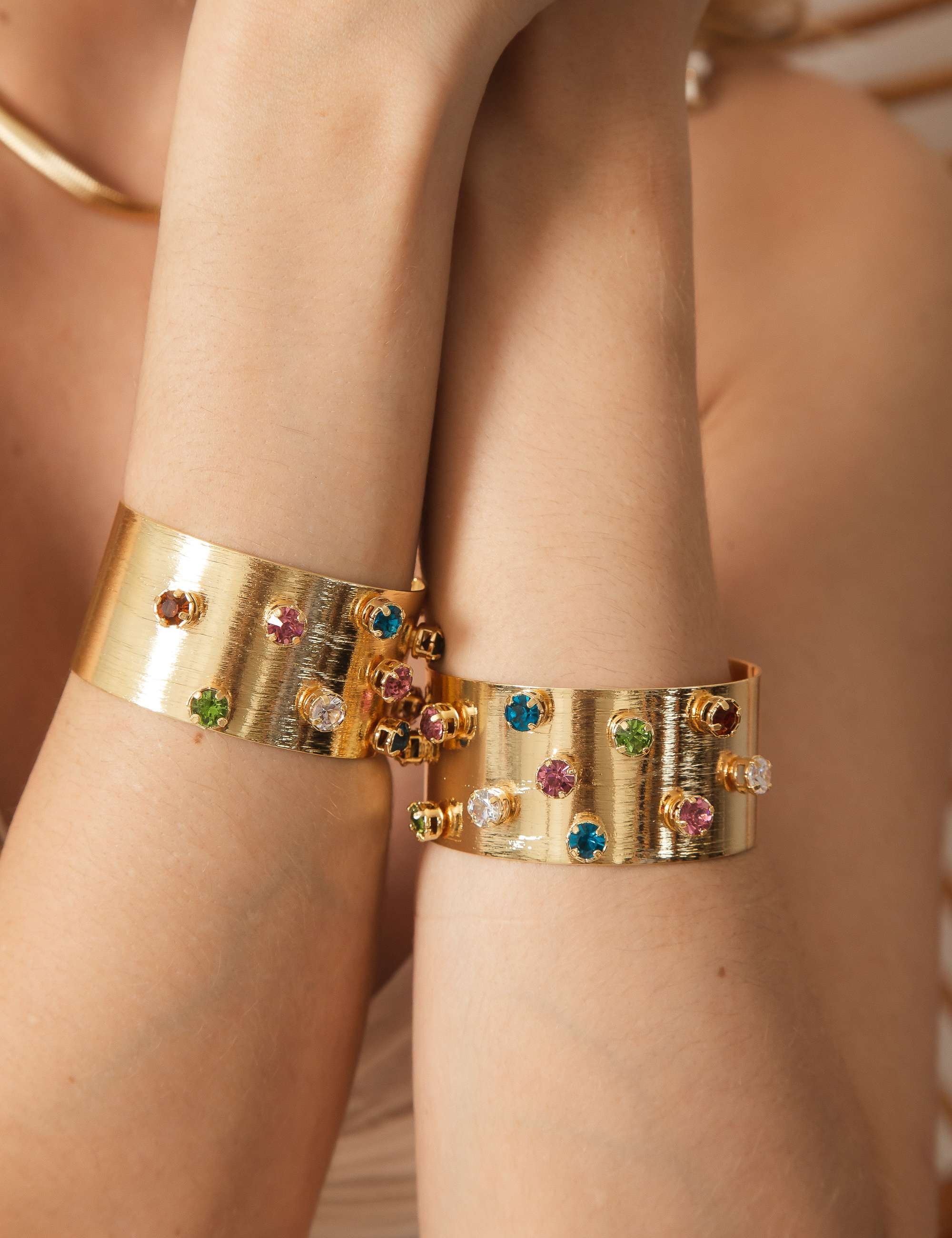 Todos os nossos metais são banhados a ouro, possuem camada protetiva para bijuterias finas e também possuem camada de metal precioso em sua composição. As bijuterias precisam de cuidados, limpe-as com flanela seca e macia, evite contato direto com cosméticos, areia, praia e piscina.