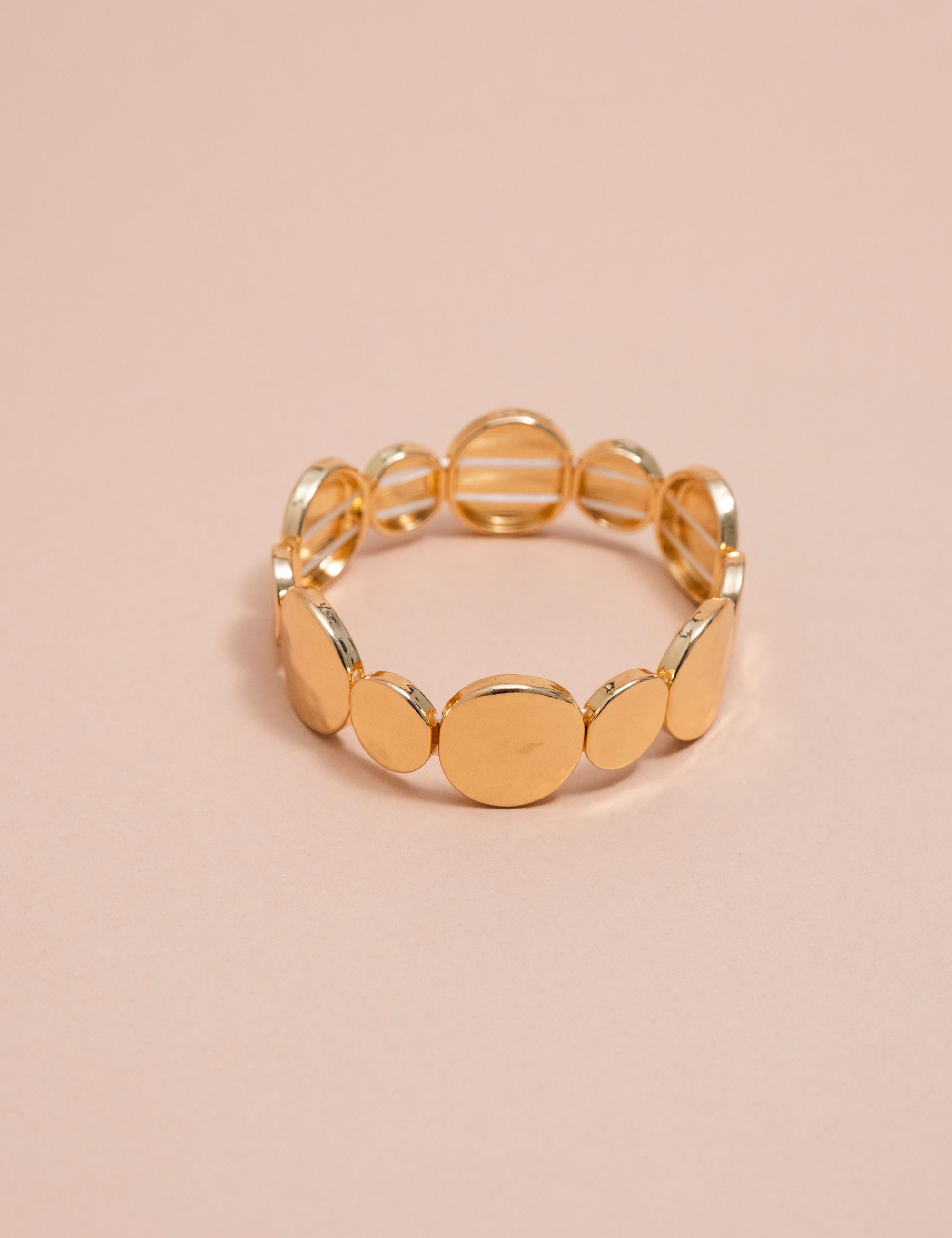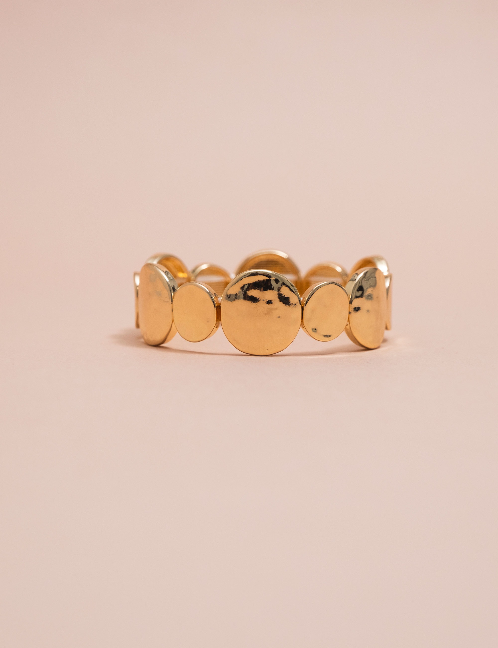 Peça: Bracelete de elástico regulável, formato de pastilhas marteladas. Com design orgânico que complementa qualquer estilo e traz o ar contemporâneo. Ideal para acrescentar um toque de sofisticação a qualquer ocasião, seja um evento especial ou o dia a dia.