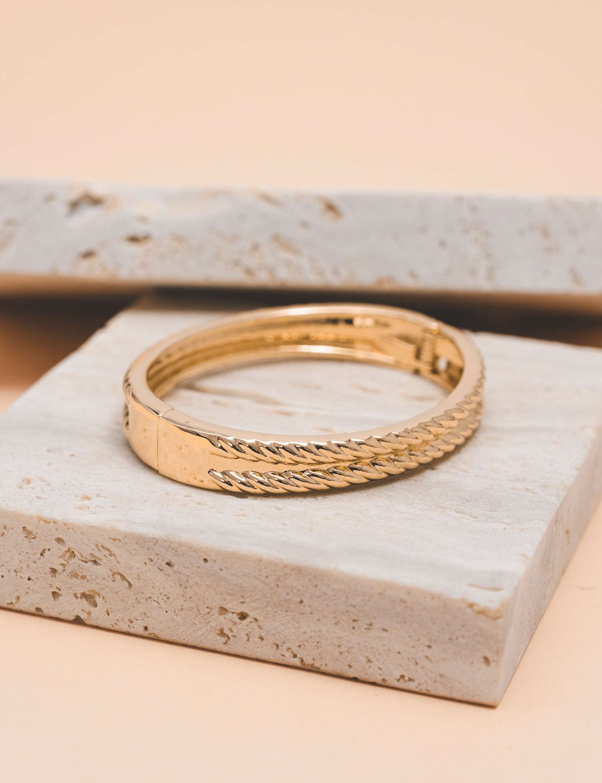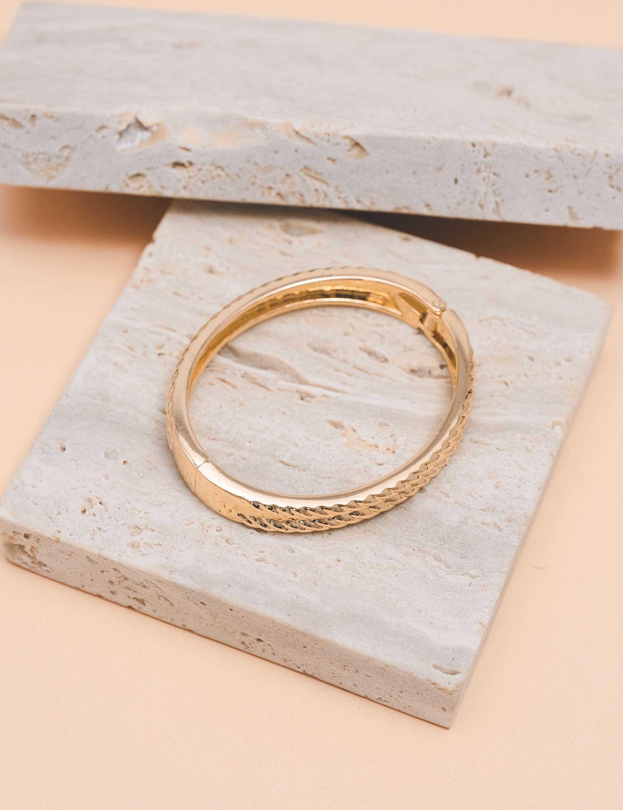 Bracelete de mola com formato trançado, banhando a ouro. O bracelete desejo para você ter e não largar mais, além de lindo o bracelete que traz estilo e muito conceito para você que ama ter acessórios diferenciados.