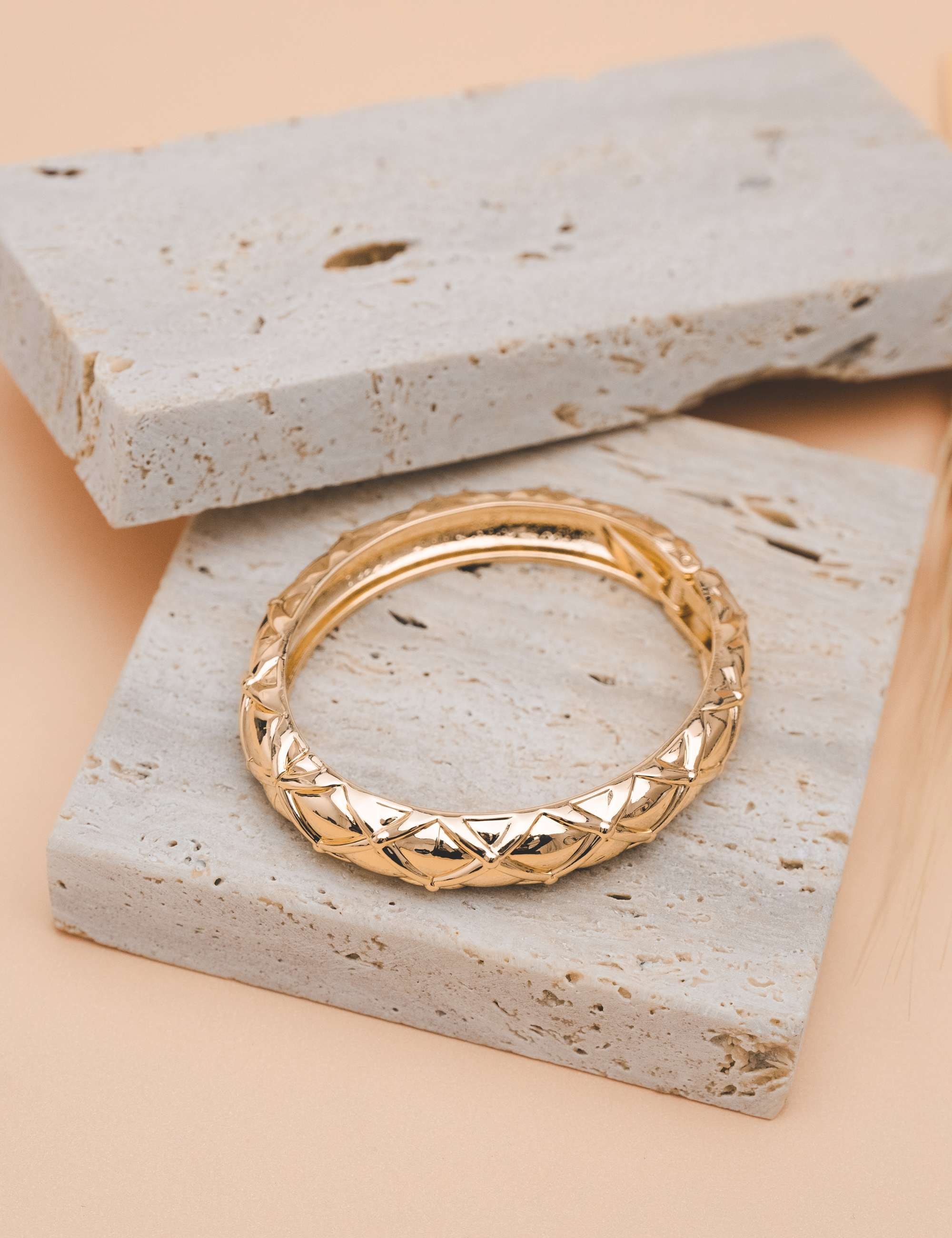 Todos os nossos metais são banhados a ouro, possuem camada protetiva para bijuterias finas e também possuem camada de metal precioso em sua composição. As bijuterias precisam de cuidados, limpe-as com flanela seca e macia, evite contato direto com cosméticos, areia, praia e piscina.