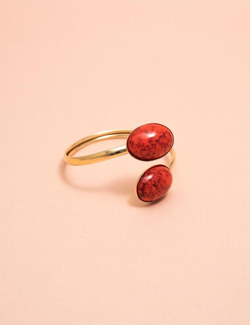 Peça: Bracelete banhado a ouro, com detalhes de pedra dupla, pedra howlita vermelha, formato organico, ideal para dar aquele toque no look.