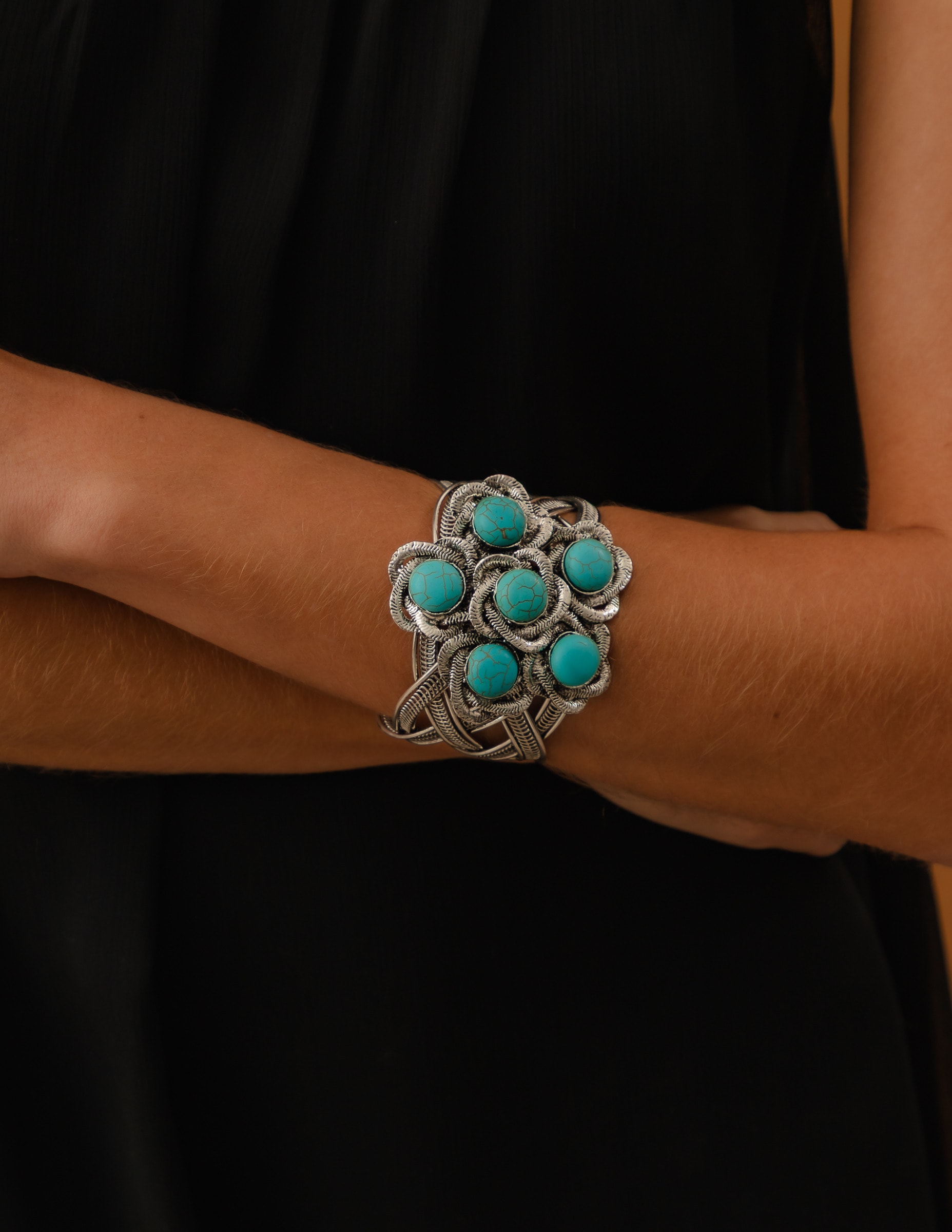 BRACELETE METAL PEDRA TURQUESA - BC29042V009