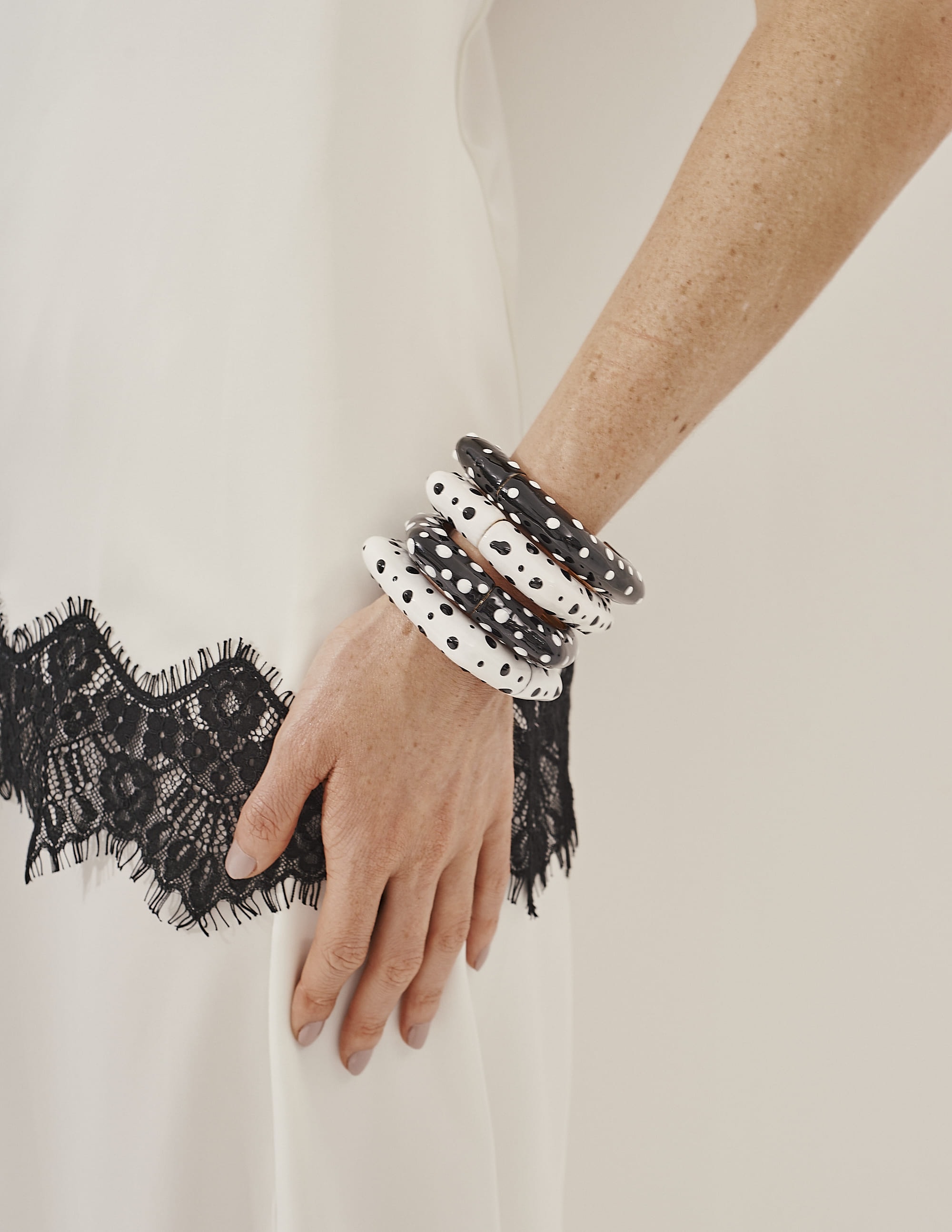 Bracelete resina branco, Moderno e elegante, é o toque de destaque perfeito para compor produções com personalidade.