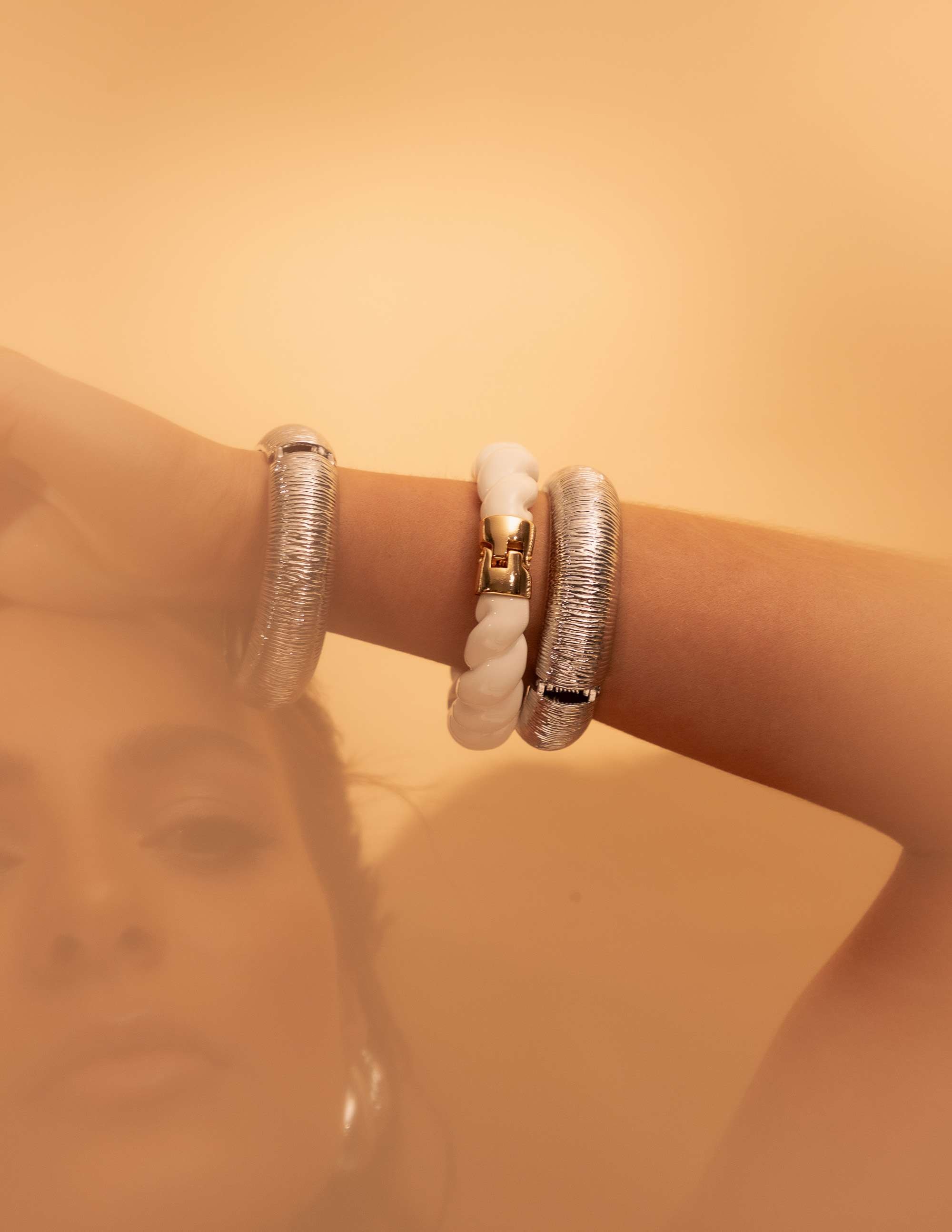 Todos os nossos metais são banhados a ouro, possuem camada protetiva para bijuterias finas e também possuem camada de metal precioso em sua composição. As bijuterias precisam de cuidados, limpe-as com flanela seca e macia, evite contato direto com cosméticos, areia, praia e piscina.