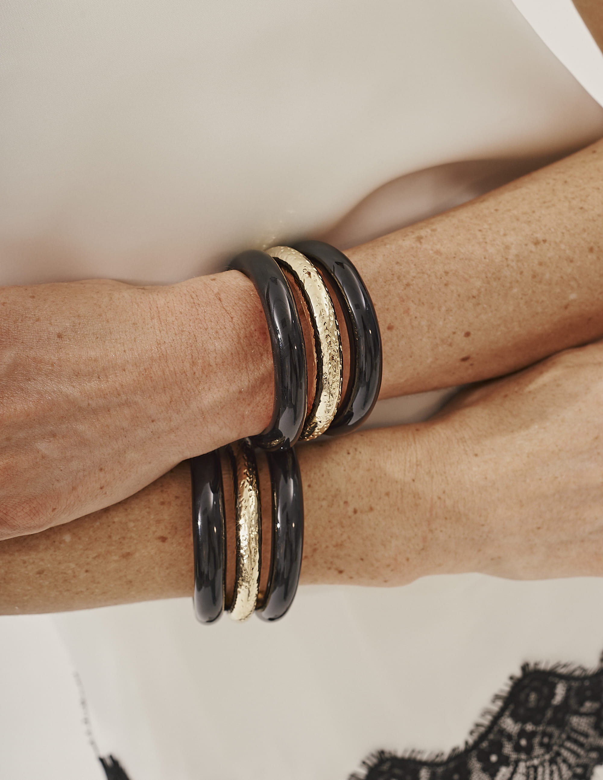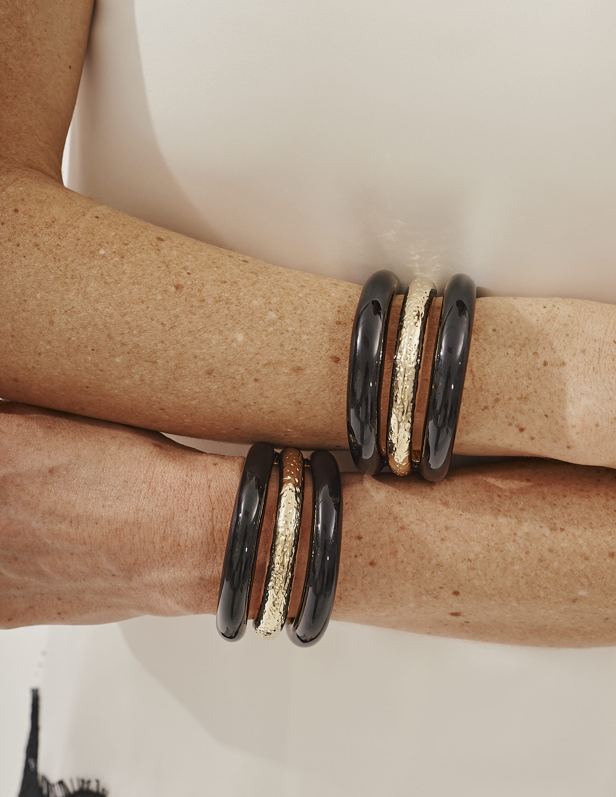 Bracelete resina preto, Moderno e elegante, é o toque de destaque perfeito para compor produções com personalidade.