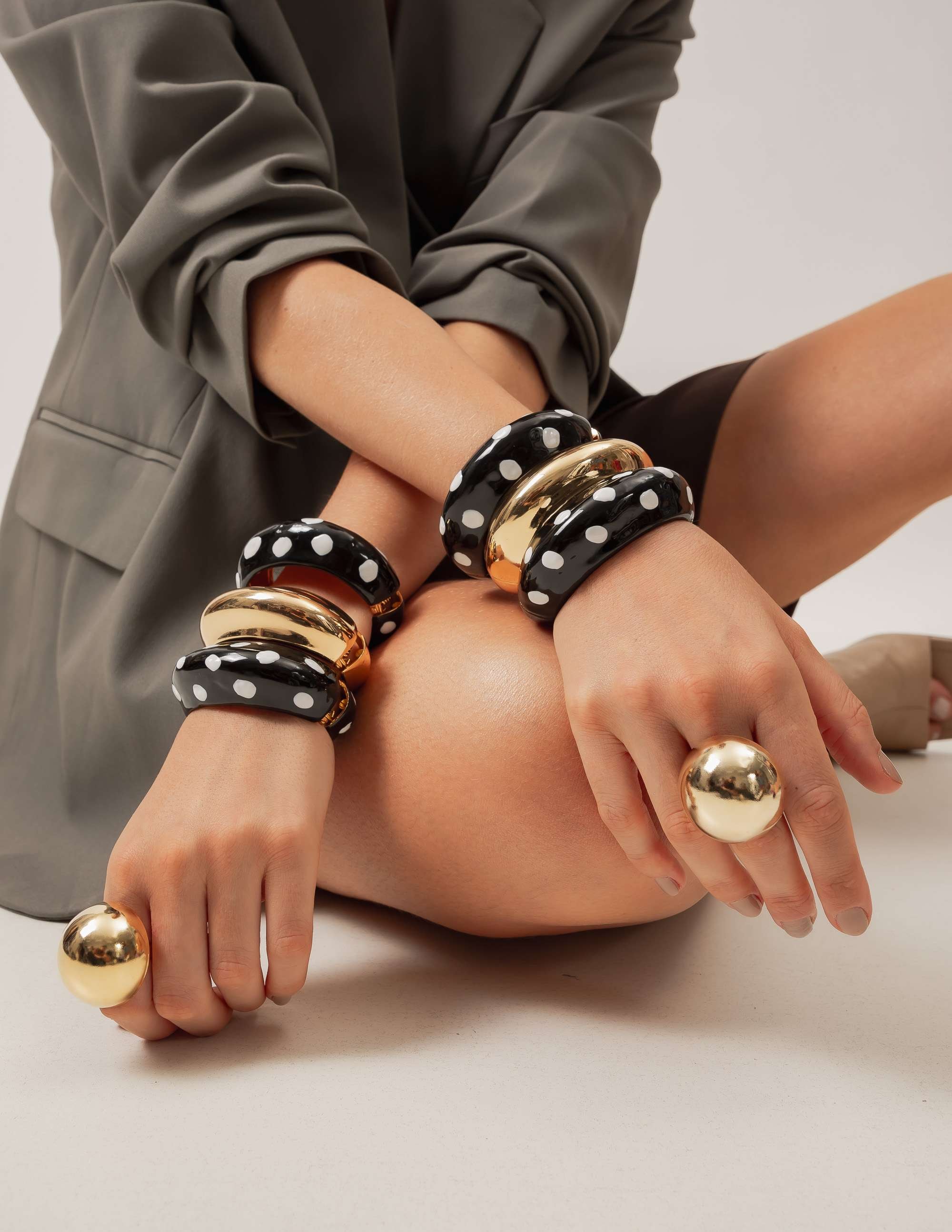 Todos os nossos metais são banhados a ouro, possuem camada protetiva para bijuterias finas e também possuem camada de metal precioso em sua composição. As bijuterias precisam de cuidados, limpe-as com flanela seca e macia, evite contato direto com cosméticos, areia, praia e piscina.