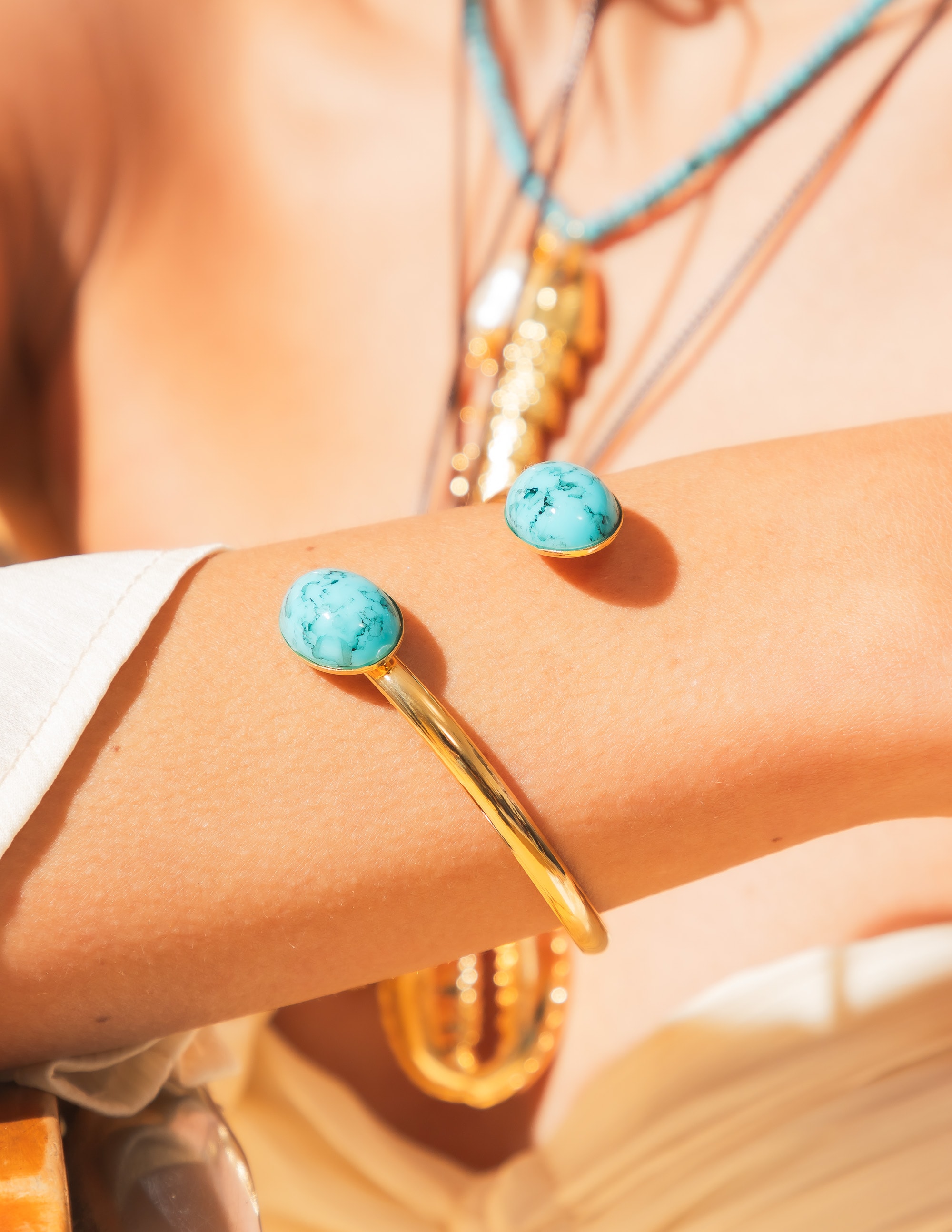 BRACELETE METAL PEDRA TURQUESA - BC29042V009