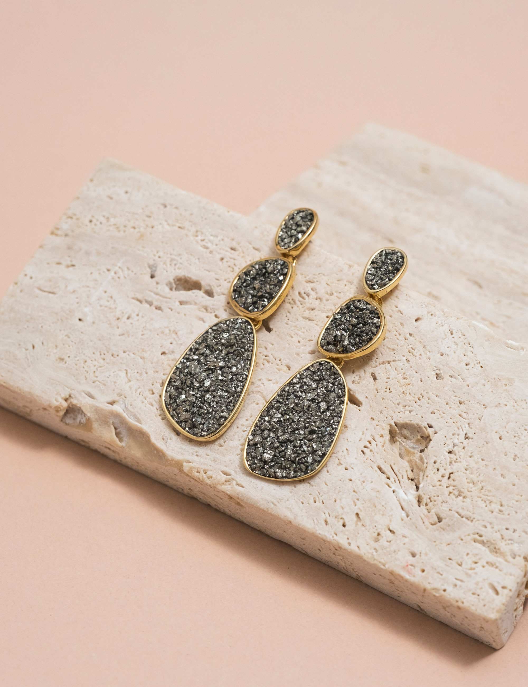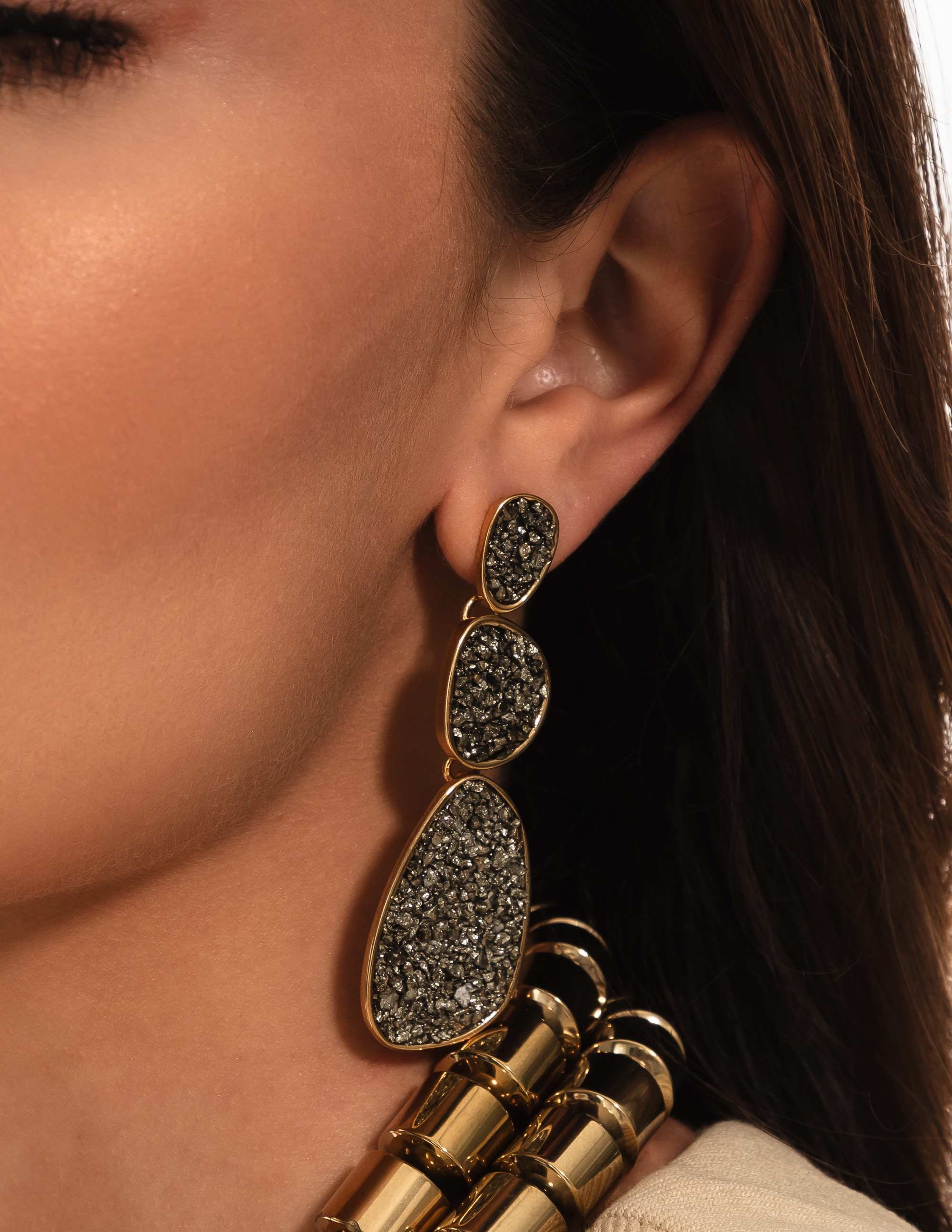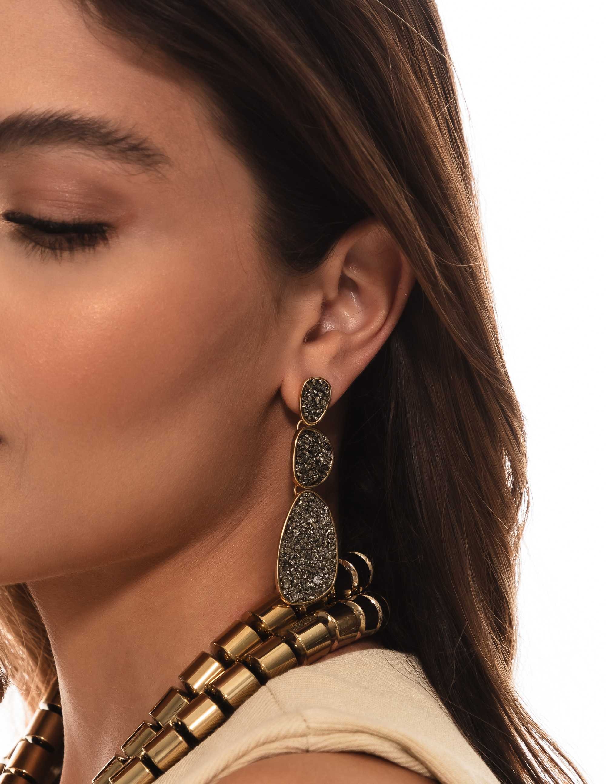 Material: Banho Ouro, alta fusão, pedra pirita.