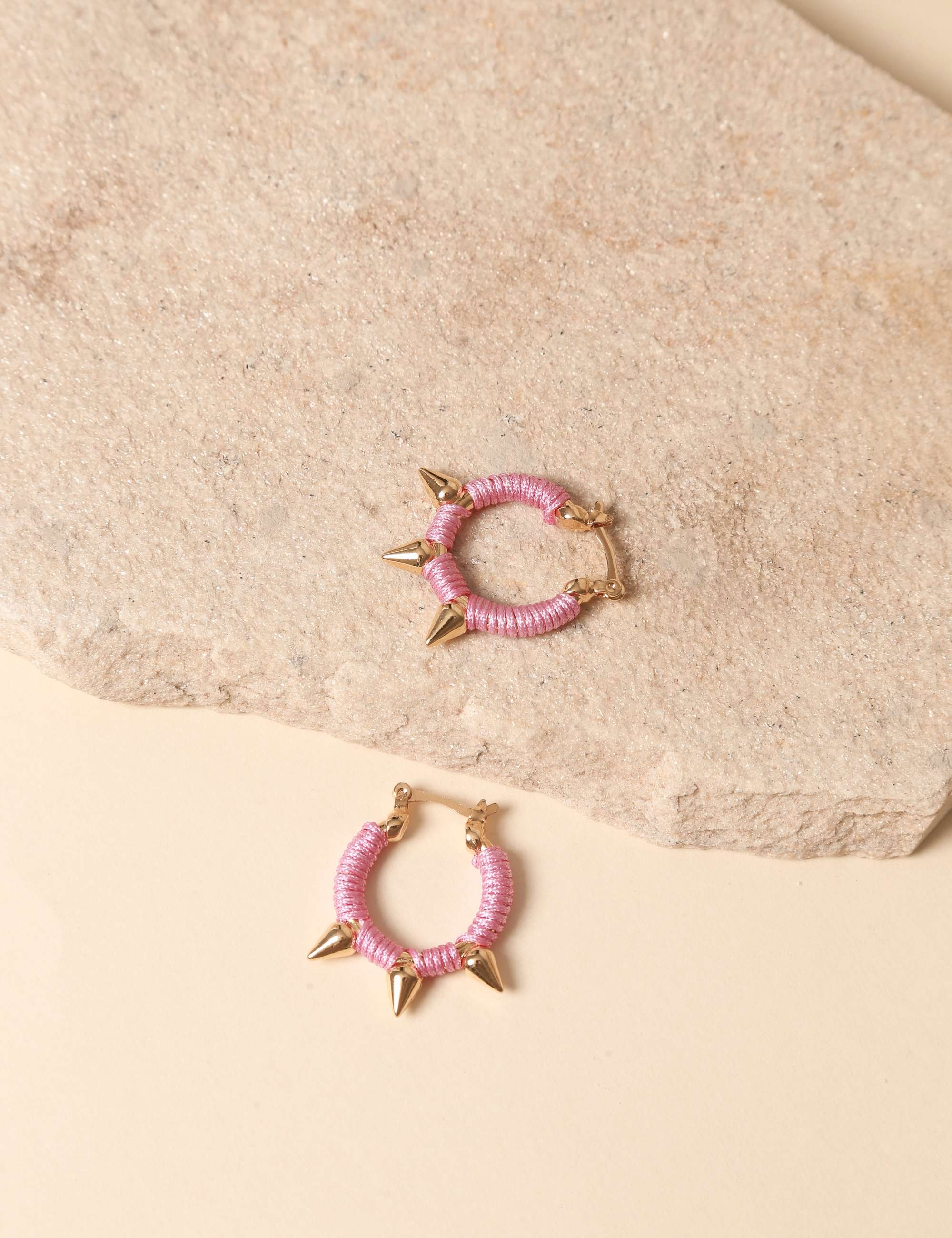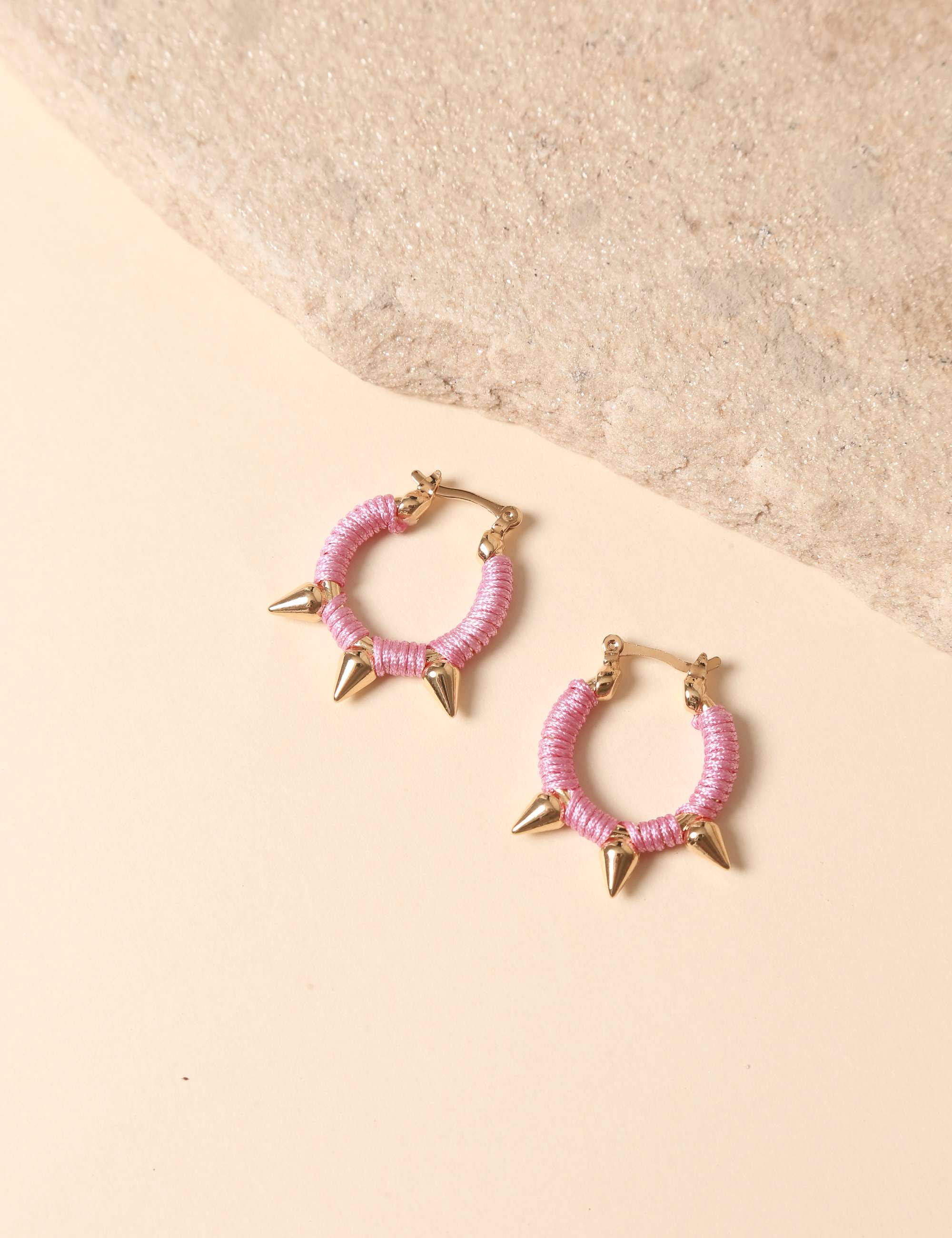 Brinco em formato SPIKE com fio de algodão em volta do brinco trazendo o lado feito a mão e a transformação que o ser humano pode trazer. Brinco SPIKE traz estilo, cores e o dom de transformar.