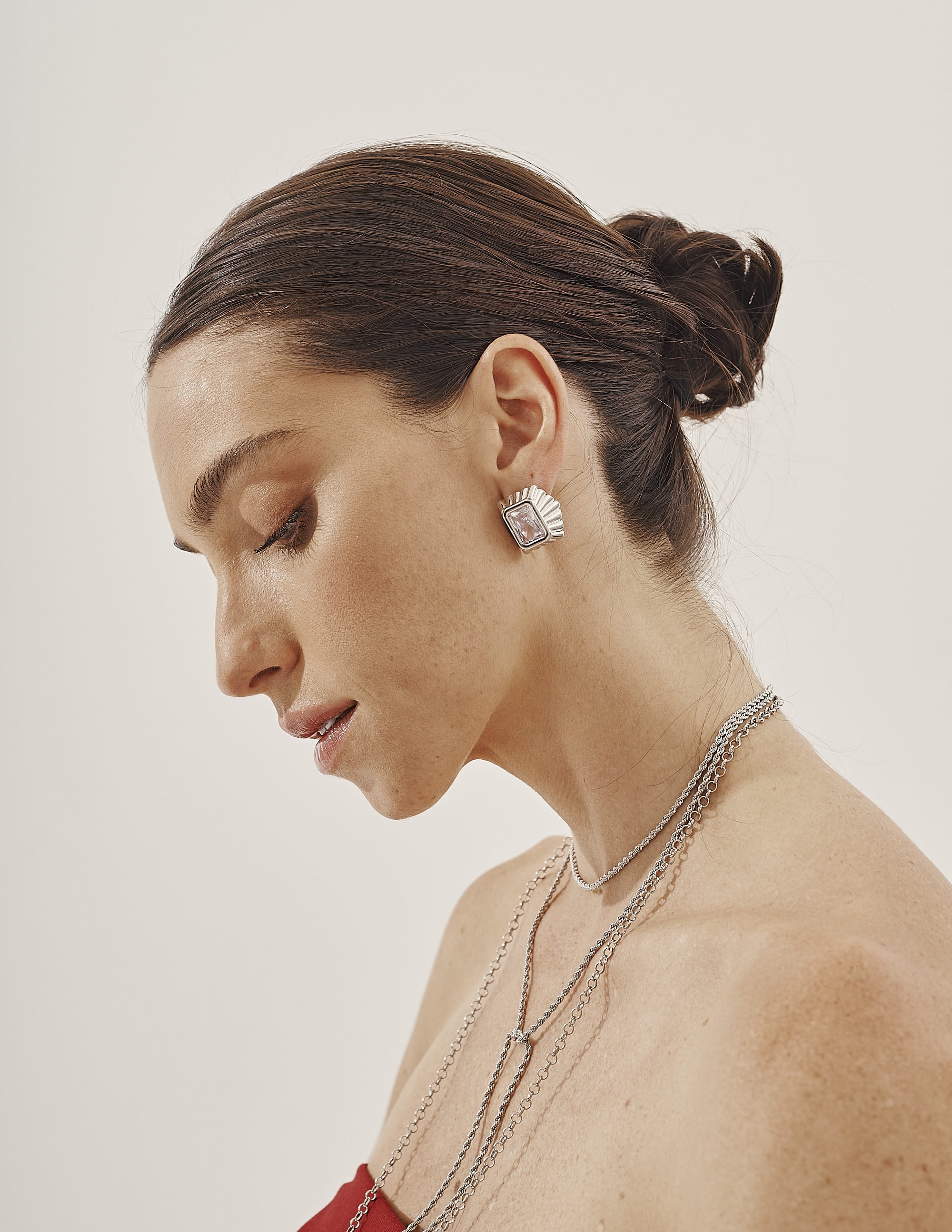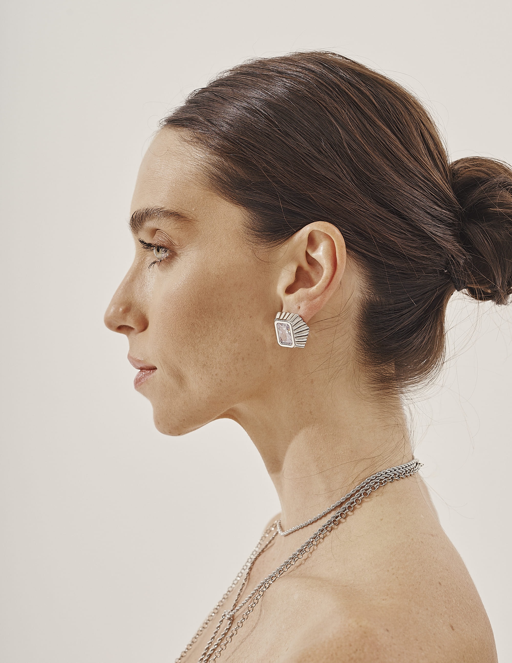 Brinco Bianco com cristal quadrado, elegante e imponente, irradiando brilho e sofisticação em cada detalhe.