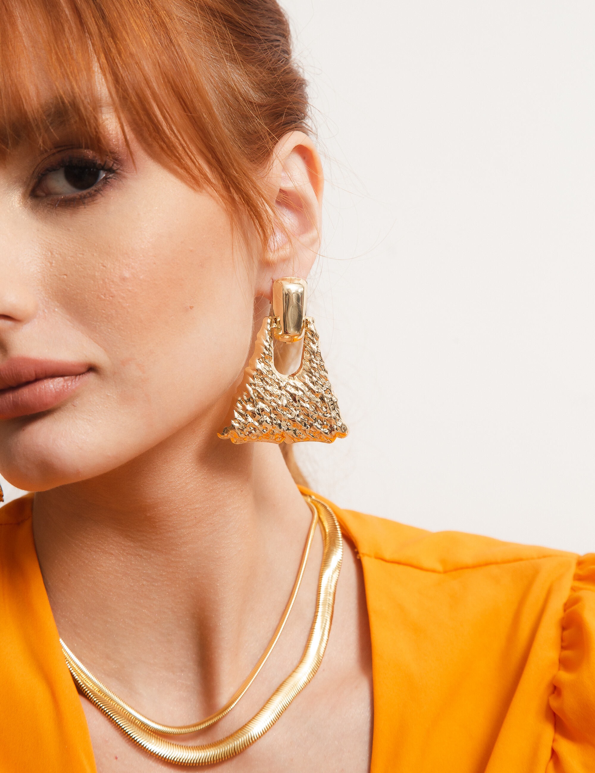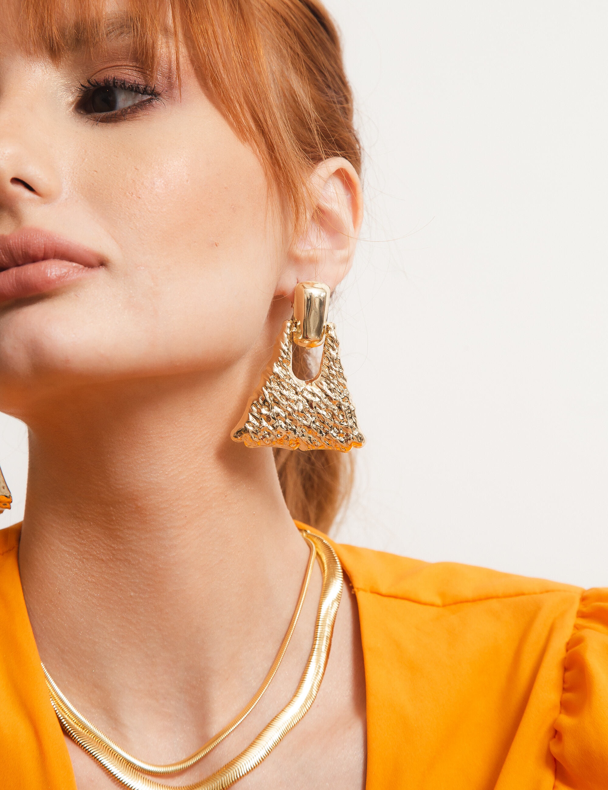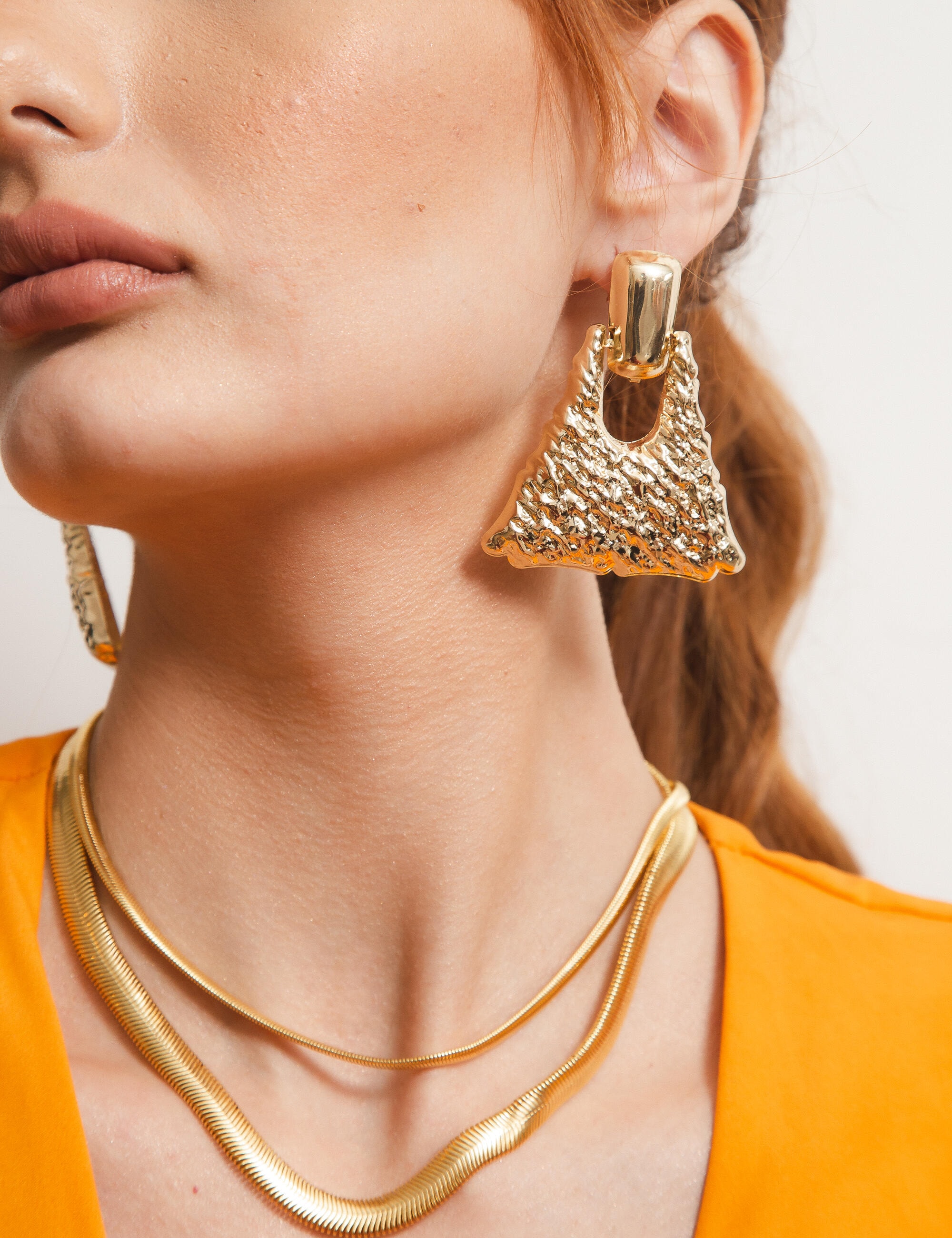 Todos os nossos metais são banhados a ouro, possuem camada protetiva para bijuterias finas e também possuem camada de metal precioso em sua composição. As bijuterias precisam de cuidados, limpe-as com flanela seca e macia, evite contato direto com cosméticos, areia, praia e piscina.