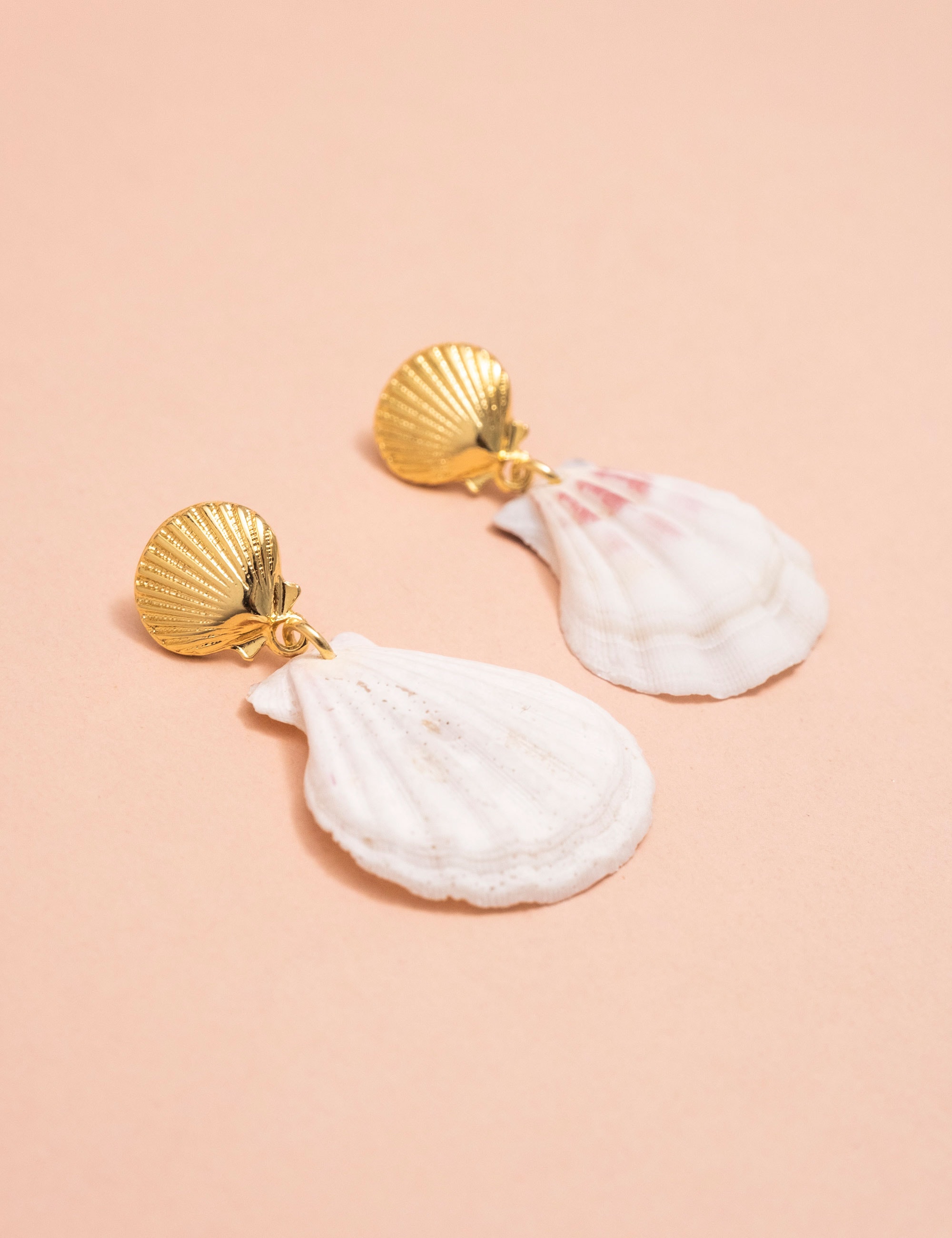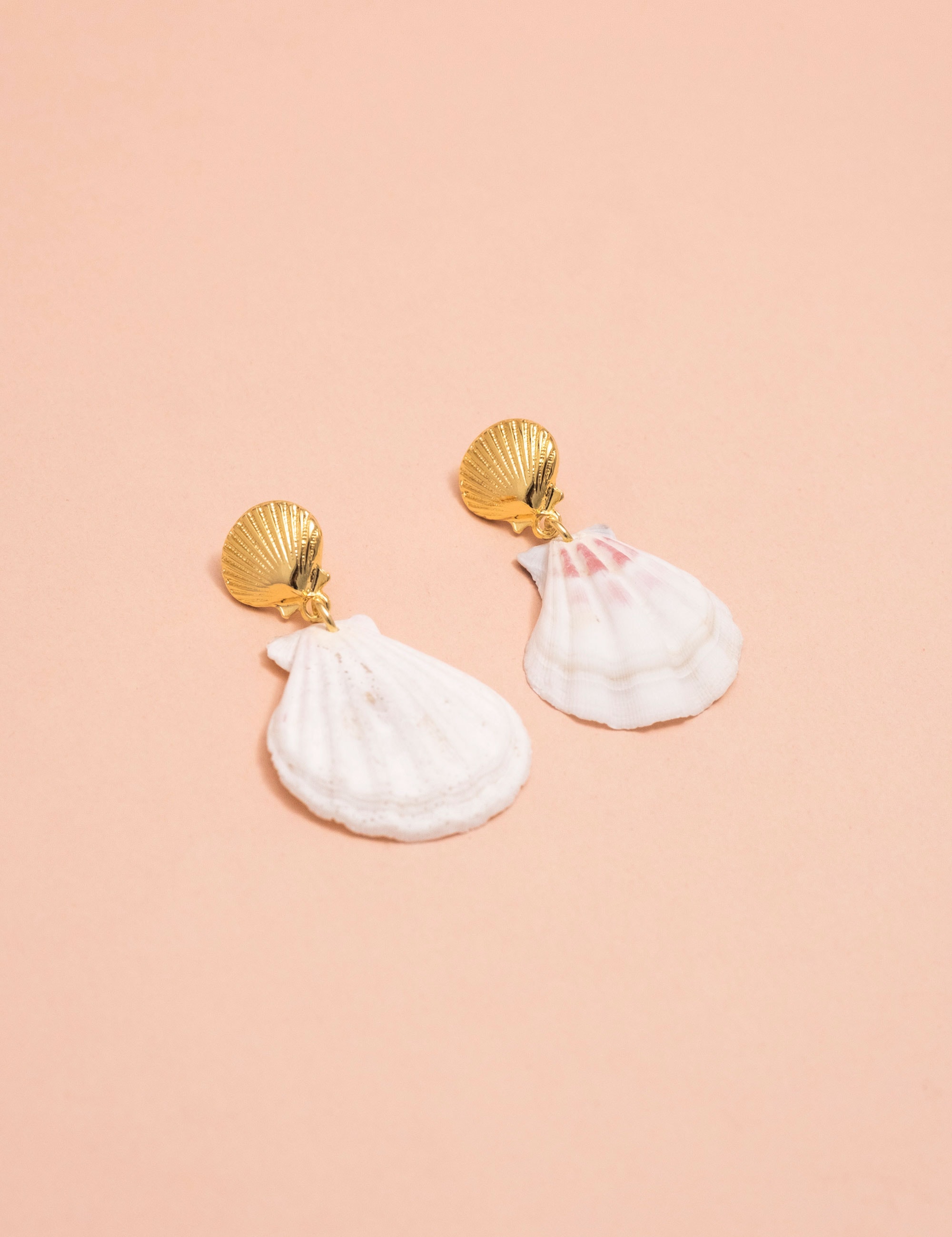 Peça: Brinco de concha natural, banhado a ouro. Aquele brinco que flui em qualquer momento e traz leveza e glamour ao mesmo tempo.