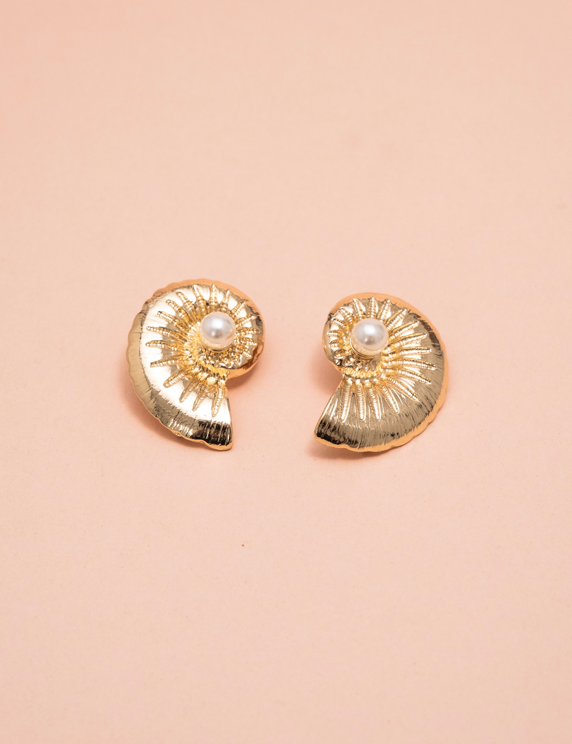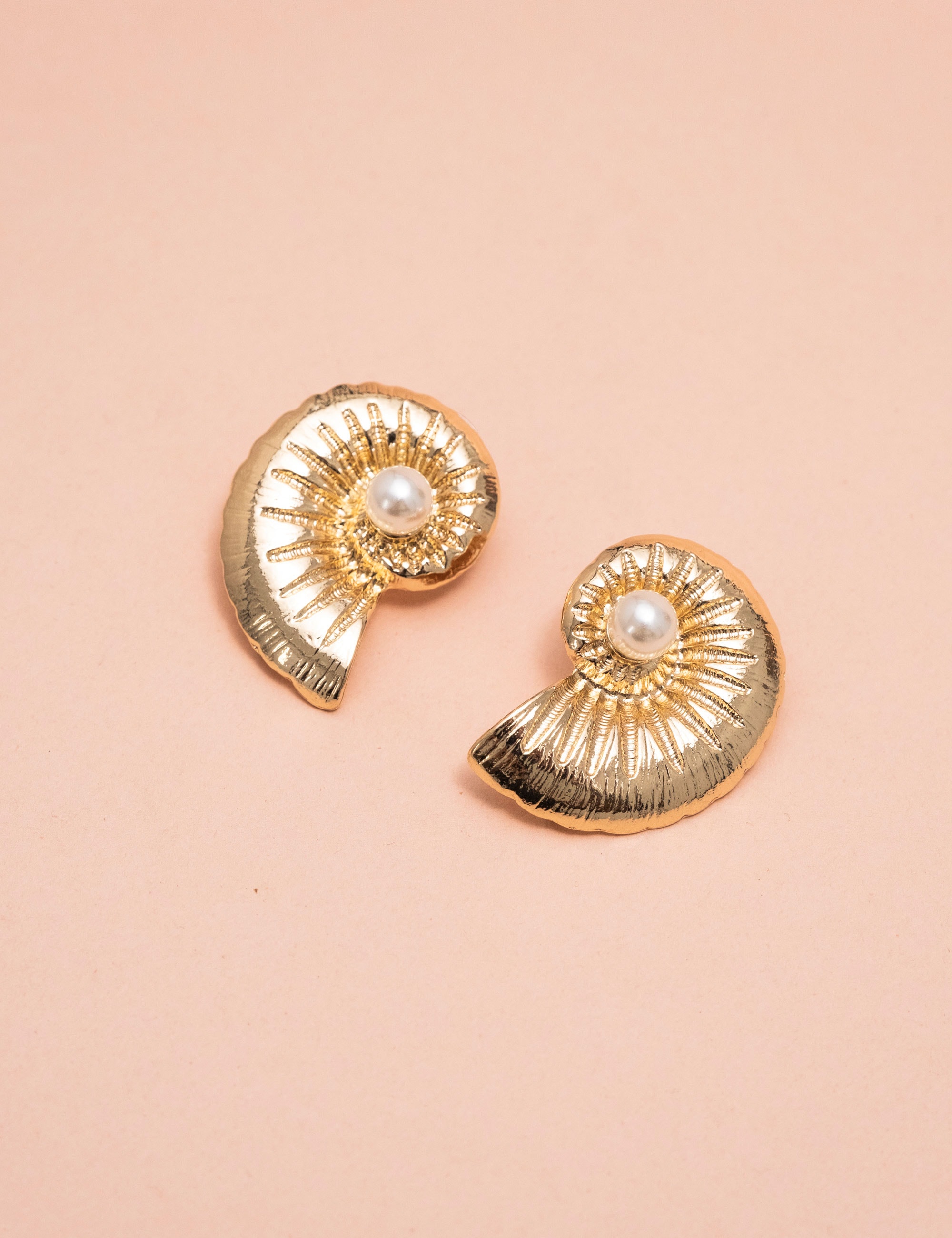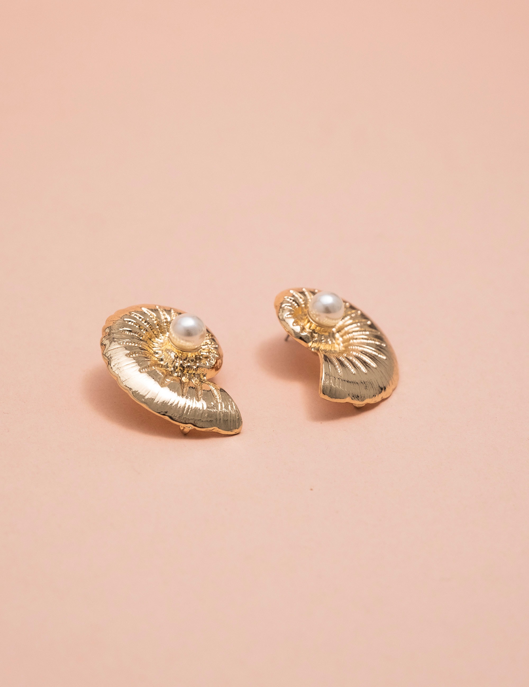 Peça: Brinco banhado a ouro, com detalhe de pérola, em formato de concha. Ideal para dar aquele toque no look.