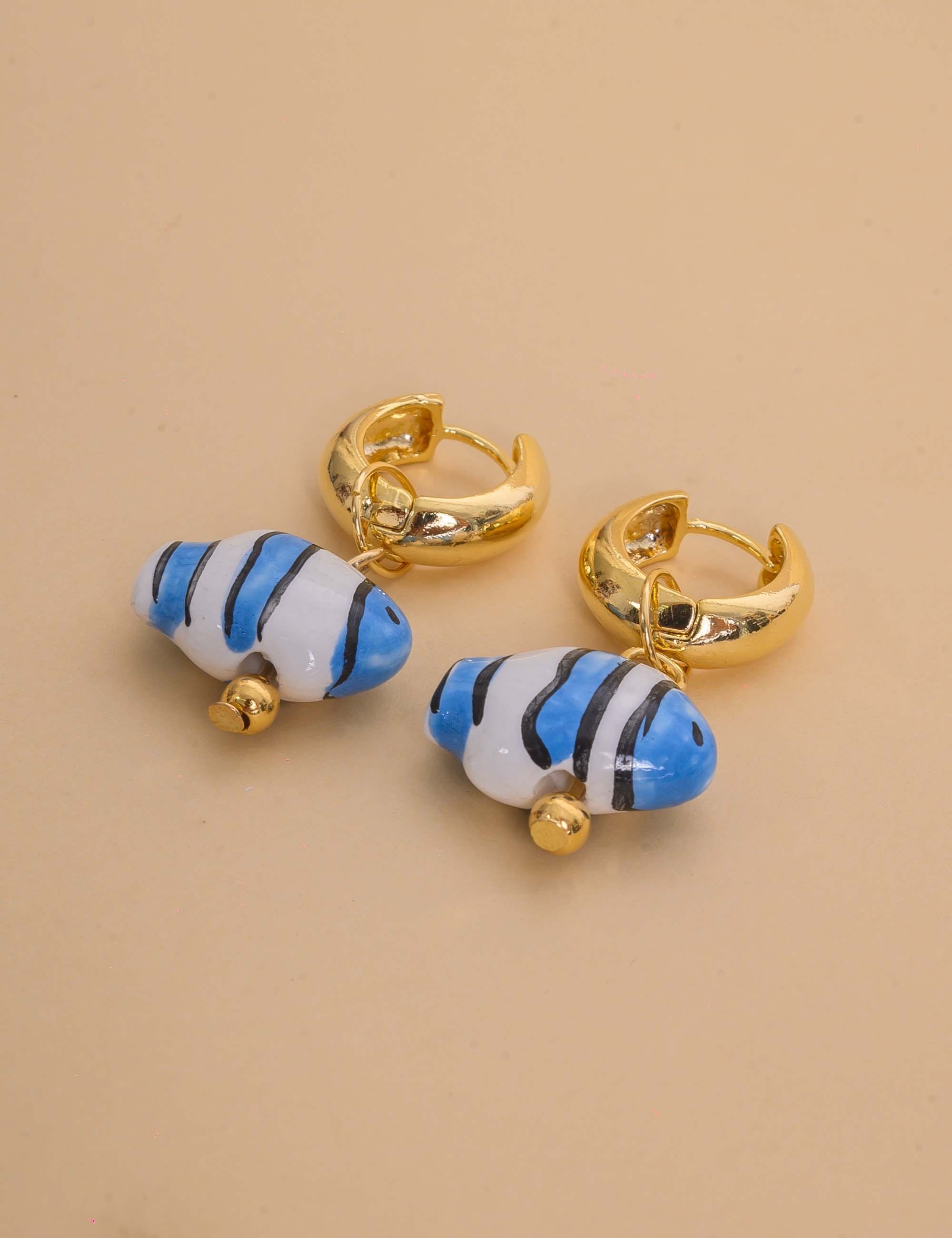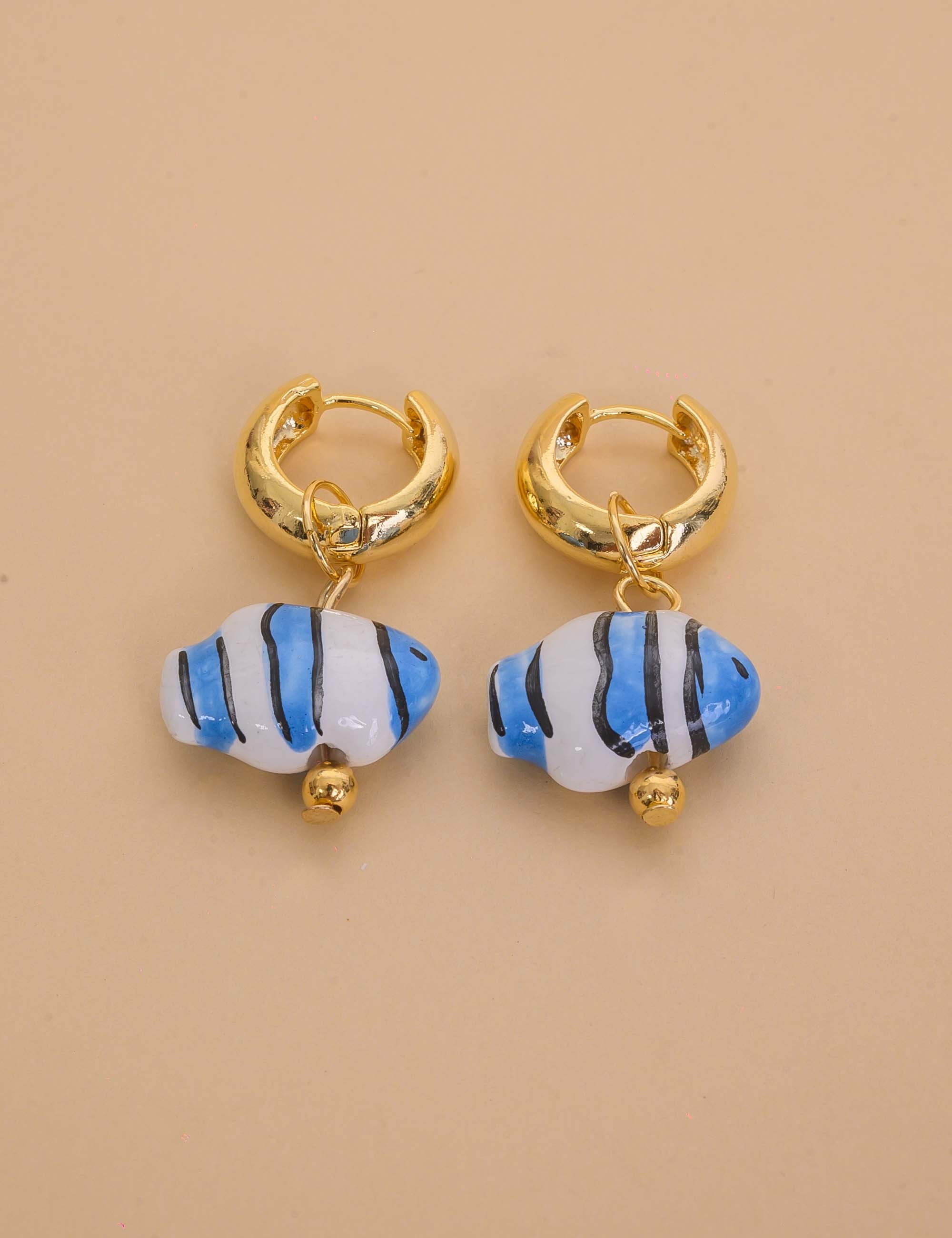 Brinco de argola banhado a ouro, com pingente de resina em formato de peixe. Moderno e elegante, é o toque de destaque perfeito para compor produções com personalidade.