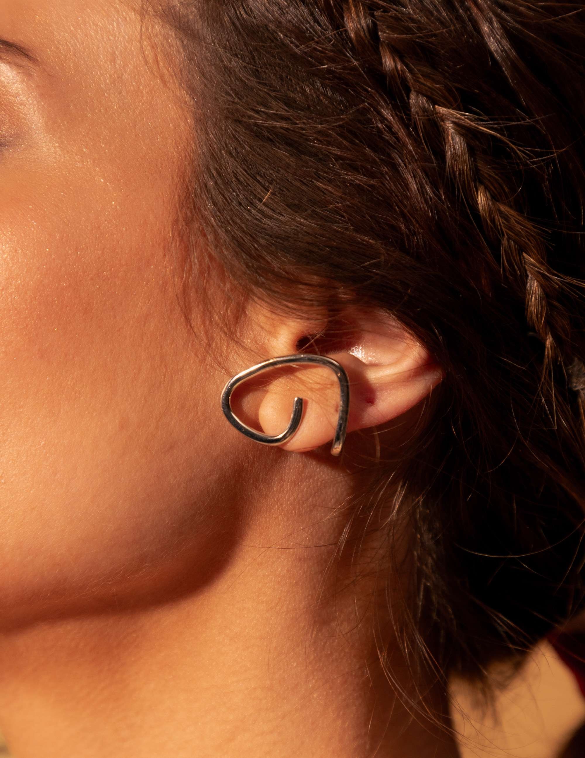 Brinco earcuff com formato orgânico em voltas lisas. Peça de alta fusão, banhado no diamante, verniz e antialérgico. Os Brincos cada vez mais bem ganhando espaço e destaque no mundo dos acessórios, cada vez mais estilosos e imponentes para traduzir o lado imponente que a mulher traz em sua feminilidade.