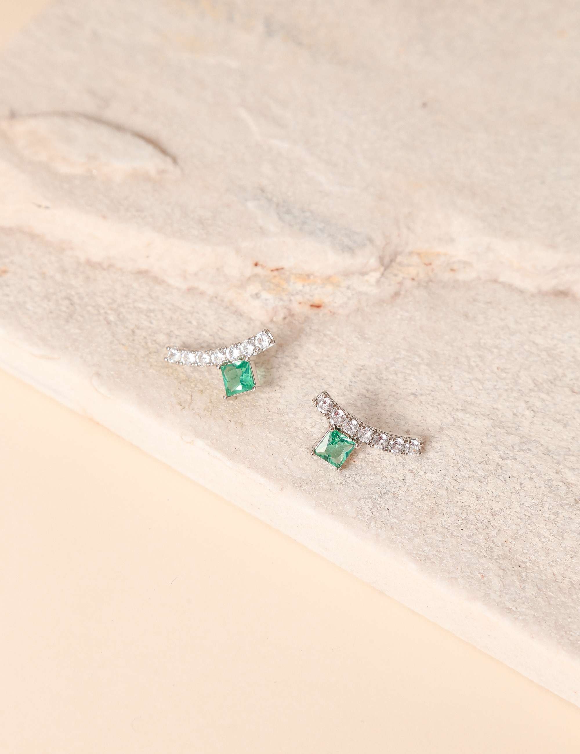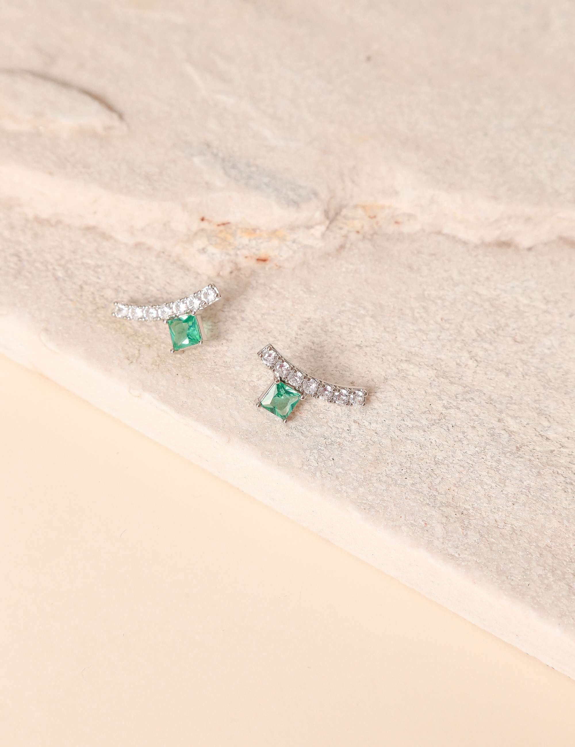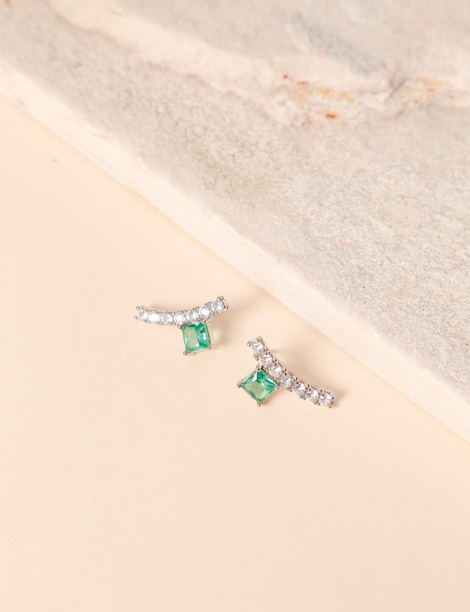 Brinco semelhante ao earhook com detalhes de cristais de zircônia com detalhe de pedra verde de zircônia. Brinco delicado e com detalhes que fazem dele ainda mais especial.