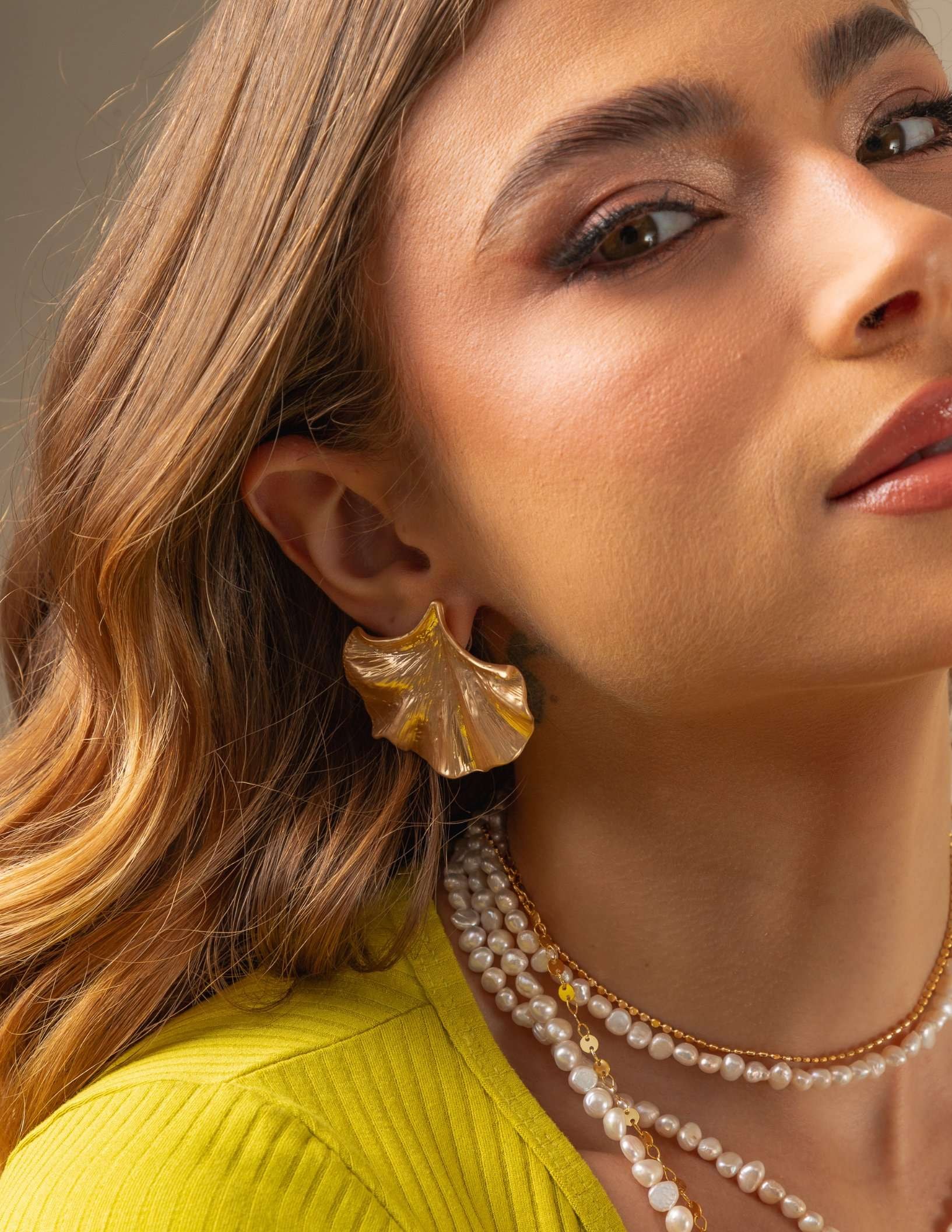 Todos os nossos metais são banhados a ouro, possuem camada protetiva para bijuterias finas e também possuem camada de metal precioso em sua composição. As bijuterias precisam de cuidados, limpe-as com flanela seca e macia, evite contato direto com cosméticos, areia, praia e piscina.