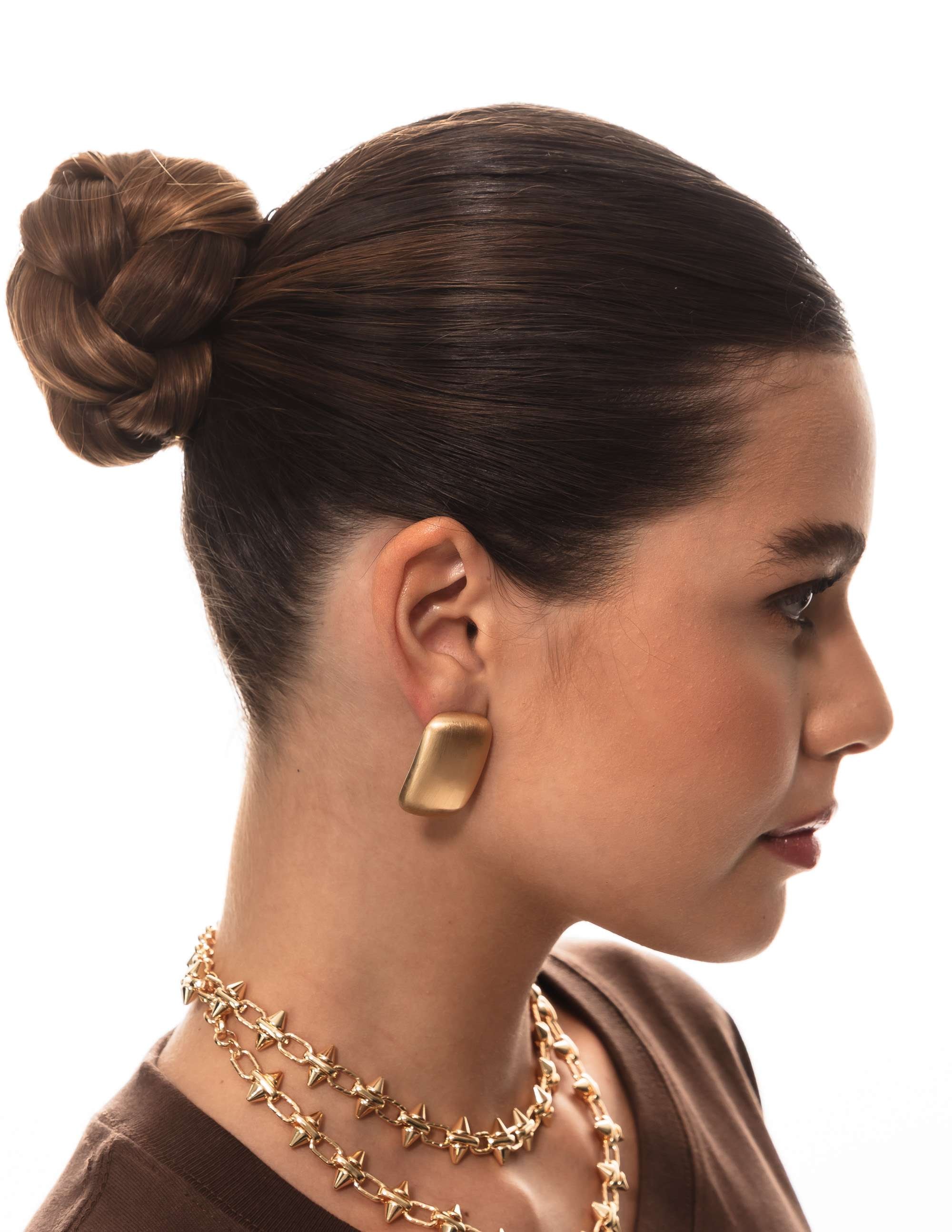 Peça: Brinco ouro fosco com formato retangular , design elegante Ideal para adicionar um toque de estilo ao look.