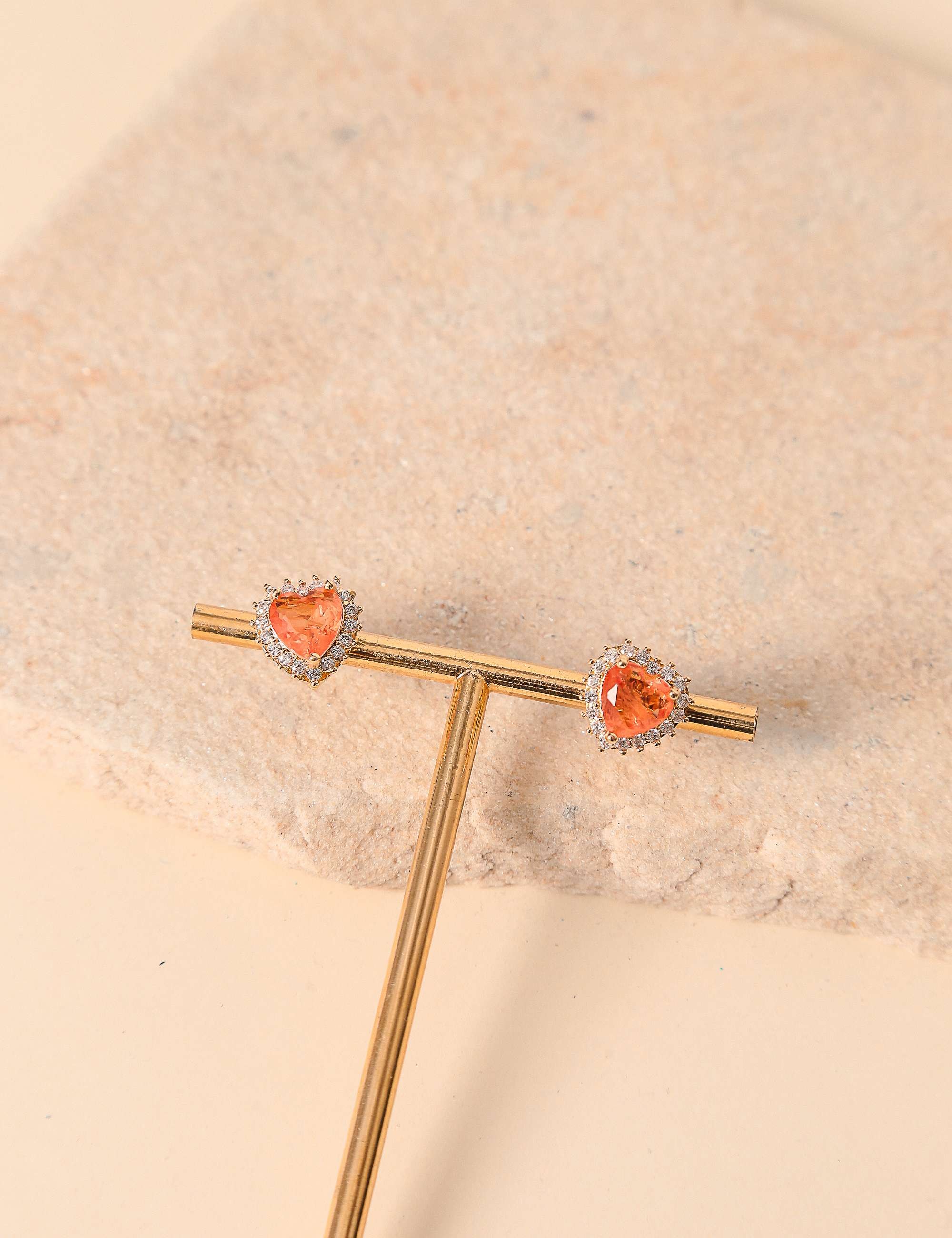 Brinco em formato de coração com pedra fusion e sua lateral cravejado com cristal de zircônia. Brinco delicado que traz cor, ideal para misturar com outros modelos de brincos para quem tem mais furos.