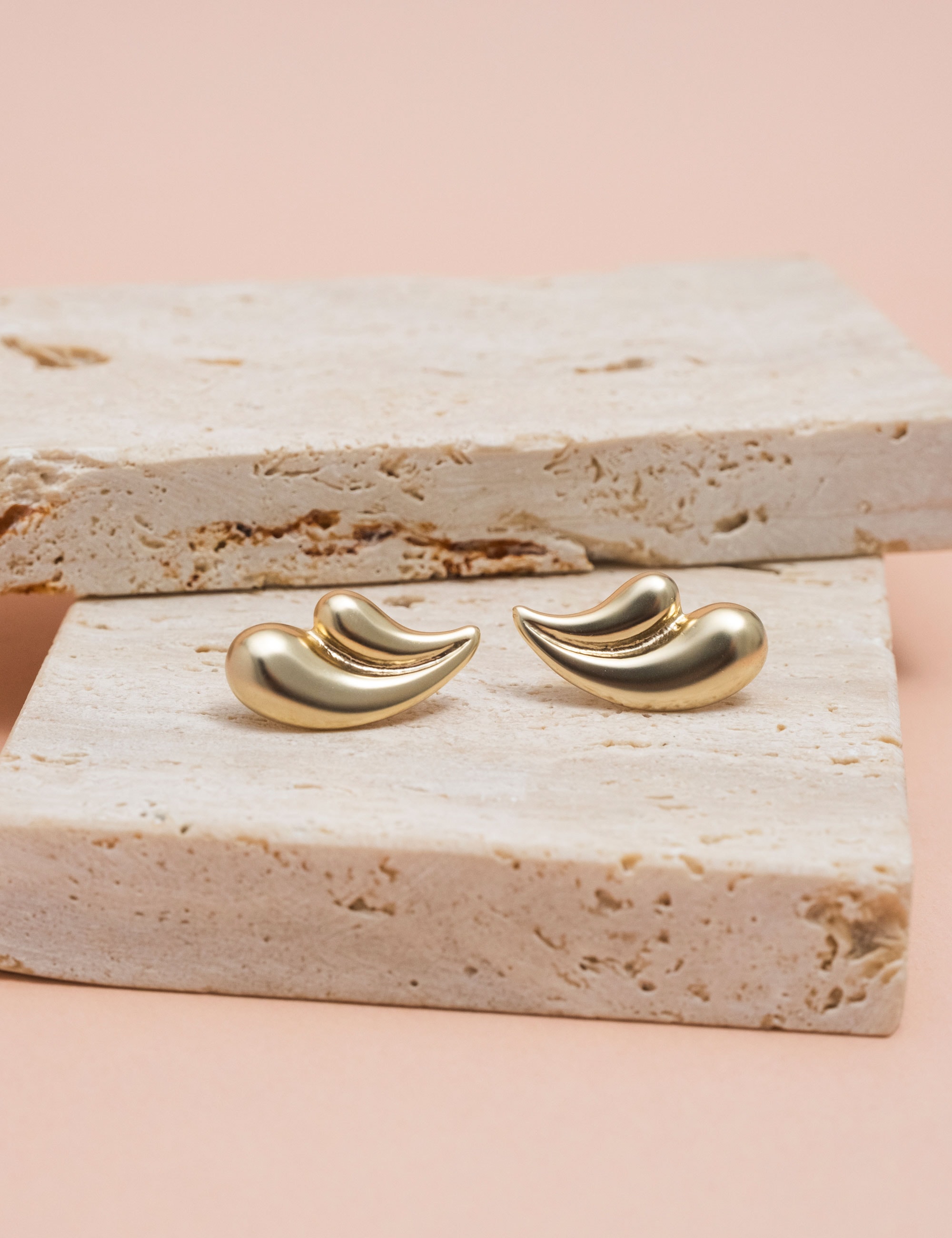 Peça: Brinco banhado a ourro, no banho ouro fosco em formato de gota dupla. Peça que traz estilo e conceito para o seu look.