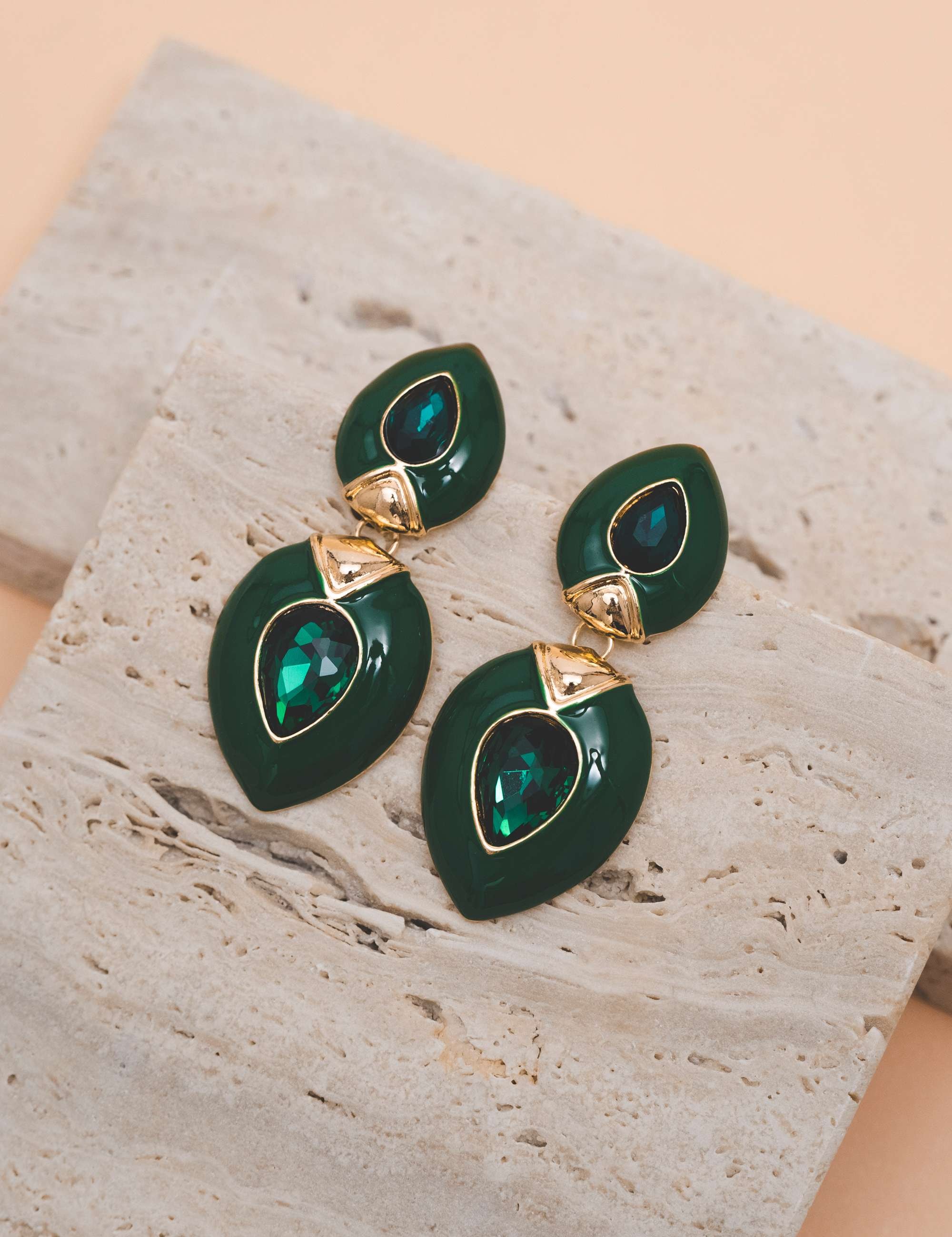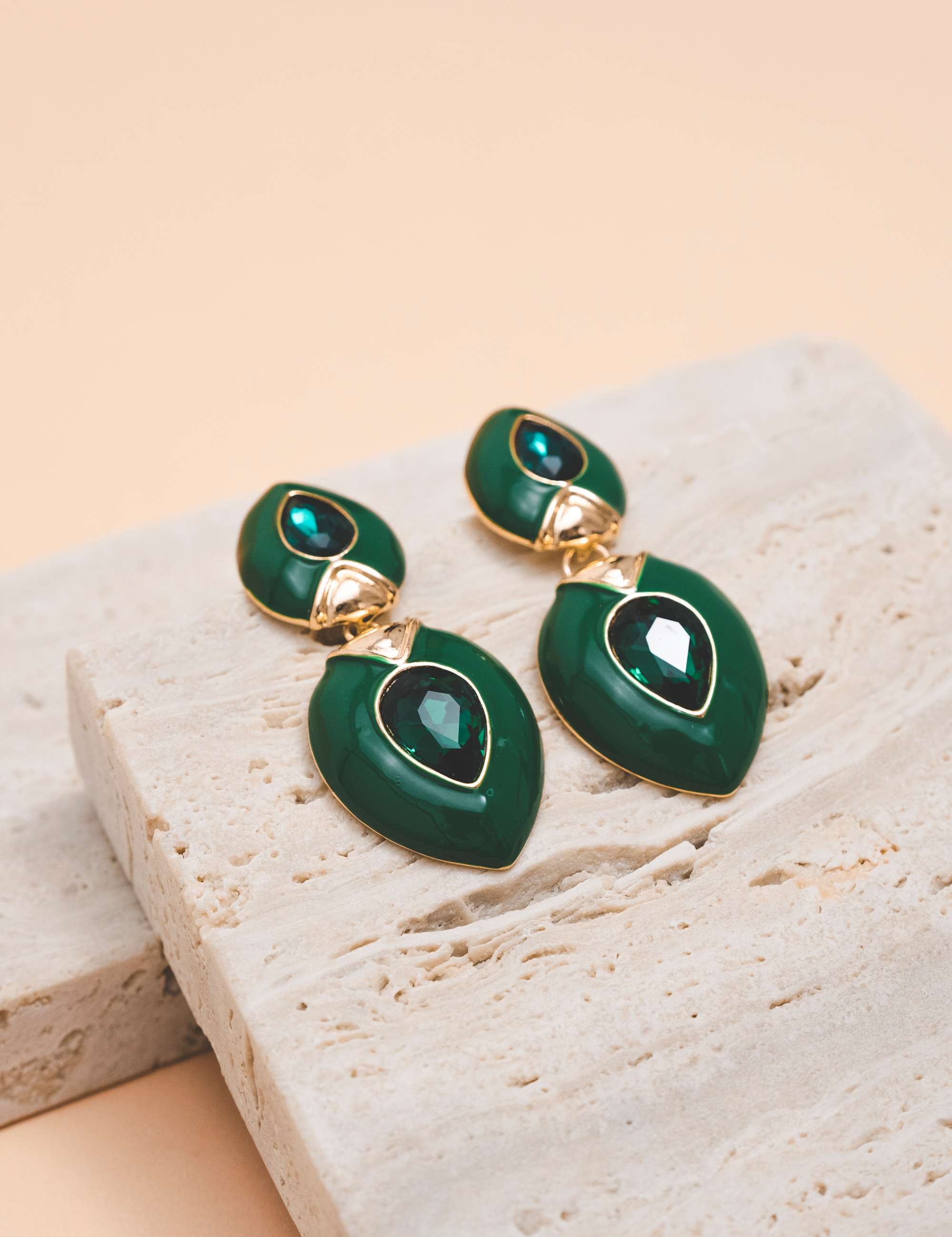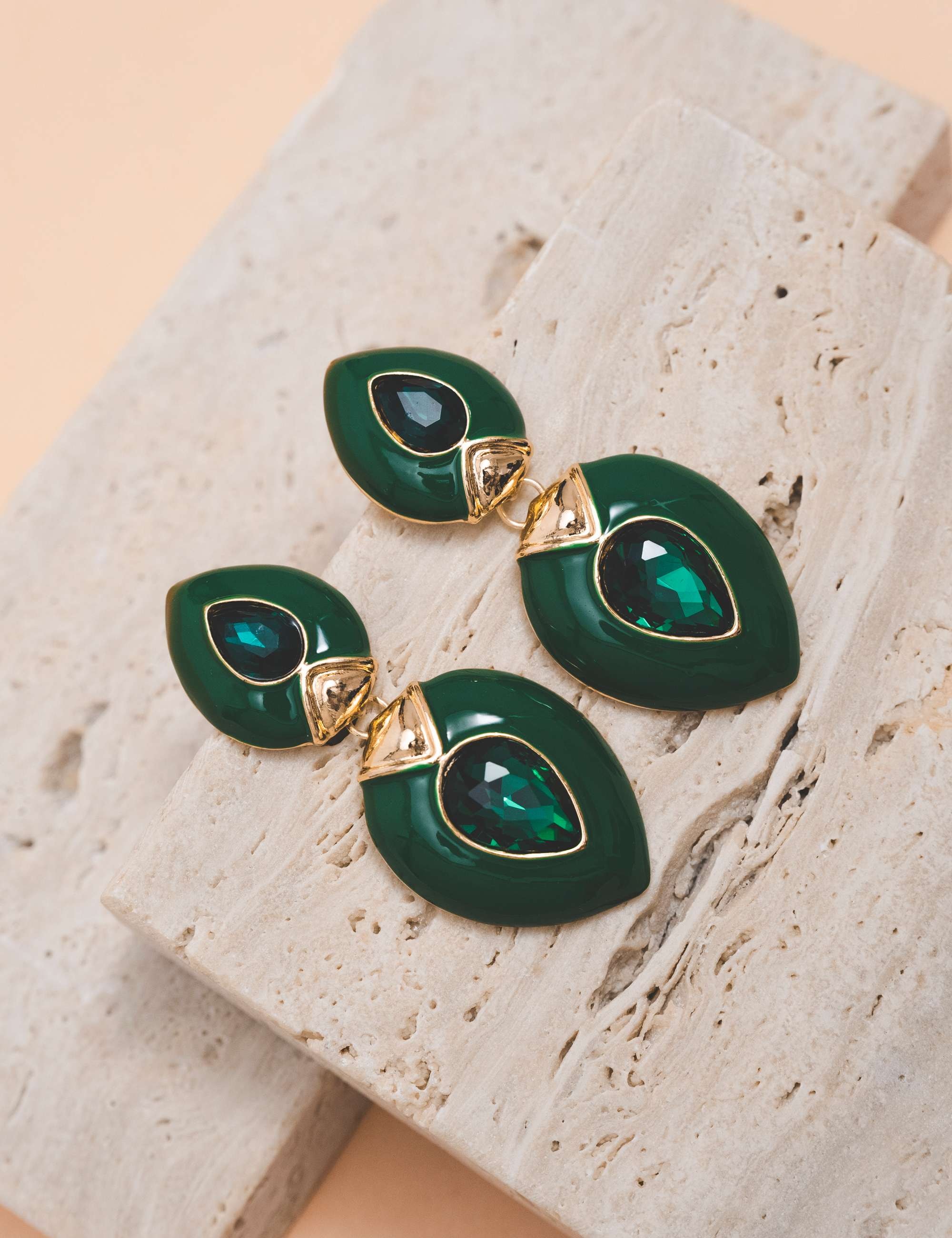 Peça: Brinco de base em formato menor de gota esmaltada e cristal, com pêndulo em gota média esmaltada. Acessórios esmaltados cada vez mais vem ganhando espaço nos looks clássicos e fashionistas.