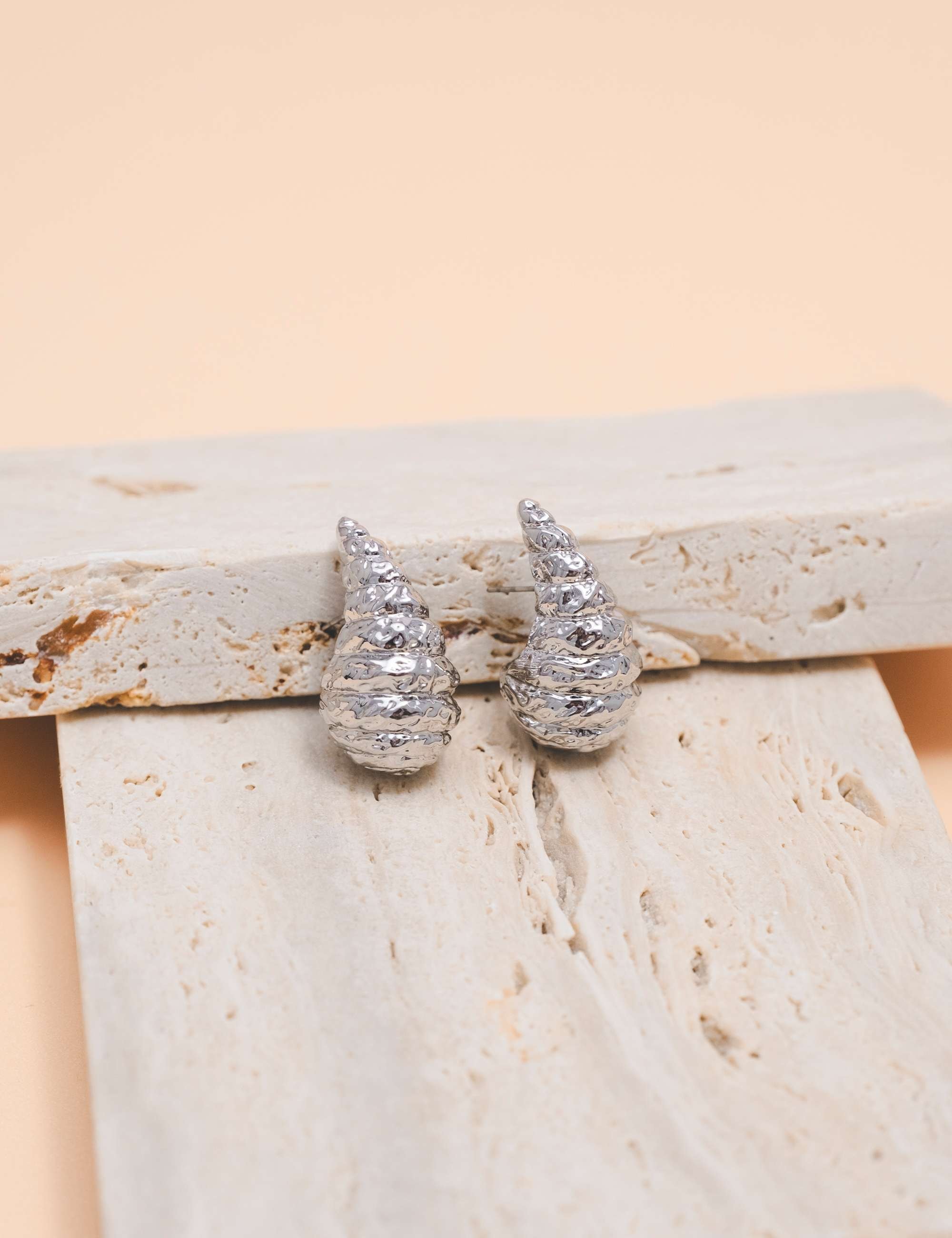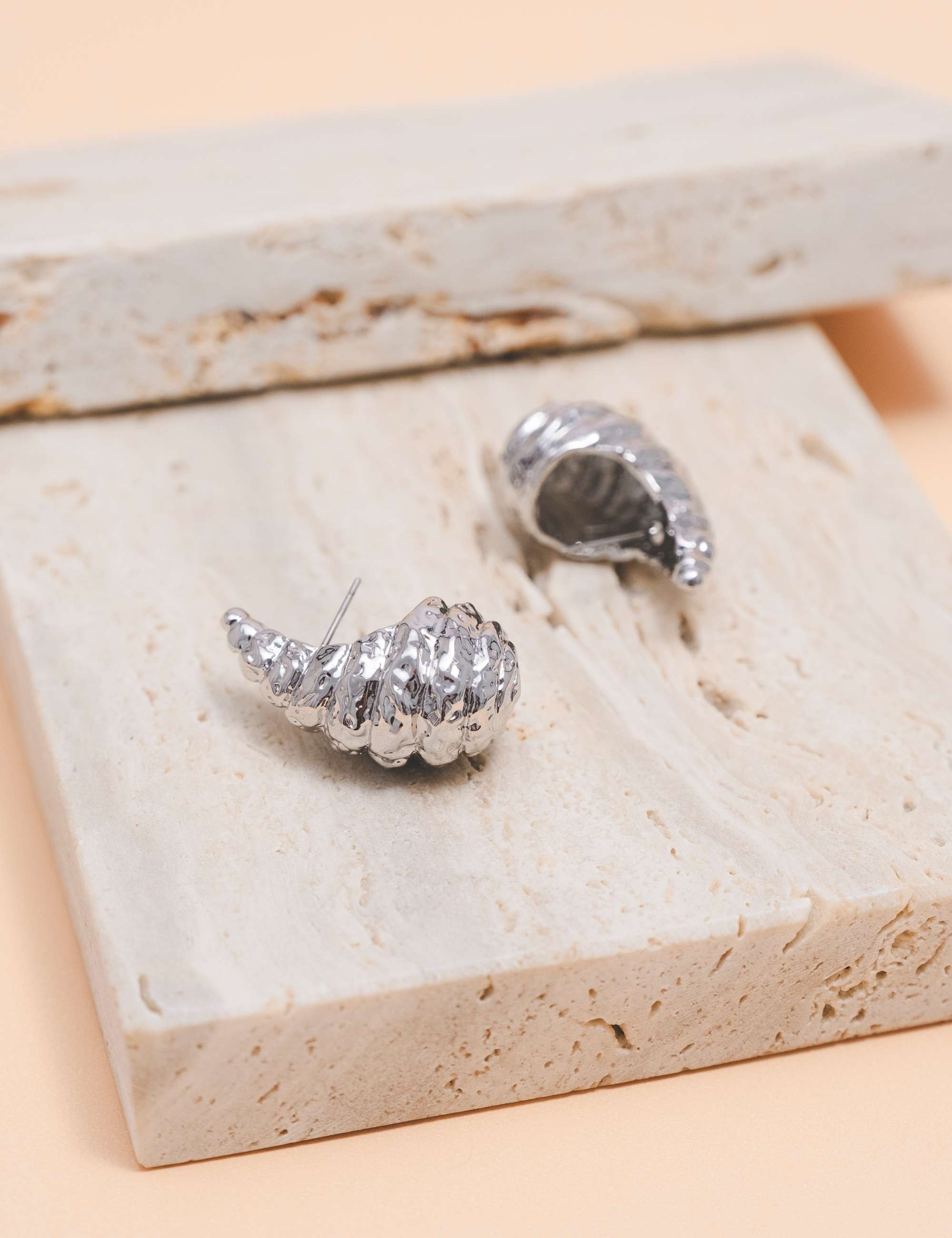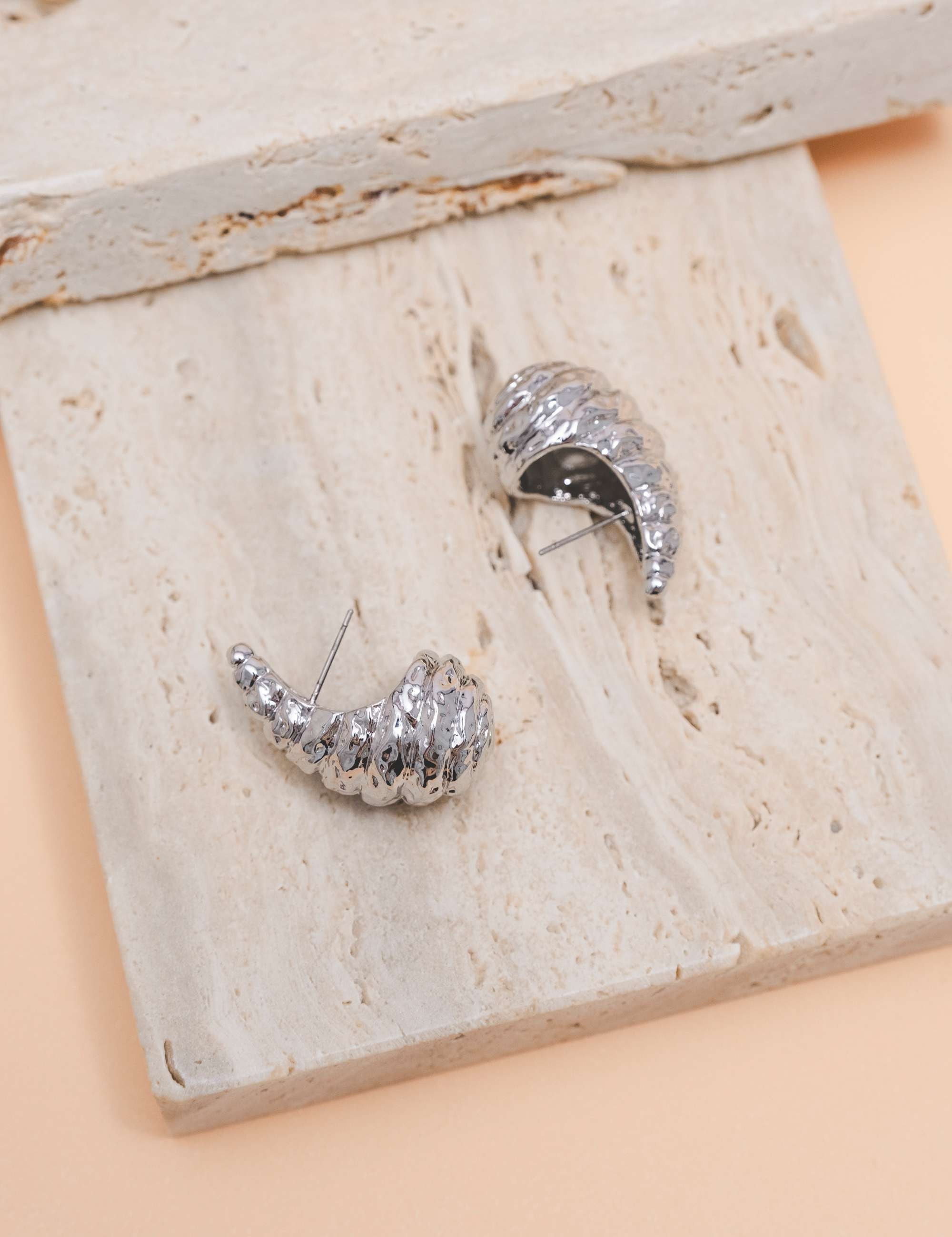 Peça: Brinco alta fusão, com formato de vírgula oco e texturizado.