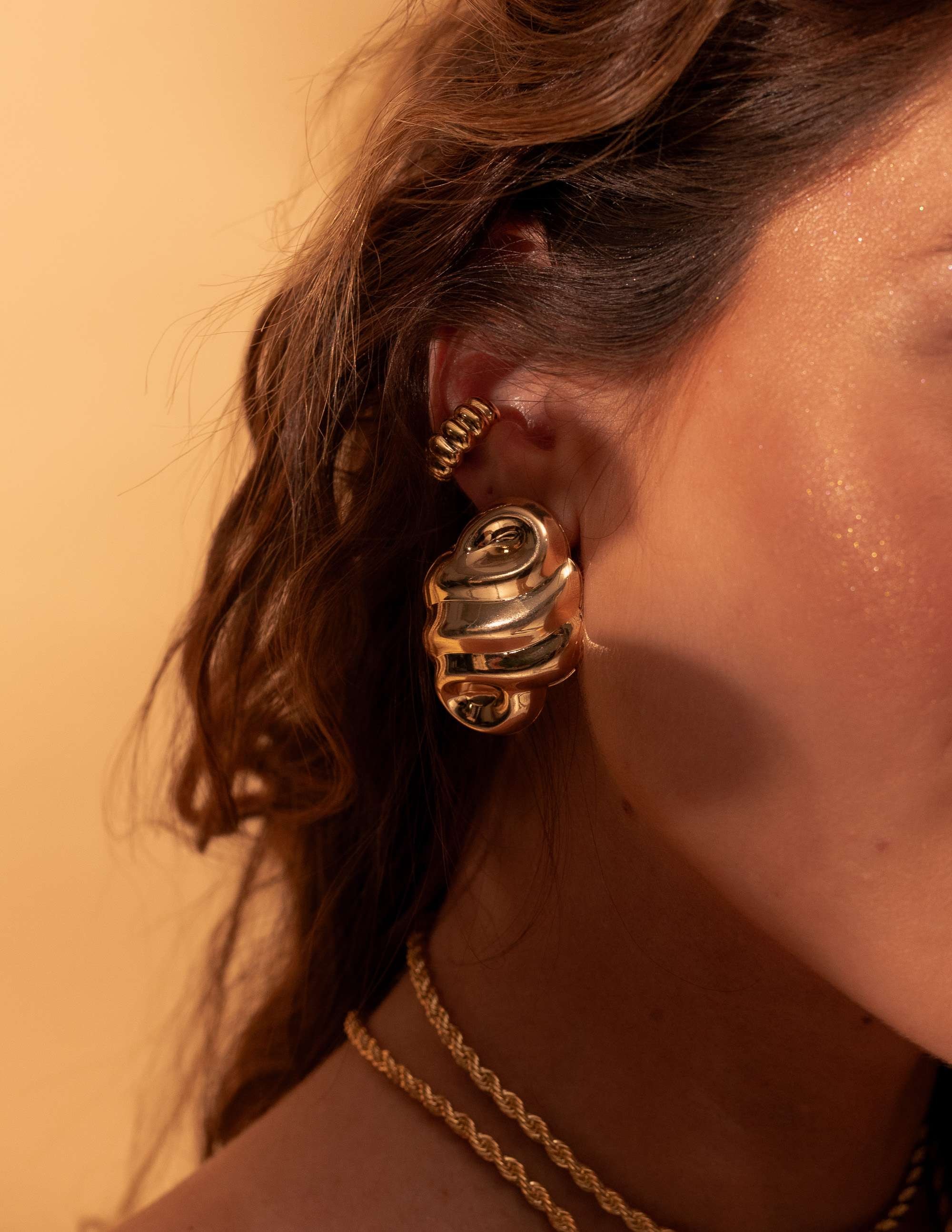 Todos os nossos metais são banhados a ouro, possuem camada protetiva para bijuterias finas e também possuem camada de metal precioso em sua composição. As bijuterias precisam de cuidados, limpe-as com flanela seca e macia, evite contato direto com cosméticos, areia, praia e piscina.