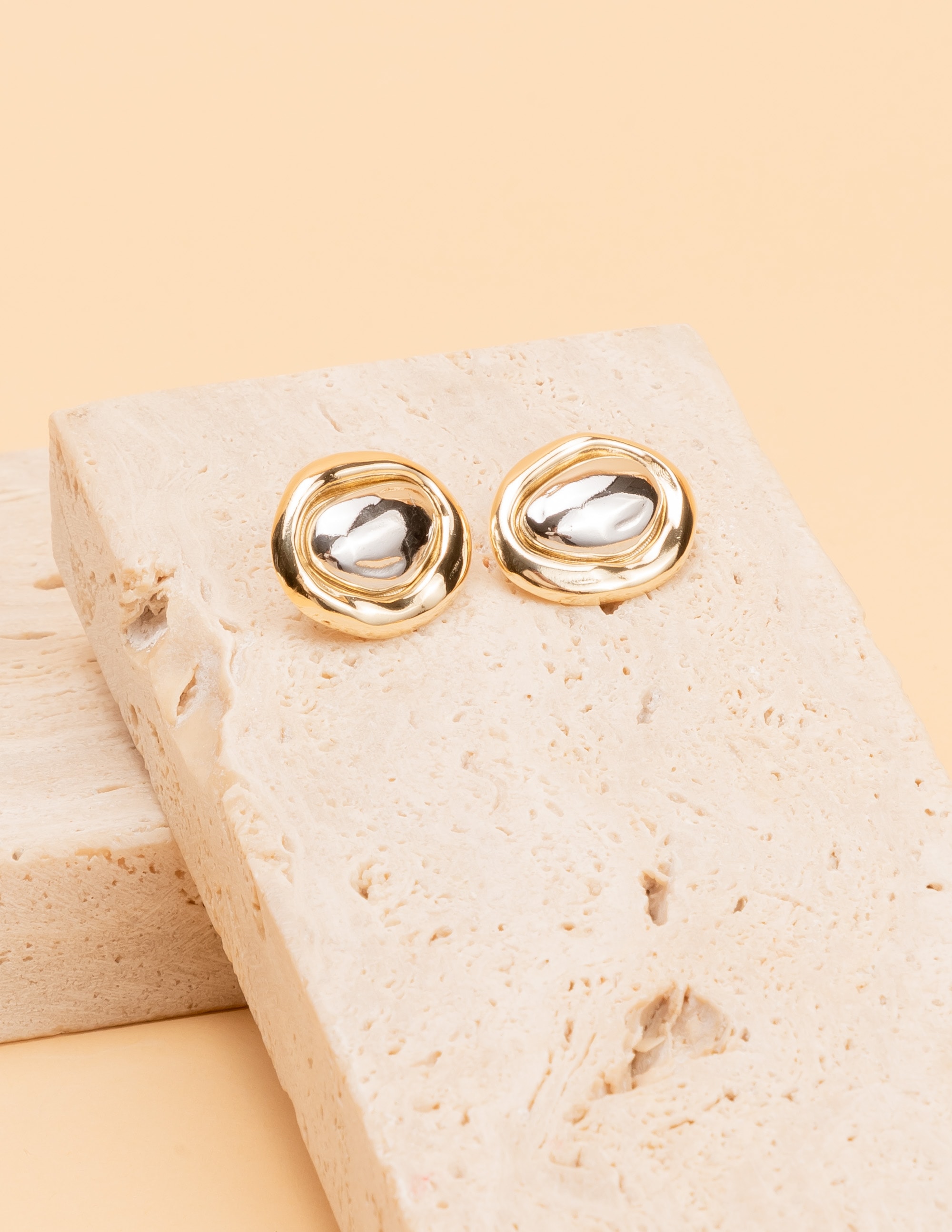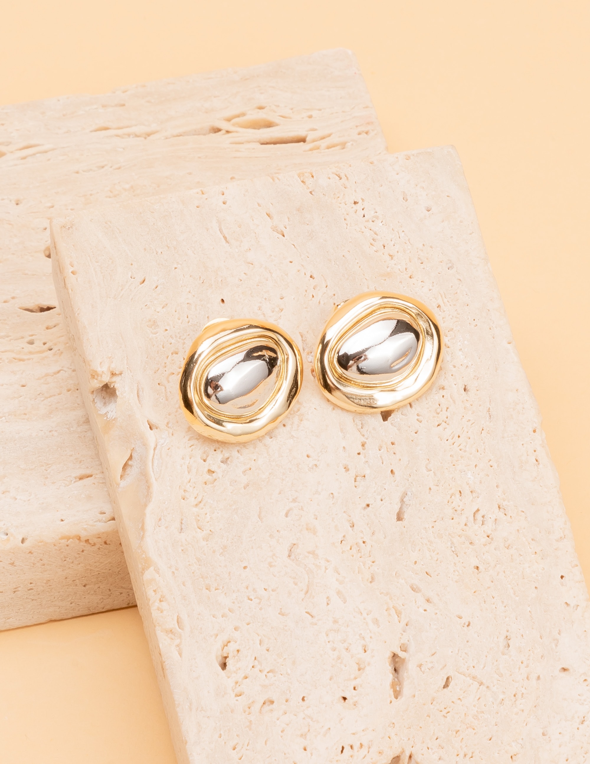 Peça: Brinco base, alta fusão. Formato orgânico vazado oval, com detalhe no meio em banho Bianco polido.