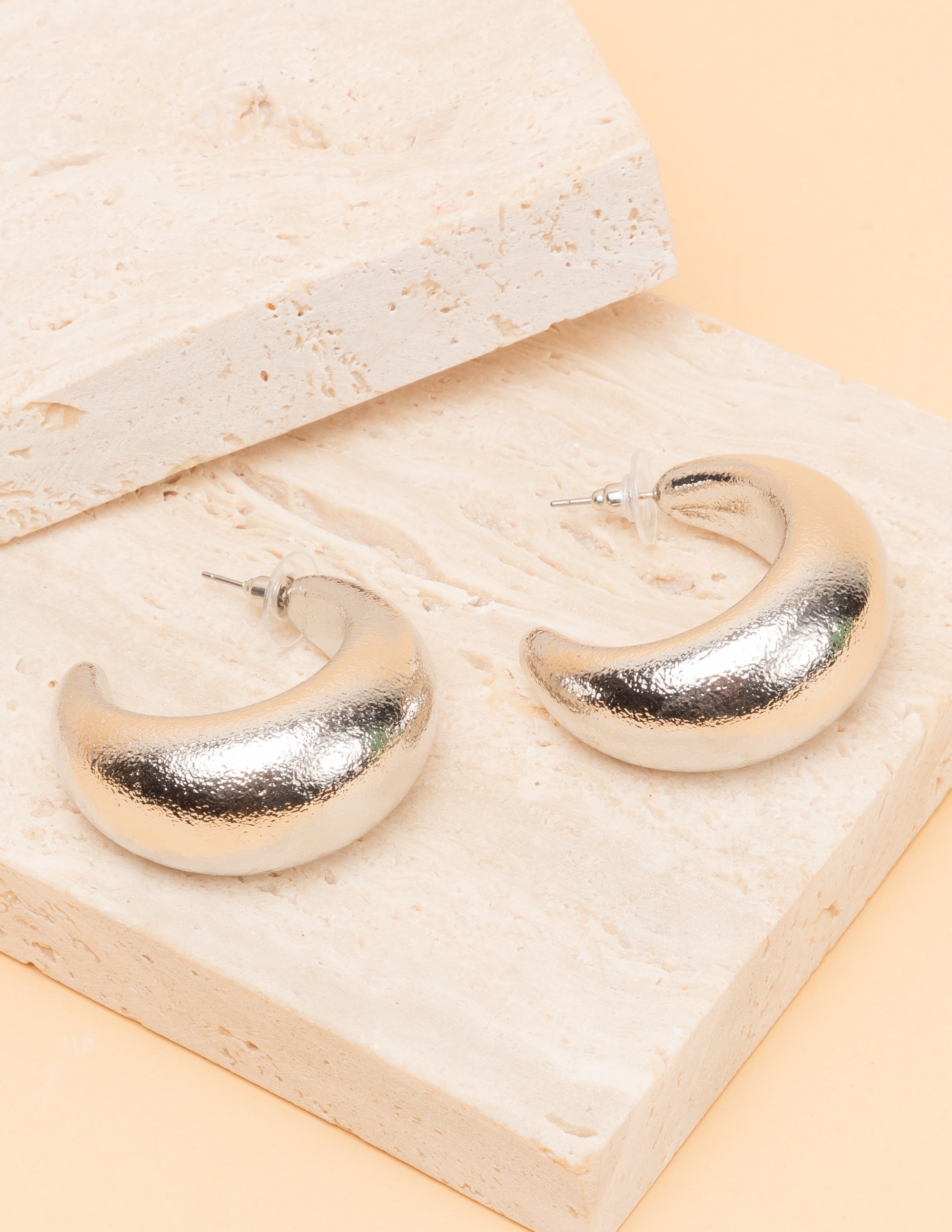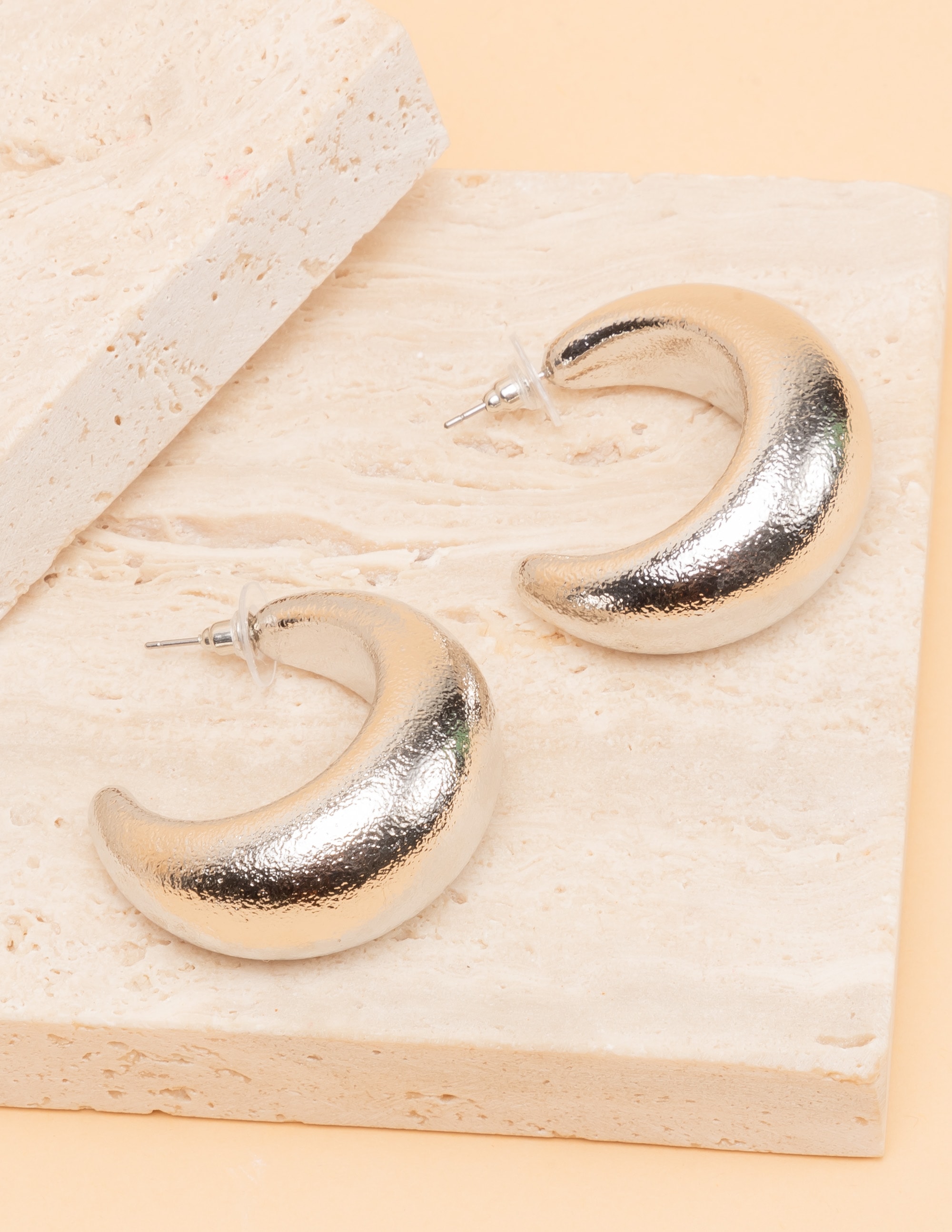 Brinco meia lua abaulado e texturizado. Peça resina metalizada, banhado no diamante, verniz e antialérgico, pino aço cirúrgico. Lua é um símbolo quase universal de feminilidade, passividade, fertilidade, periodicidade e renovação. Enquanto espelho da luz do sol, a Lua atravessa as suas quatro fases visíveis para a Terra e, neste contexto, é sinónimo de transformação e evolução, pois o seu movimento é de um eterno crescimento.