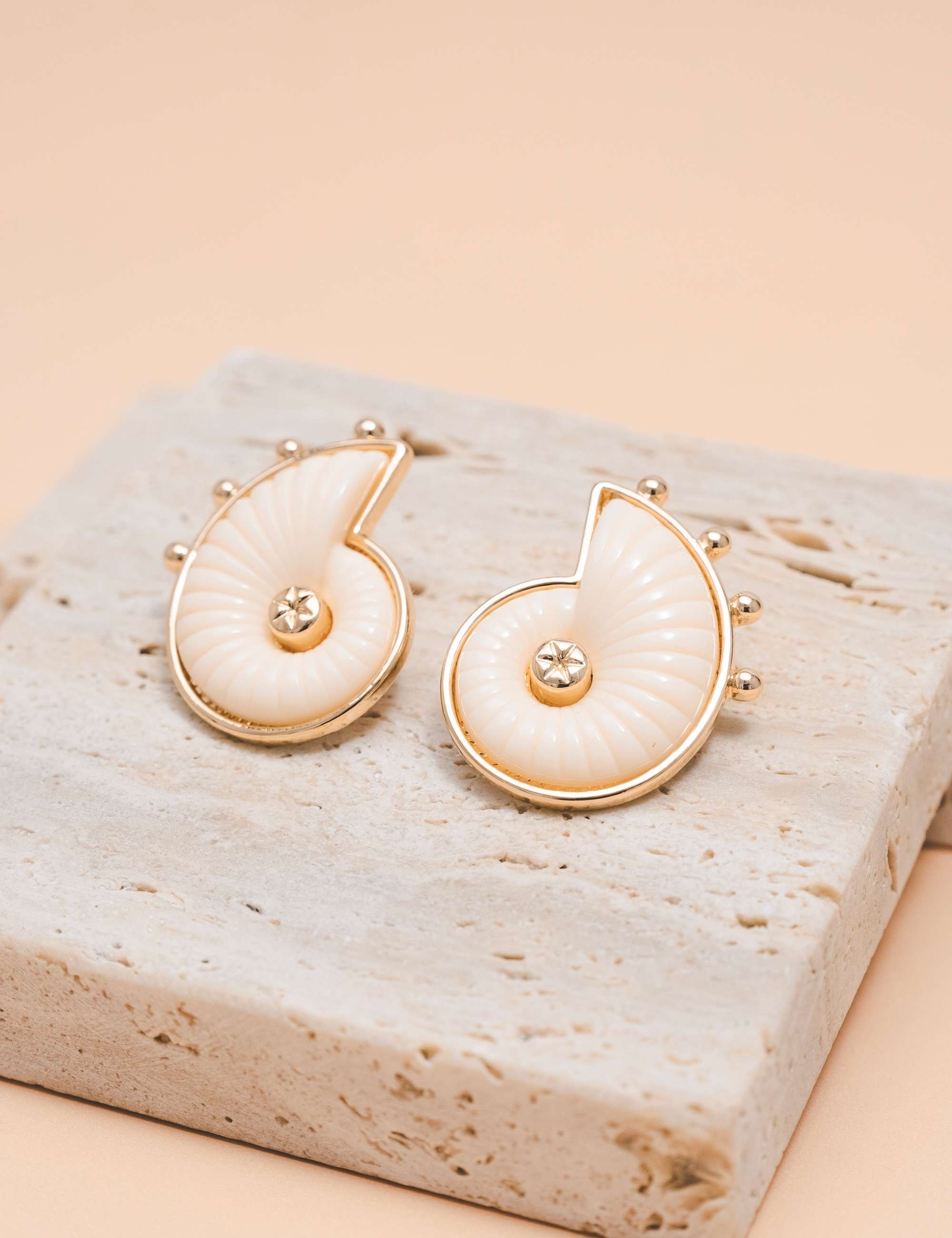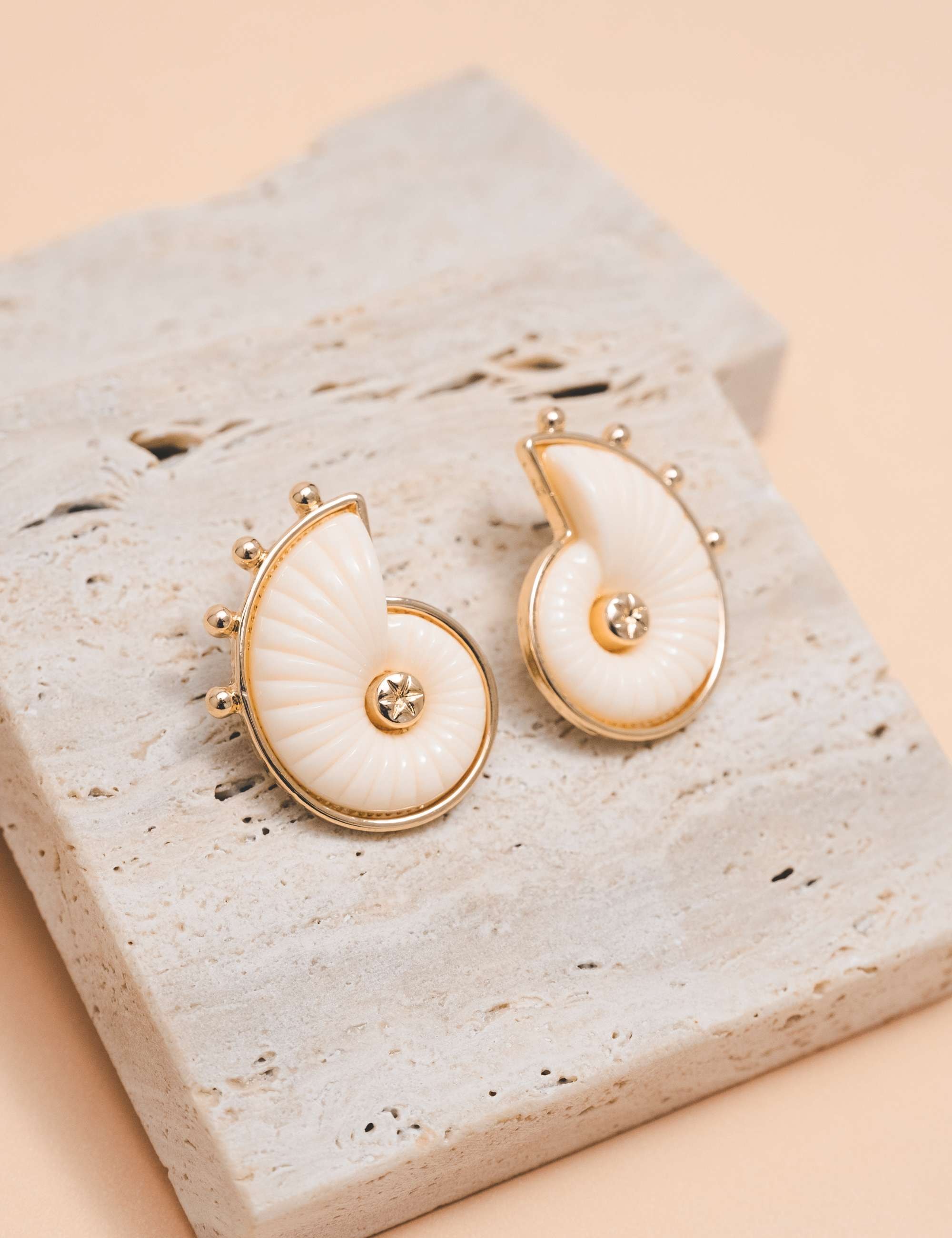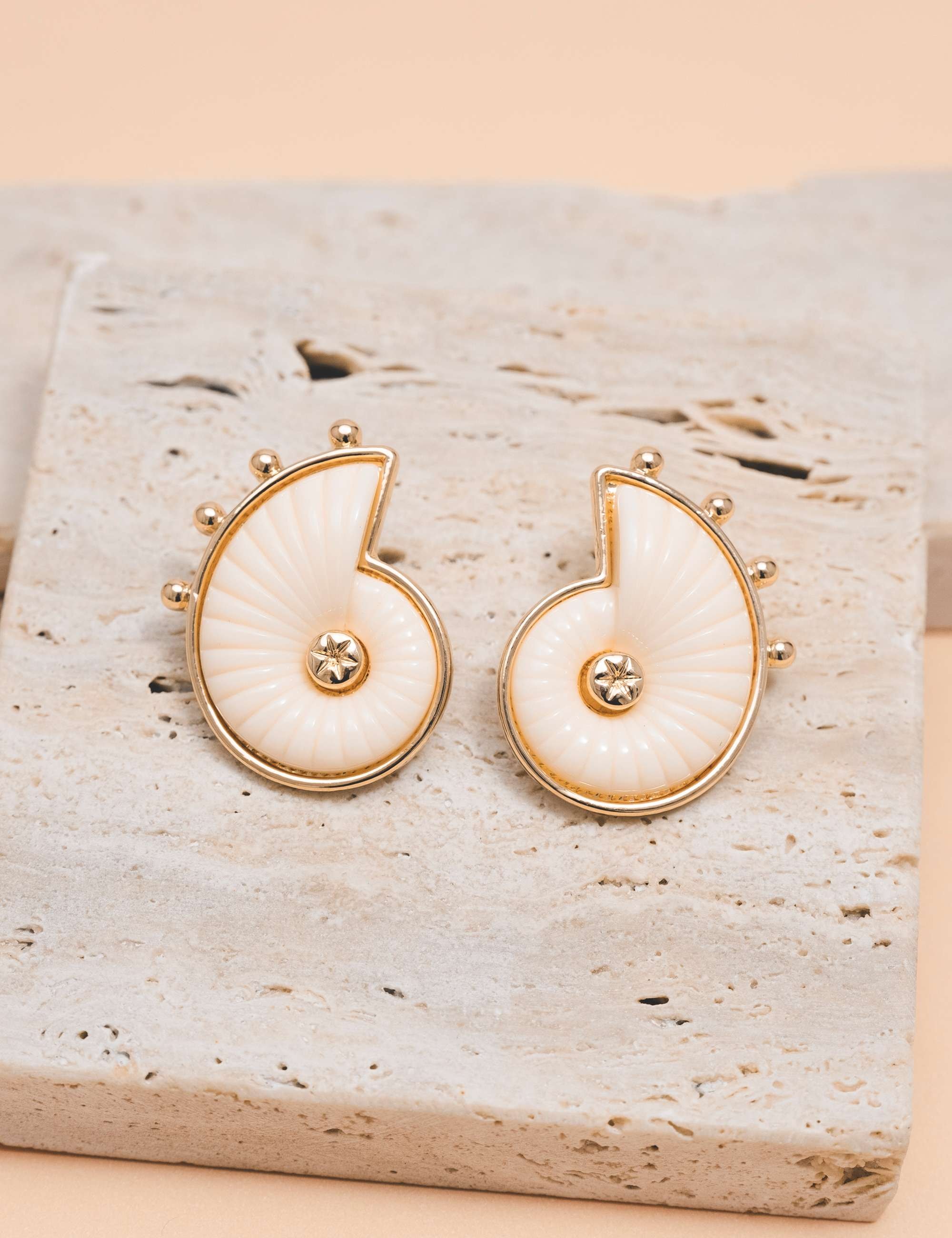 Peça: Brinco esmaltado em formato de caracol e detalhes de texturas no banho de ouro. Ideal para elevar o seu visual com um toque encantador e sofisticado.