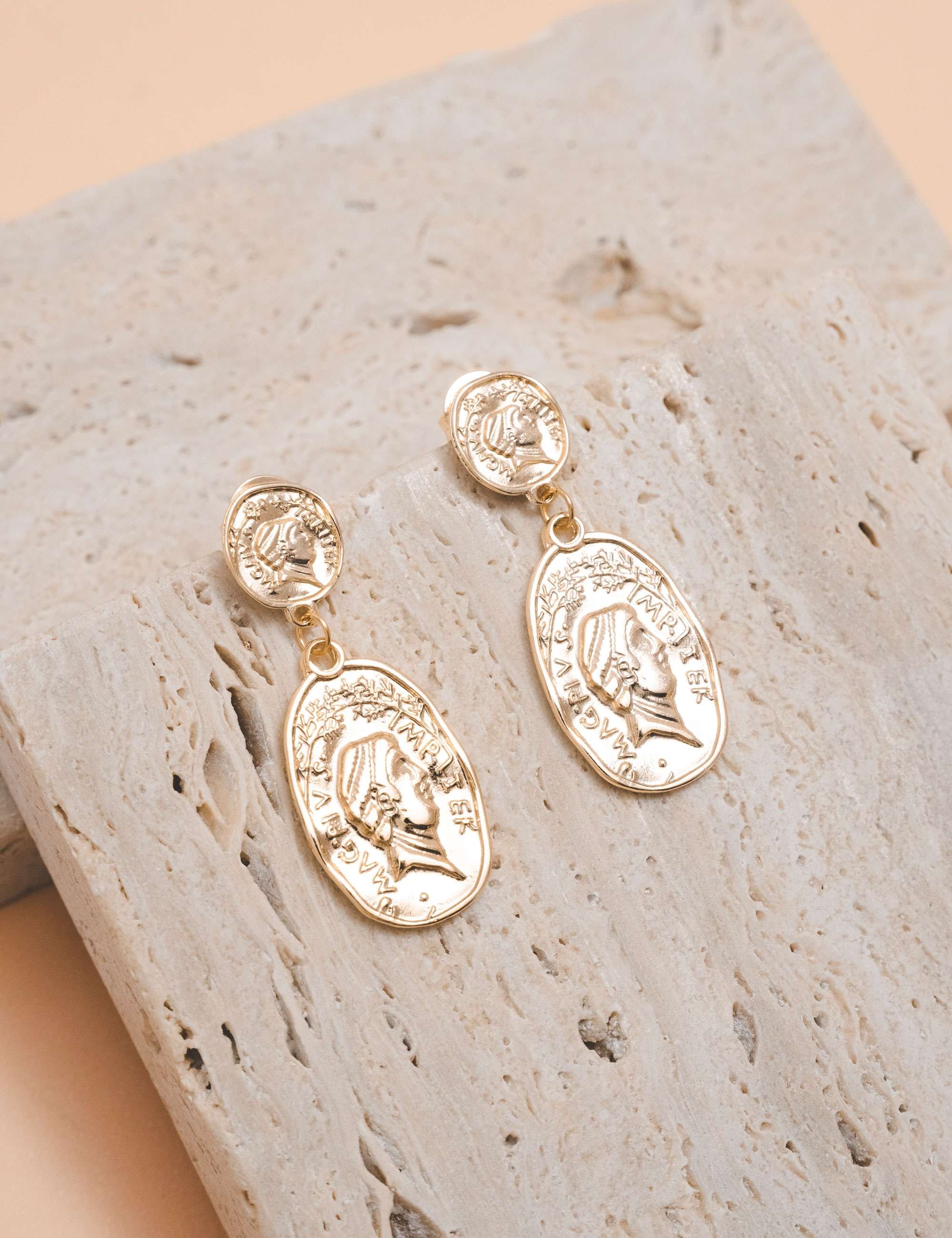 Peça: Um brinco em formato de moeda. Esta peça combina o estilo vintage das moedas com um toque de modernidade, criando um acessório único e elegante para realçar qualquer visual.