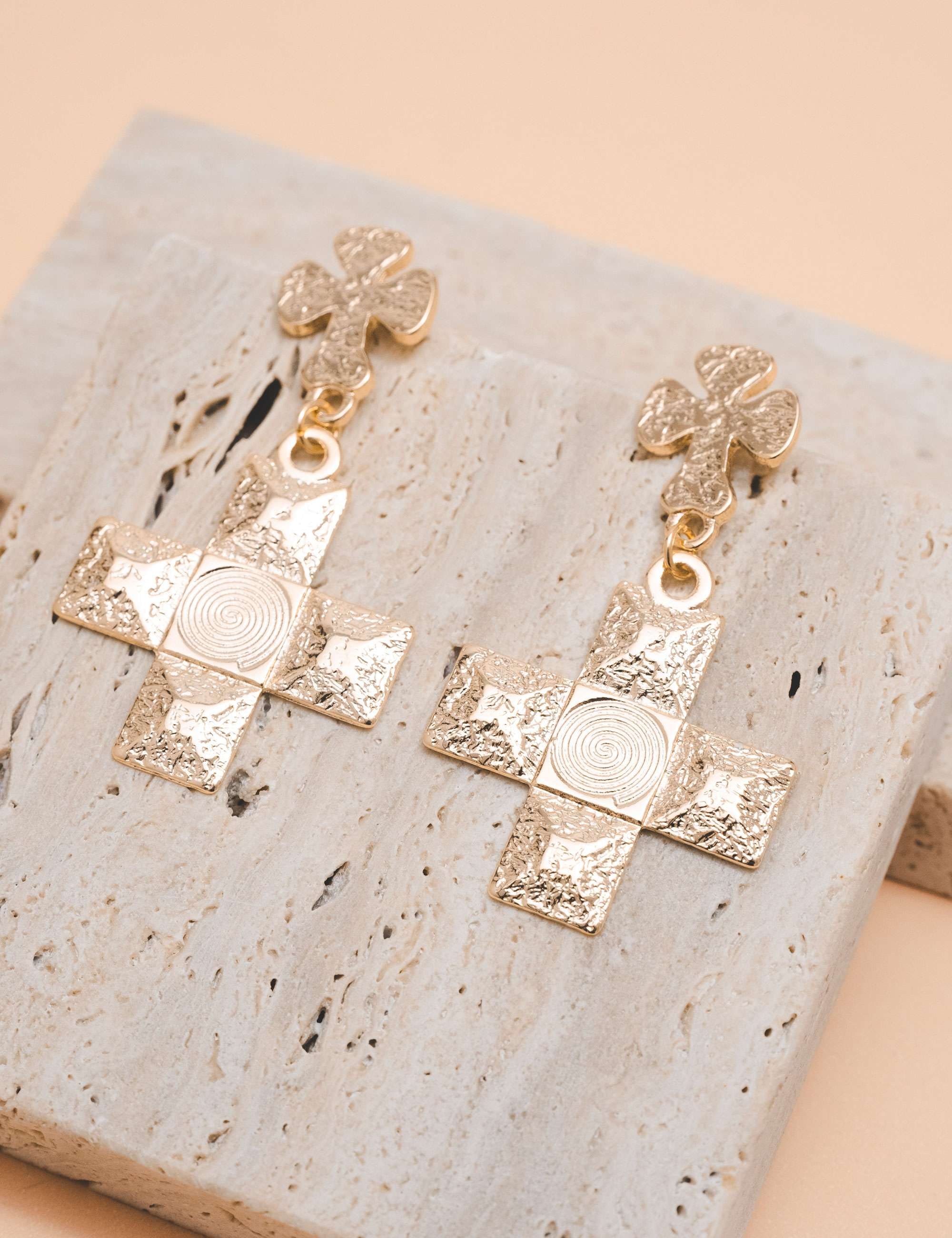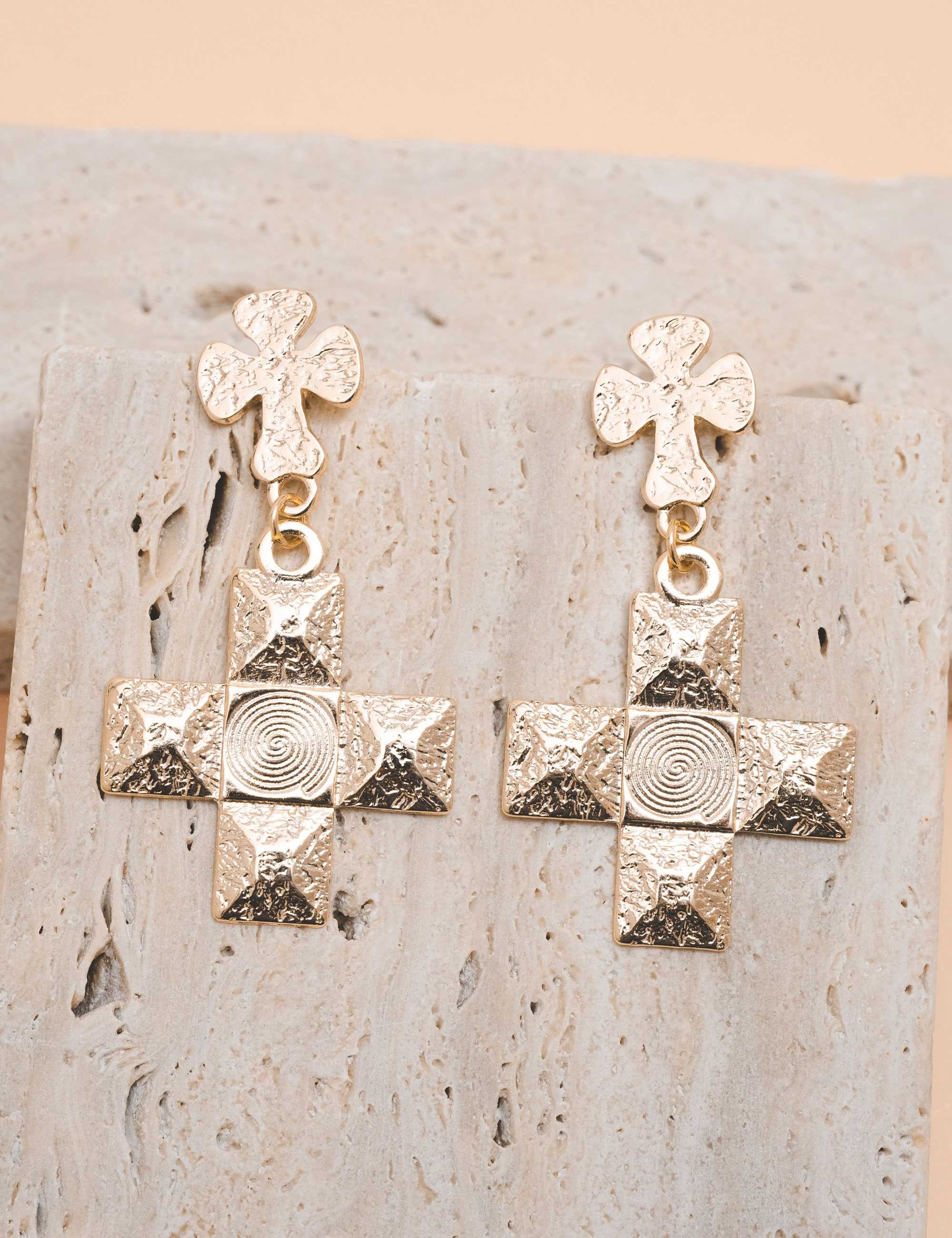 Peça: Um brinco em formato de cruz, com seu design elegante e refinado, é uma expressão de estilo sofisticado e atemporal, adicionando um toque de significado e beleza a qualquer visual.