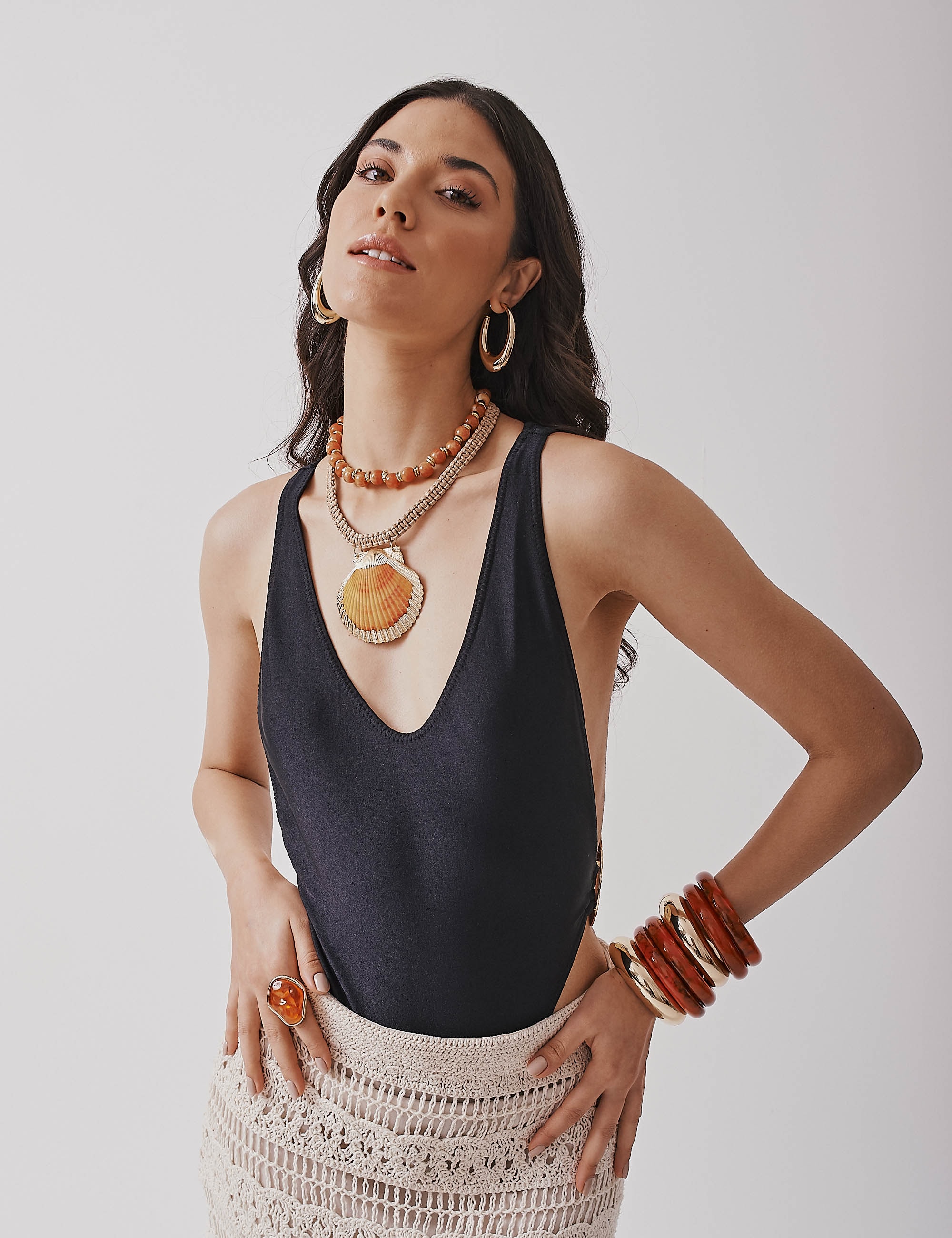 Todos os nossos metais são banhados a ouro, possuem camada protetiva para bijuterias finas e também possuem camada de metal precioso em sua composição. As bijuterias precisam de cuidados, limpe-as com flanela seca e macia, evite contato direto com cosméticos, areia, praia e piscina.