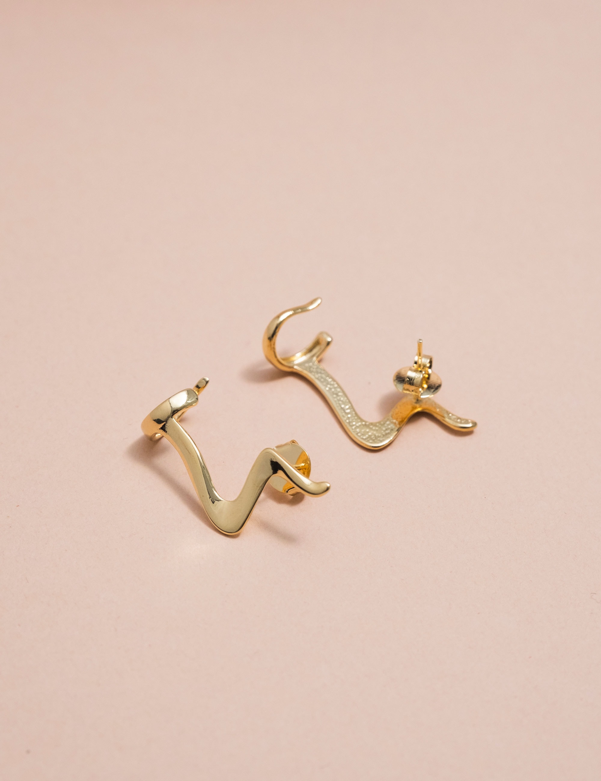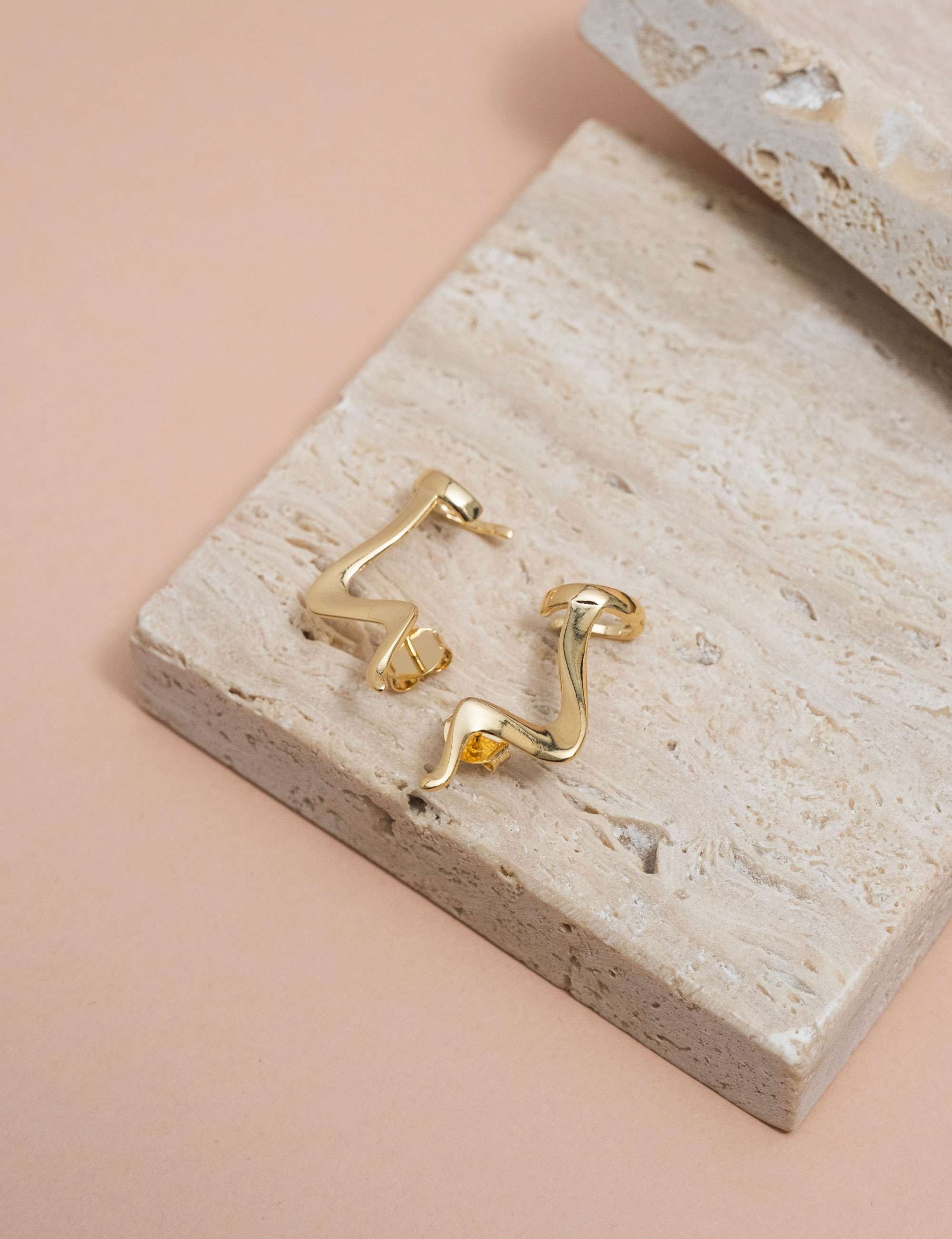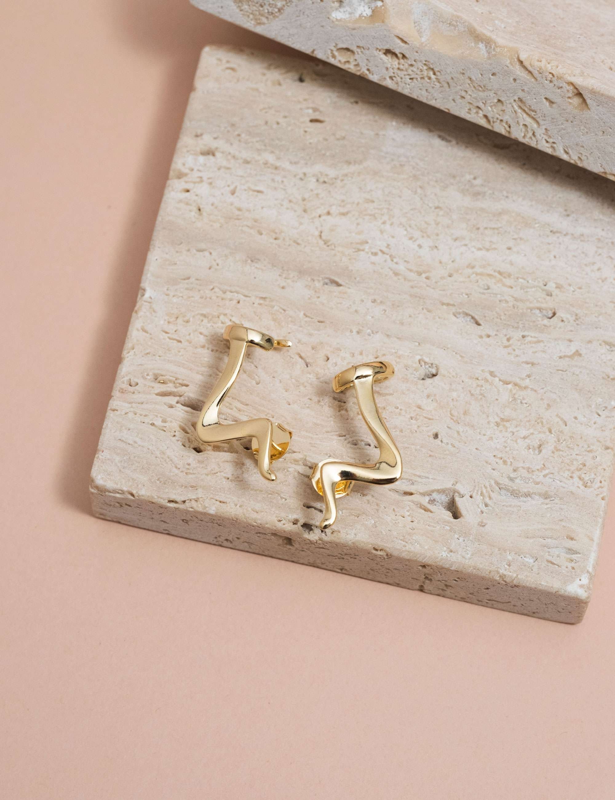 Peça: Um brinco delicado em formato orgânico e moderno, apresentando um design moderno e elegante, perfeito para destacar a beleza natural com um toque de sofisticação.