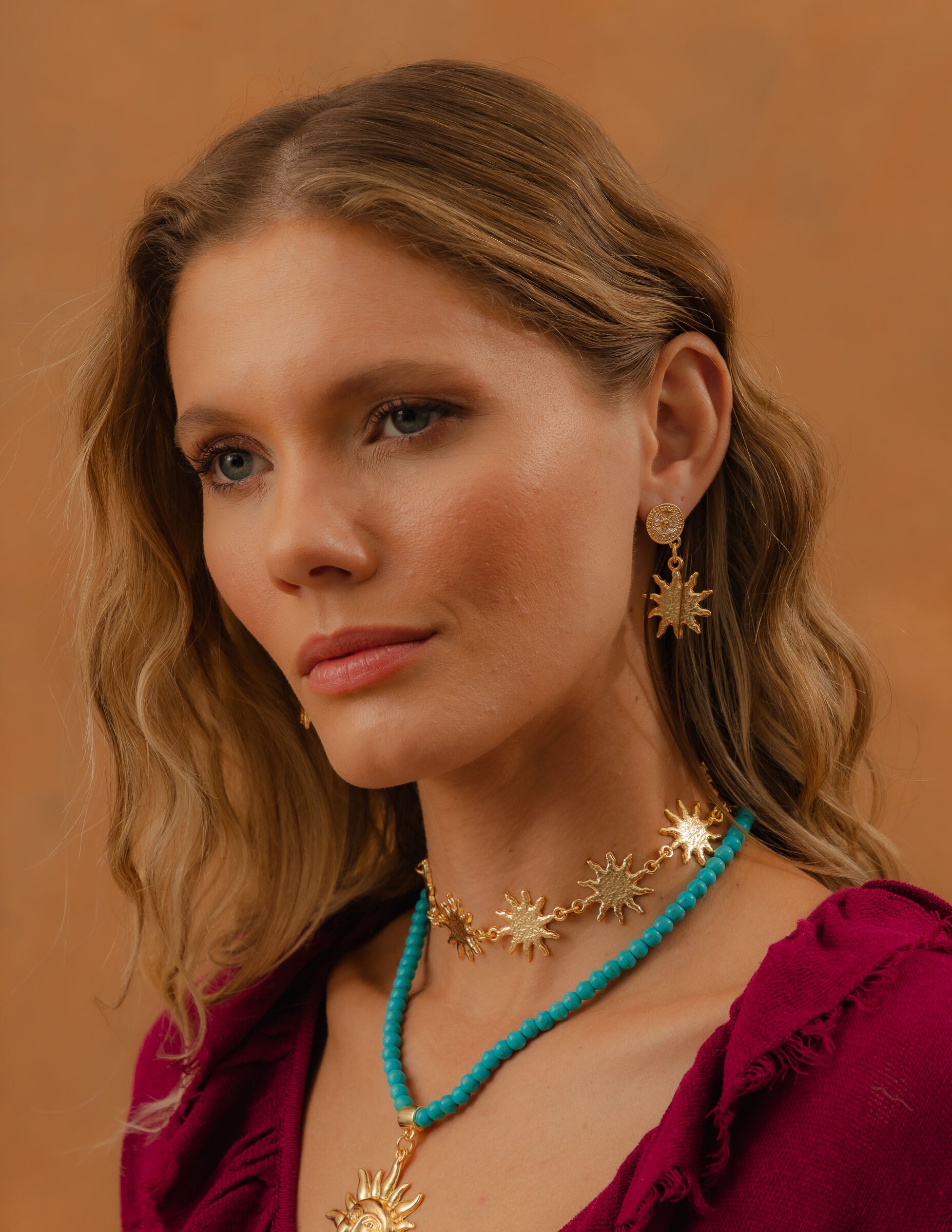 Todos os nossos metais são banhados a ouro, possuem camada protetiva para bijuterias finas e também possuem camada de metal precioso em sua composição. As bijuterias precisam de cuidados, limpe-as com flanela seca e macia, evite contato direto com cosméticos, areia, praia e piscina.
