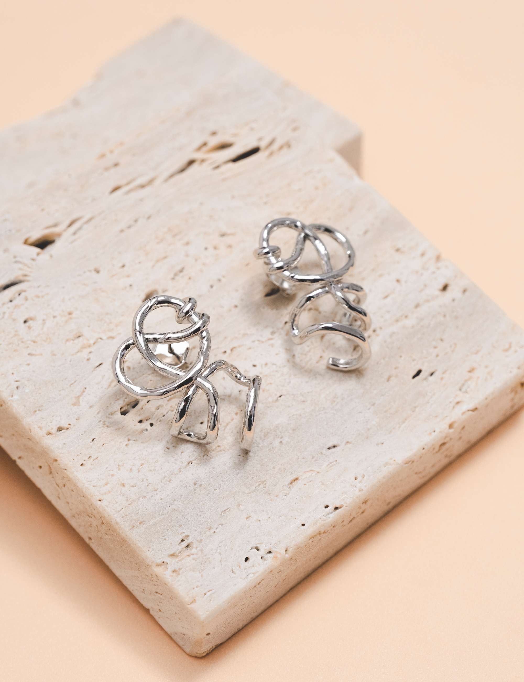Peça: brinco metalizado, apresentando um formato organico. Uma escolha ideal para complementar e destacar seu visual com elegância.