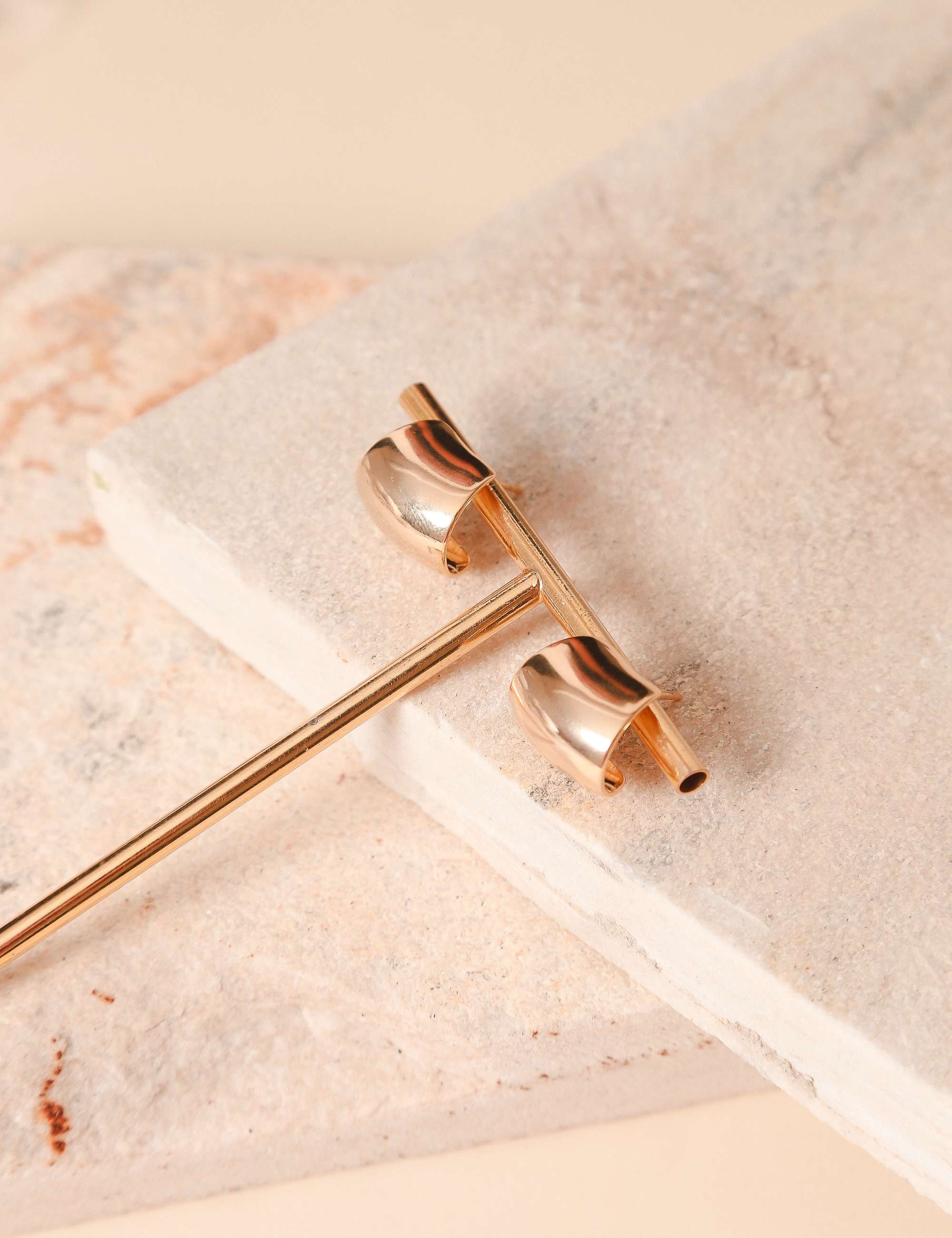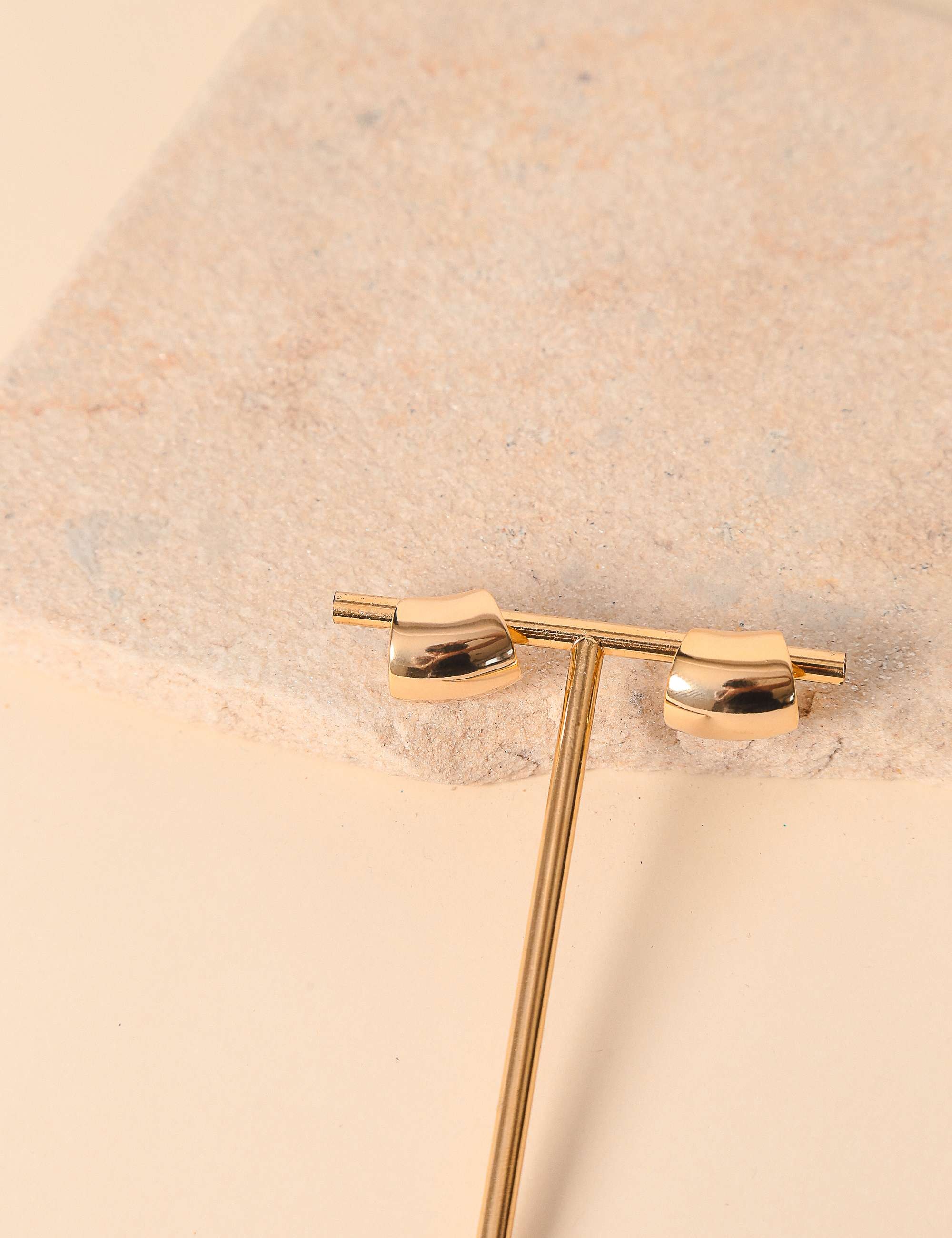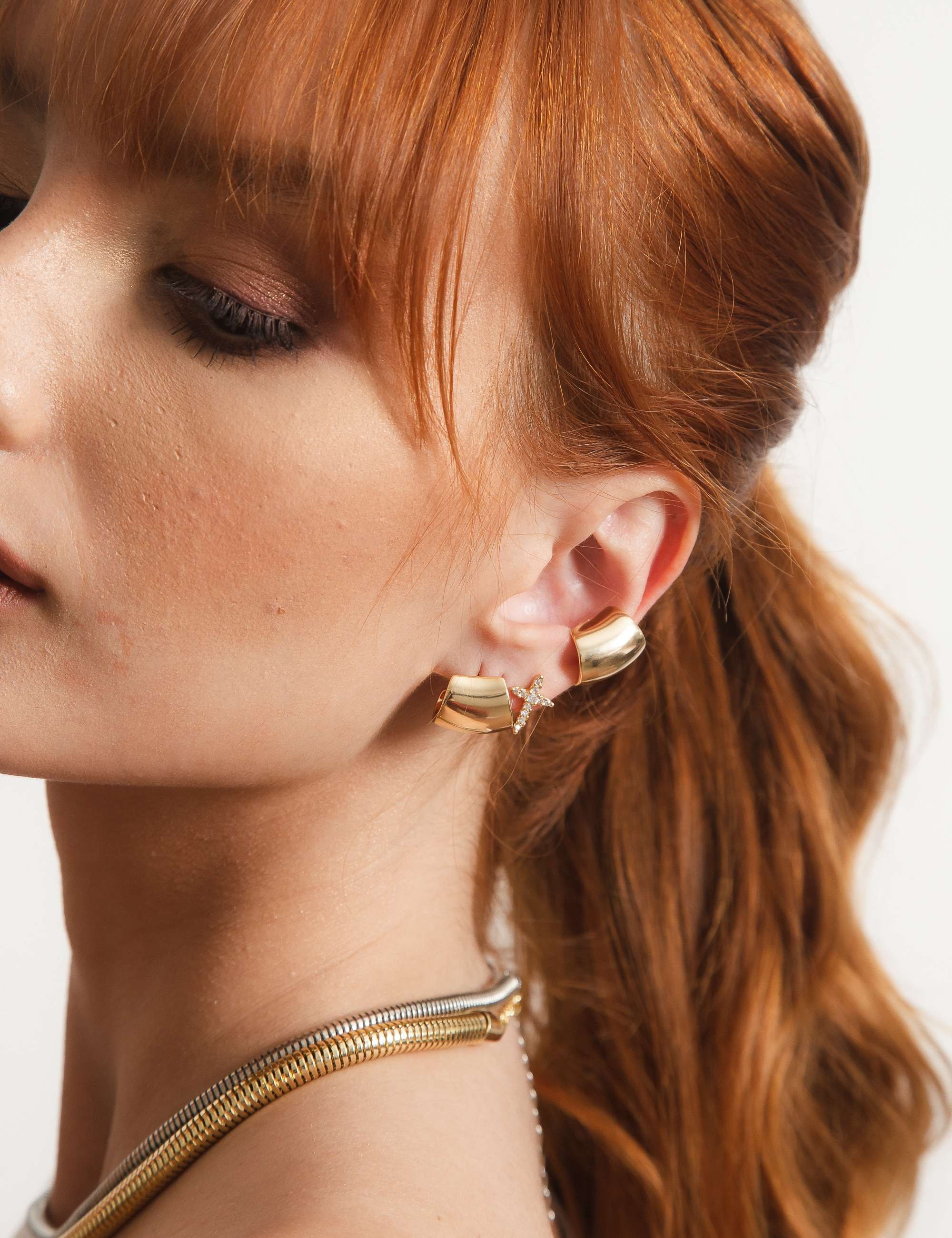 Brinco vazado em formato semelhante ao um arco, banhado a ouro. Conceito de minimalismo que traz sofisticação com um shape diferenciado.
